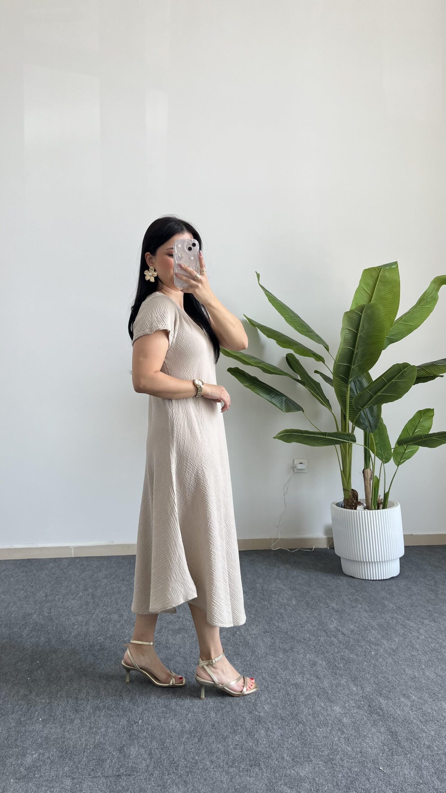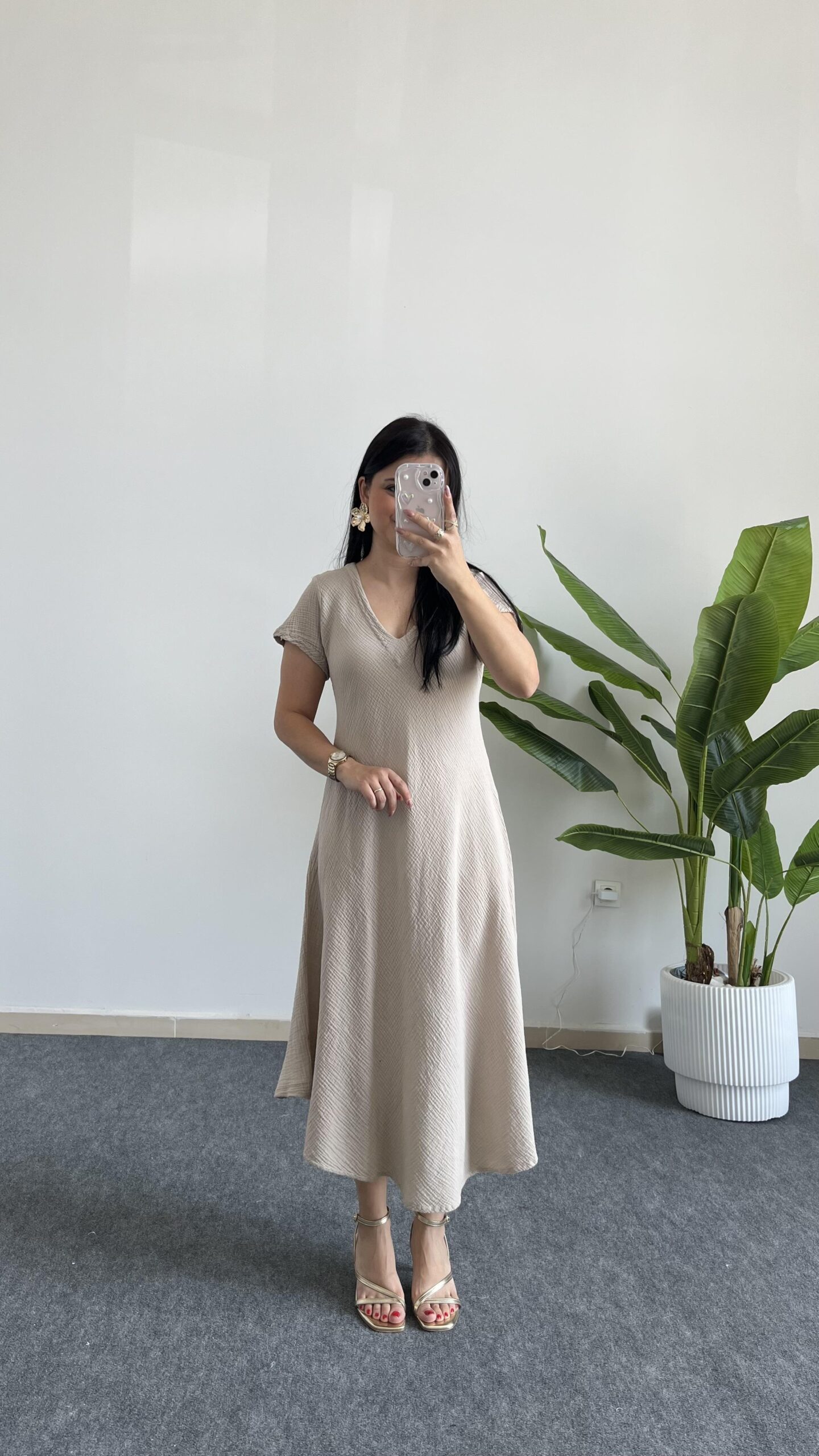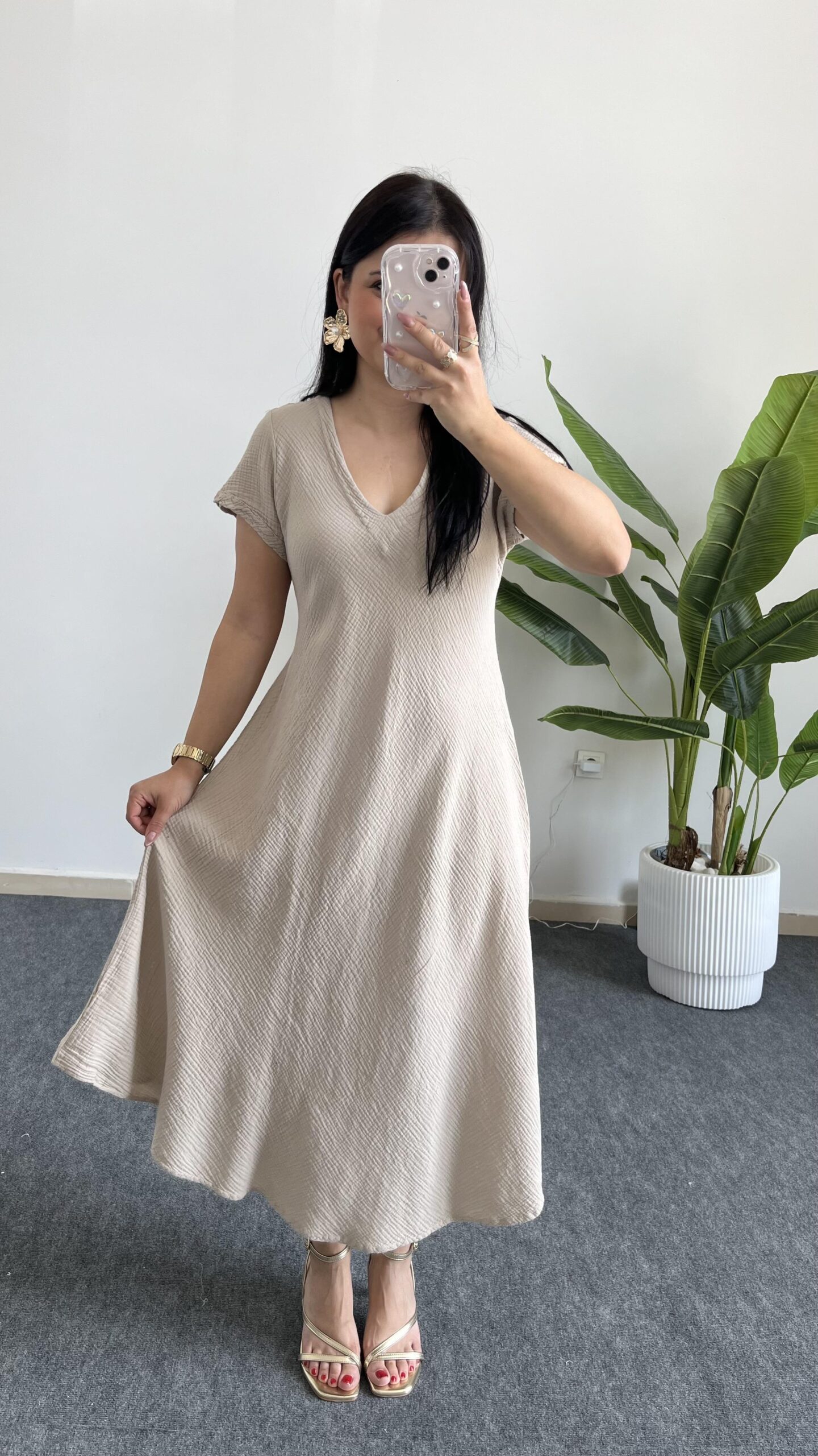 Pera %100 Pamuk Asimetrik Sihirli Elbise- Taş
