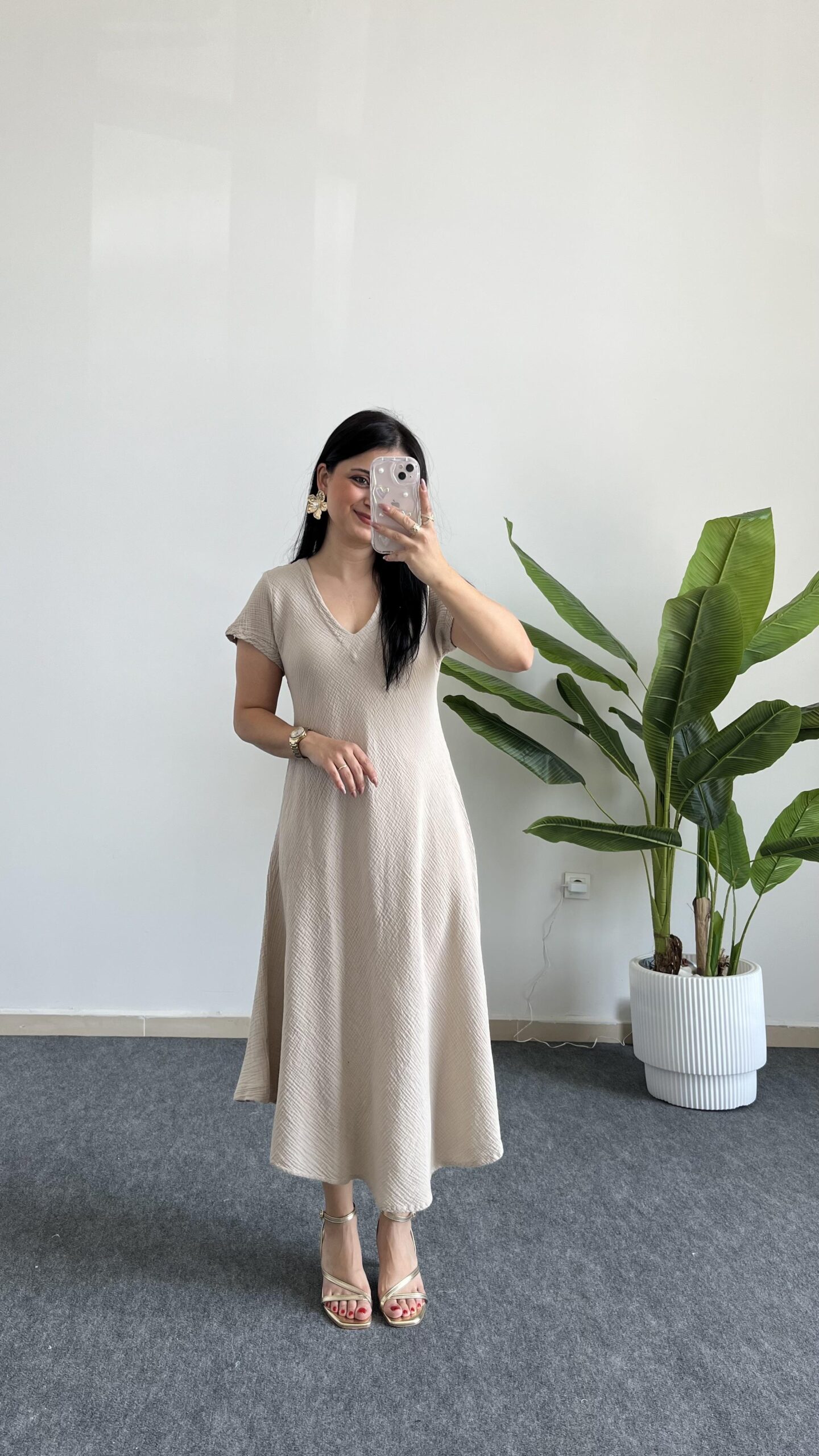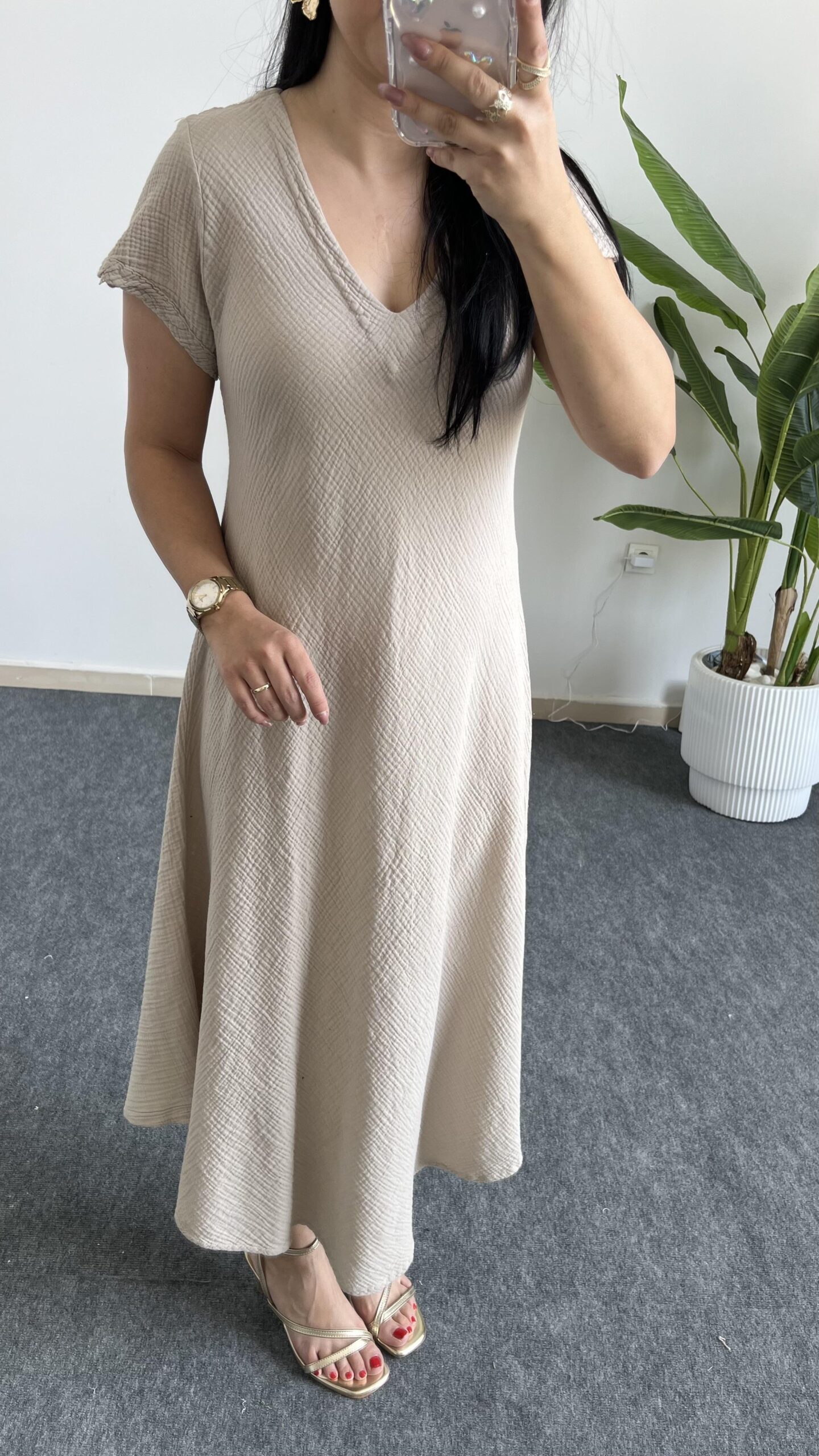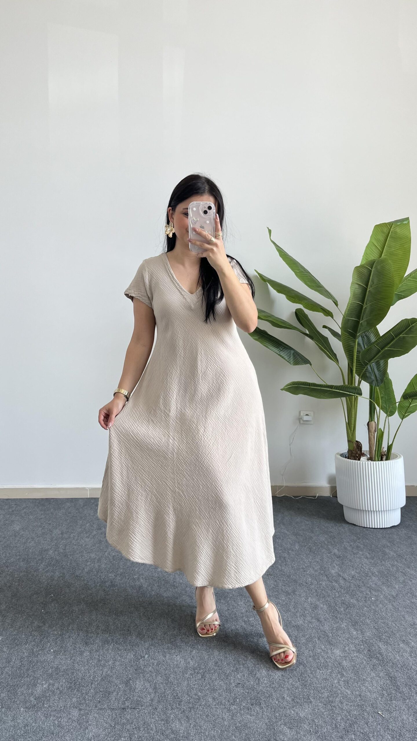 Pera %100 Pamuk Asimetrik Sihirli Elbise- Taş