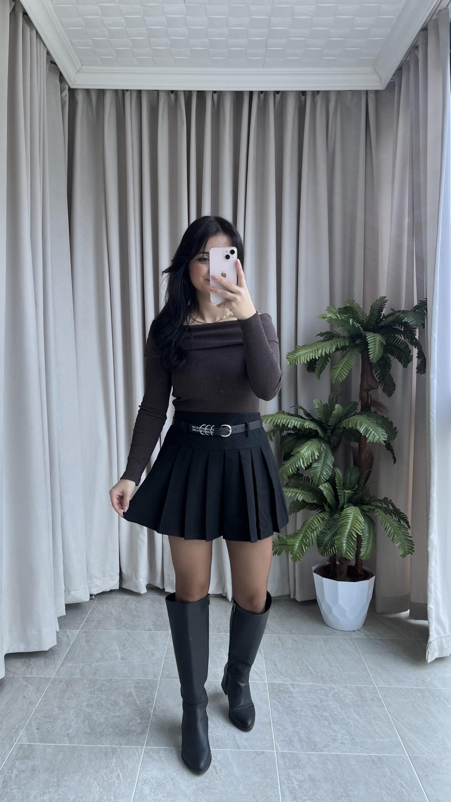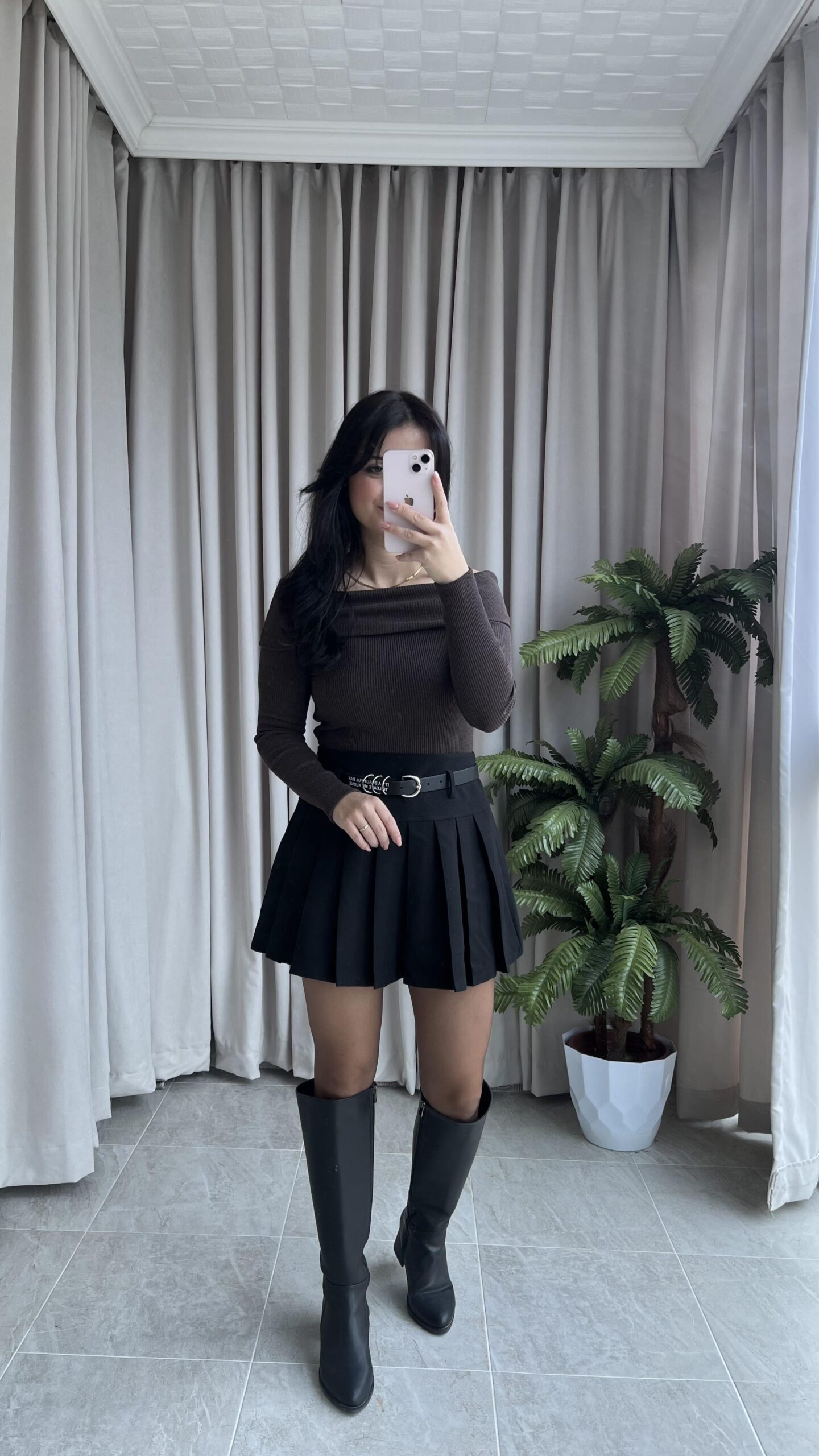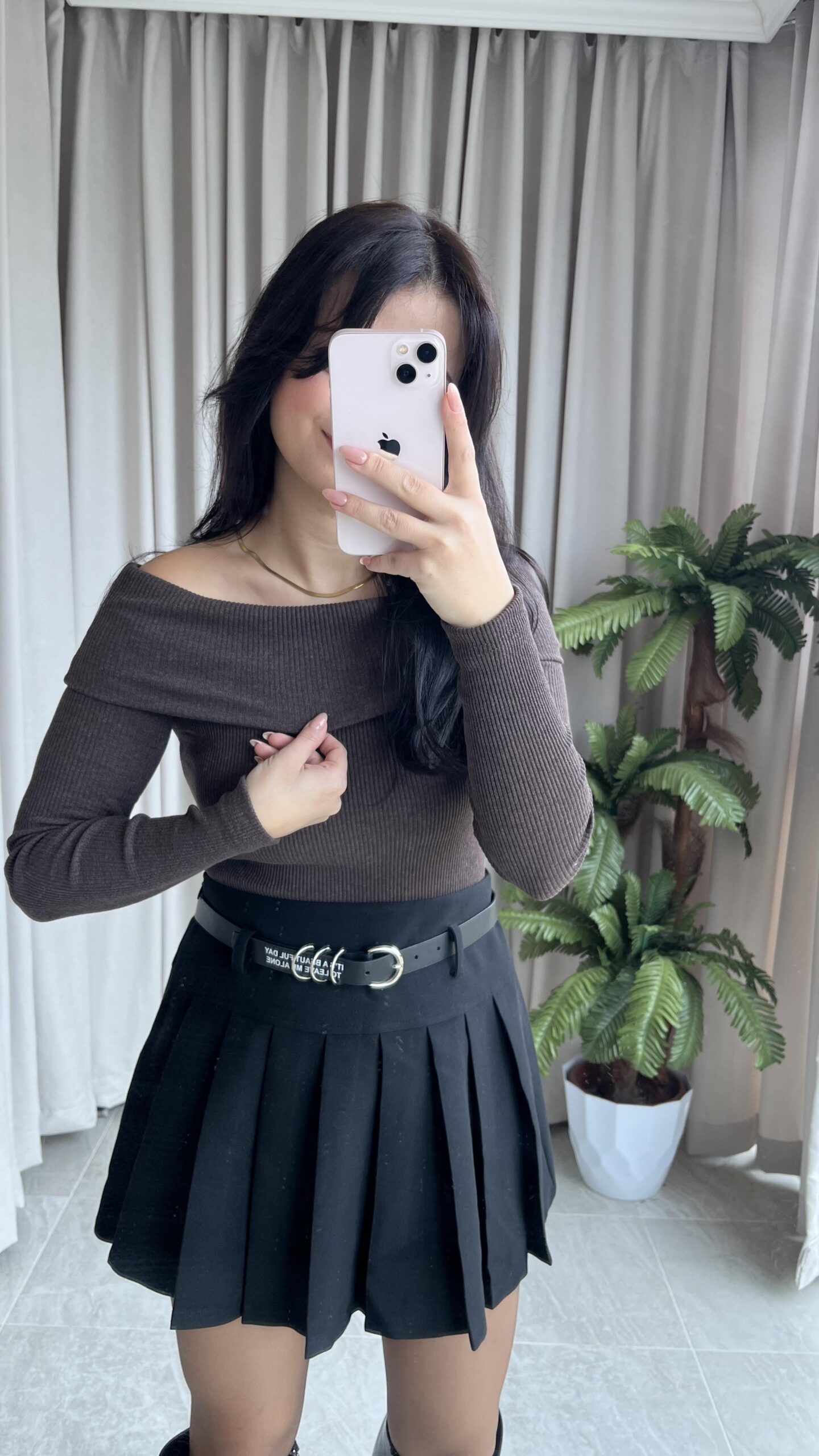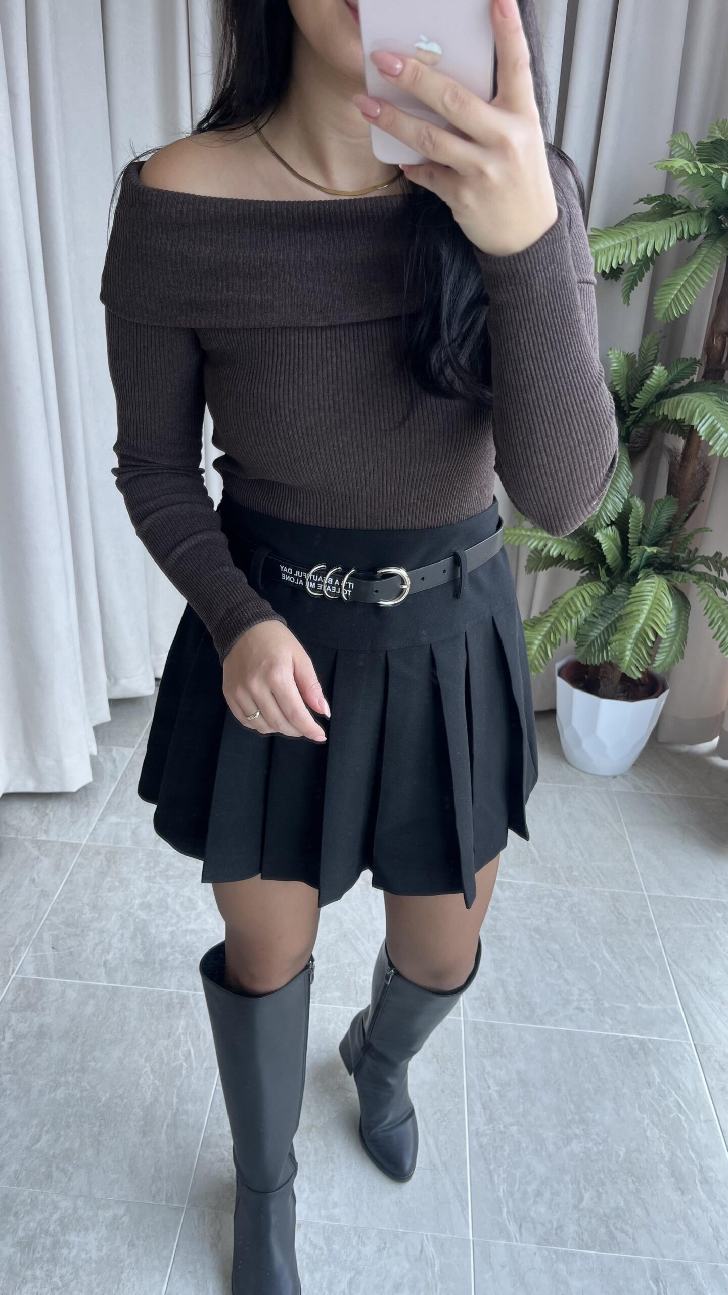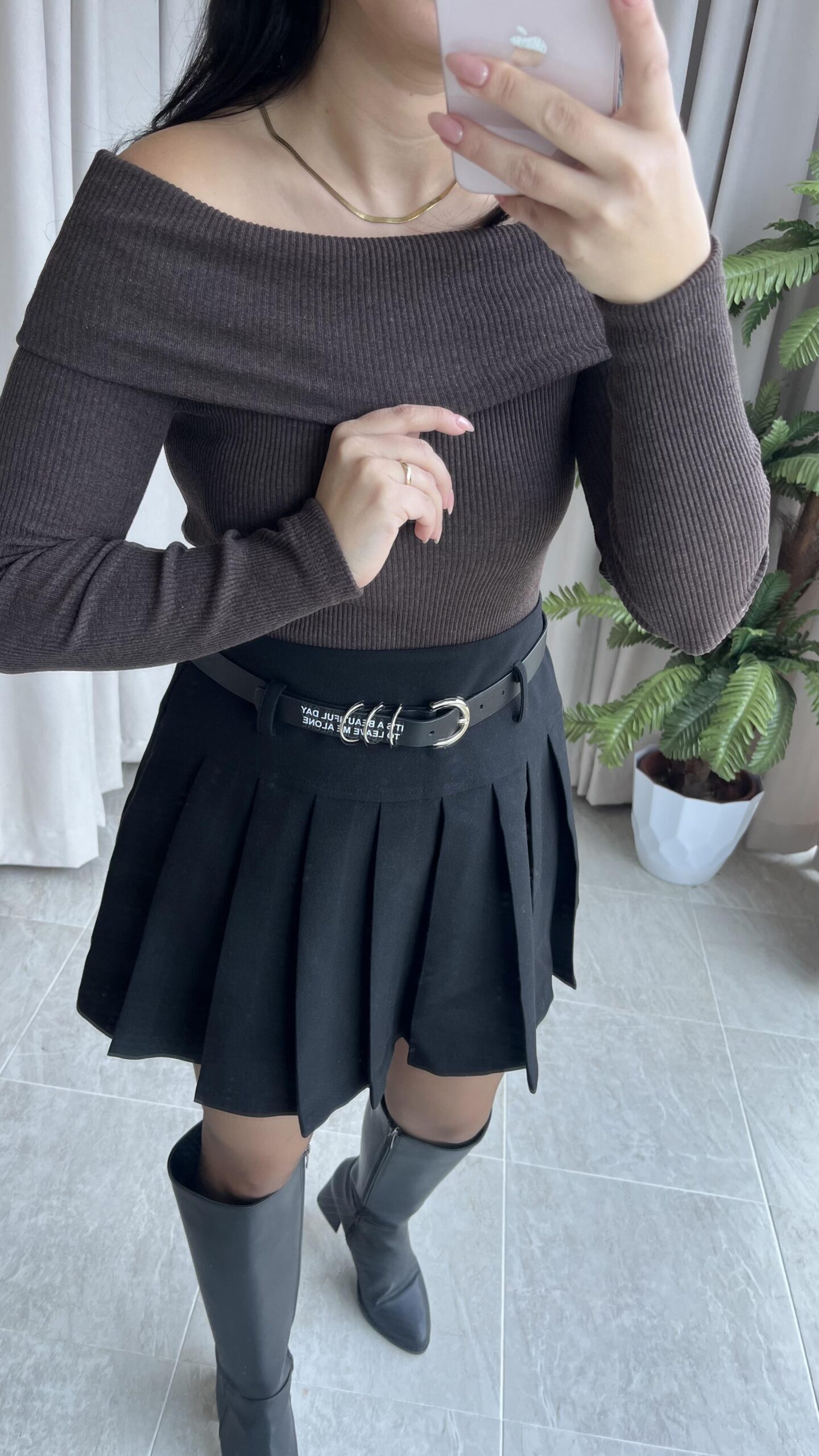 Evia Kaşkorse Madonna Yaka Bluz Kahverengi