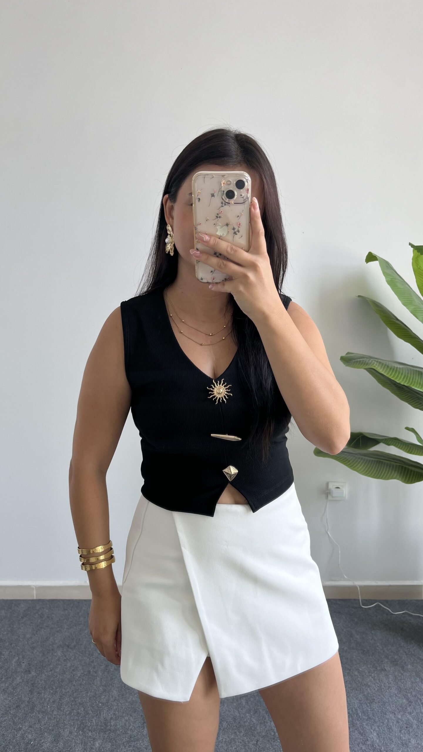 Güneş Aksesuarlı Bluz – Siyah