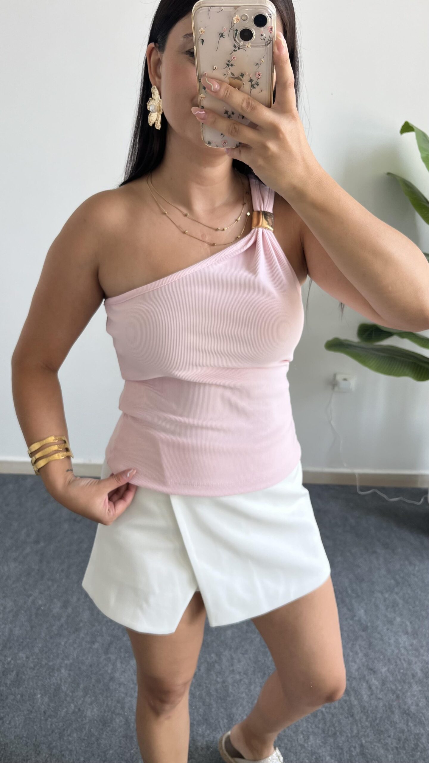 Sadem Tek Omuz Tokalı Bluz – Pembe