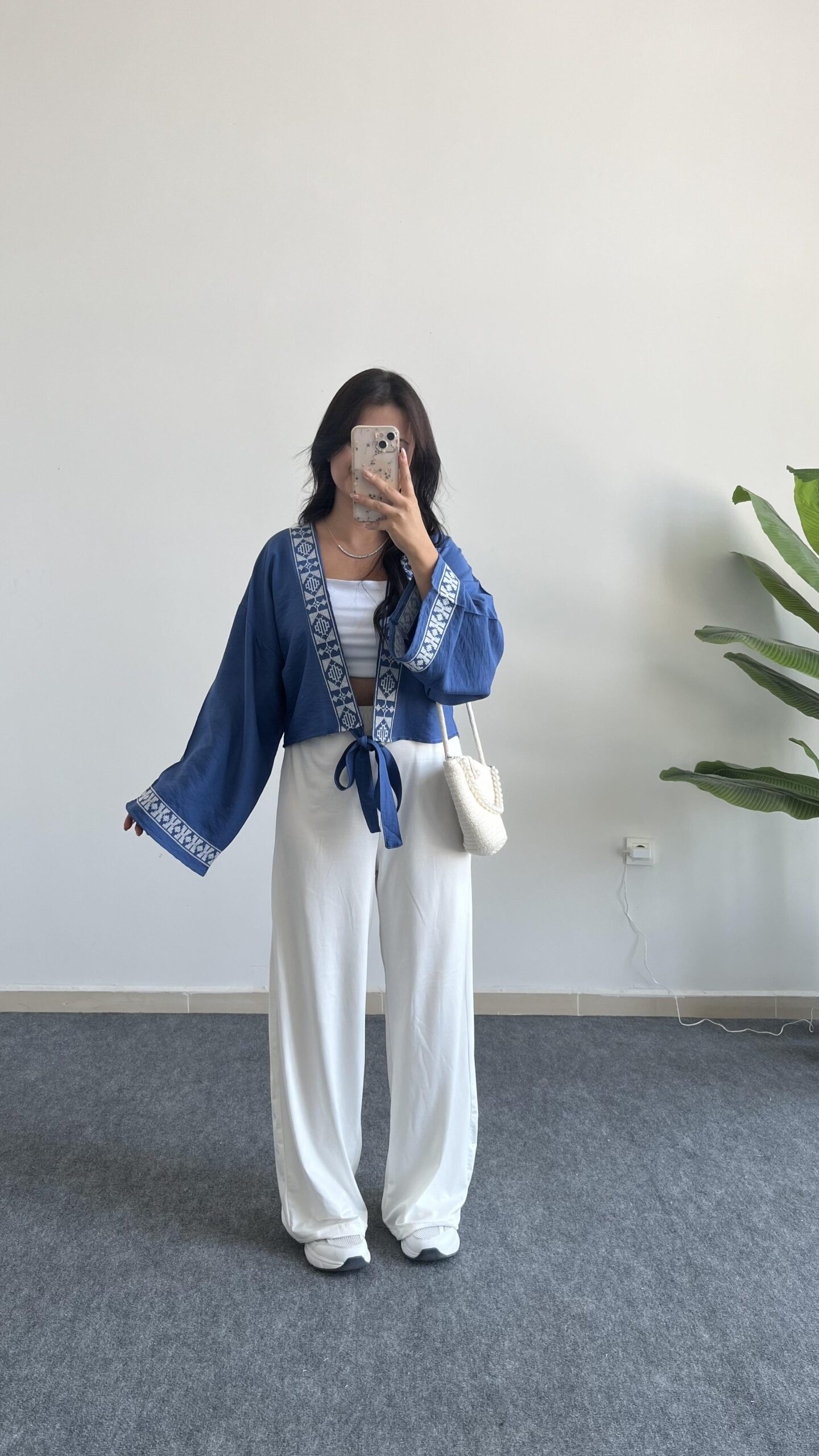 Tiris Nakışlı Kimono Bluz – Lacivert