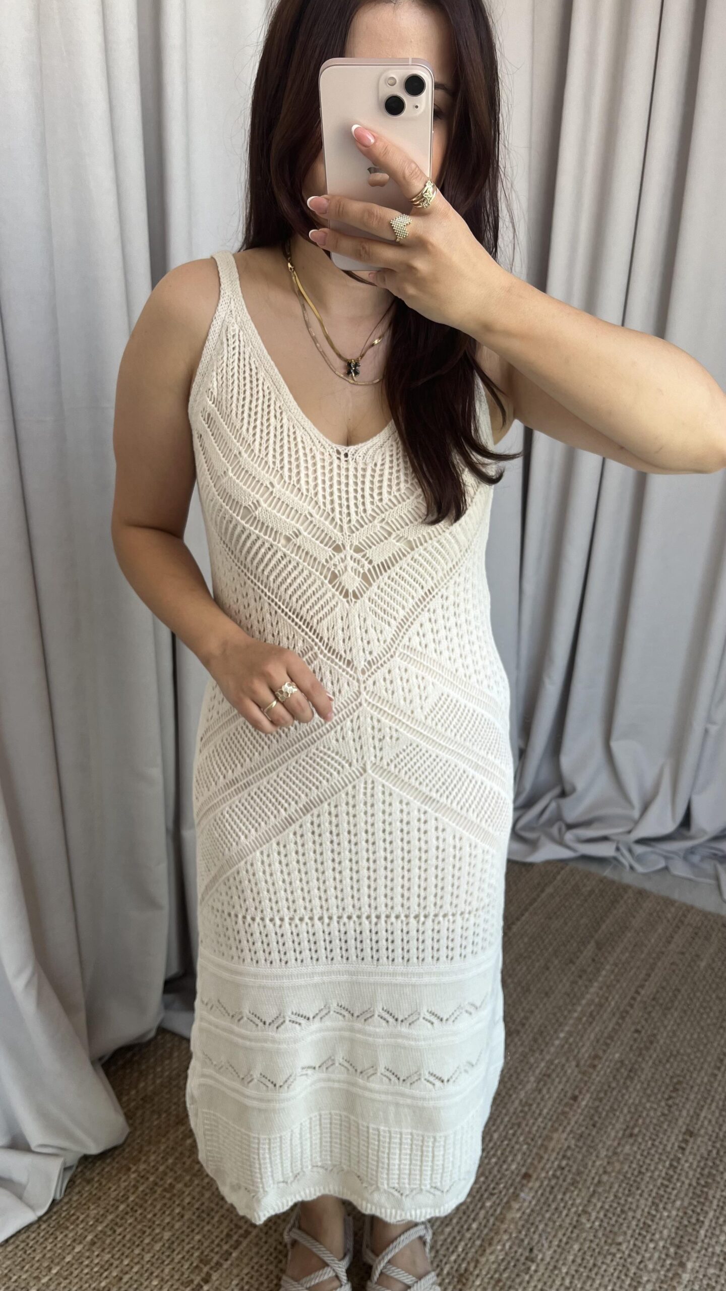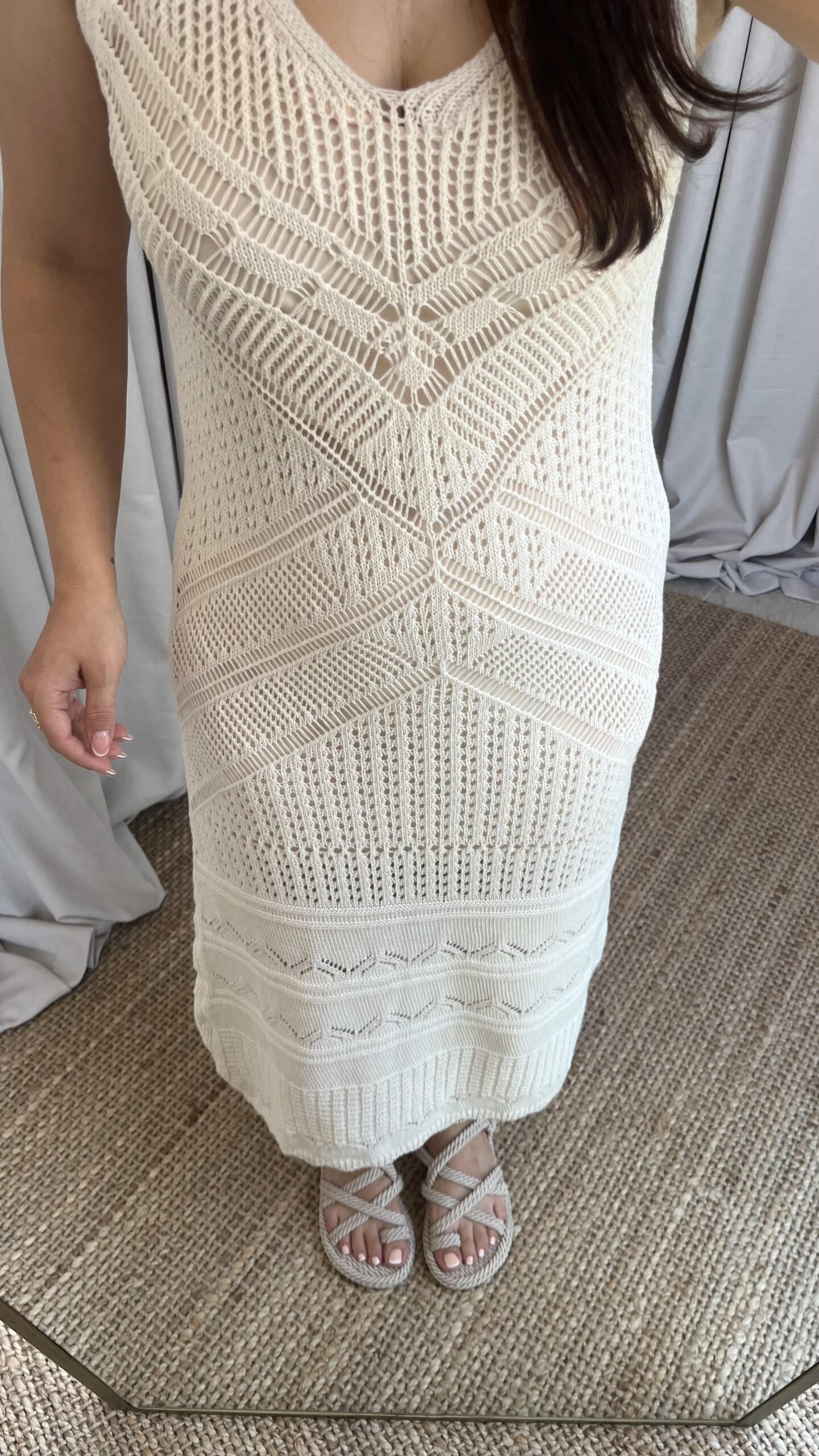 Ekru Ajurlu Elbise