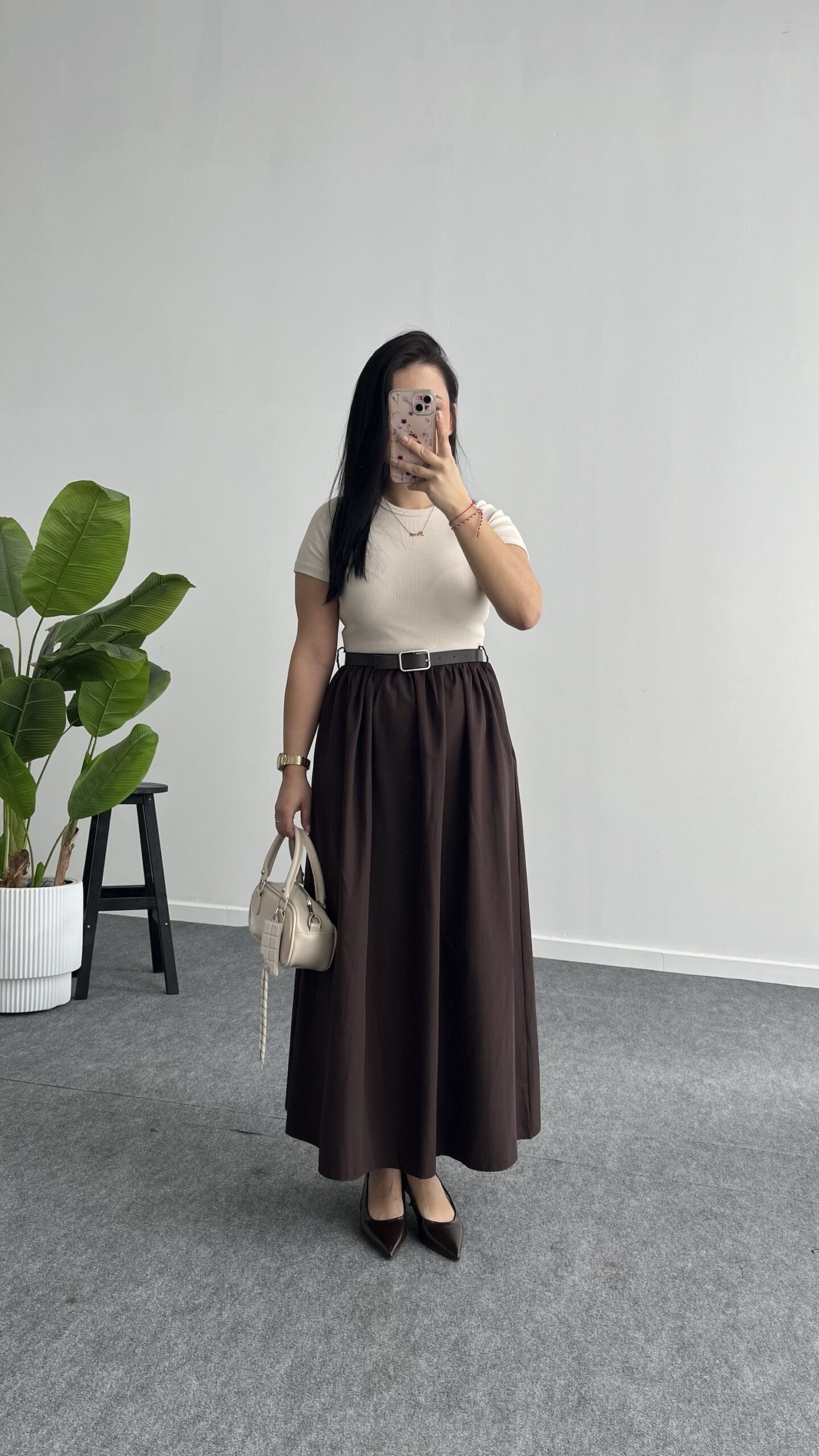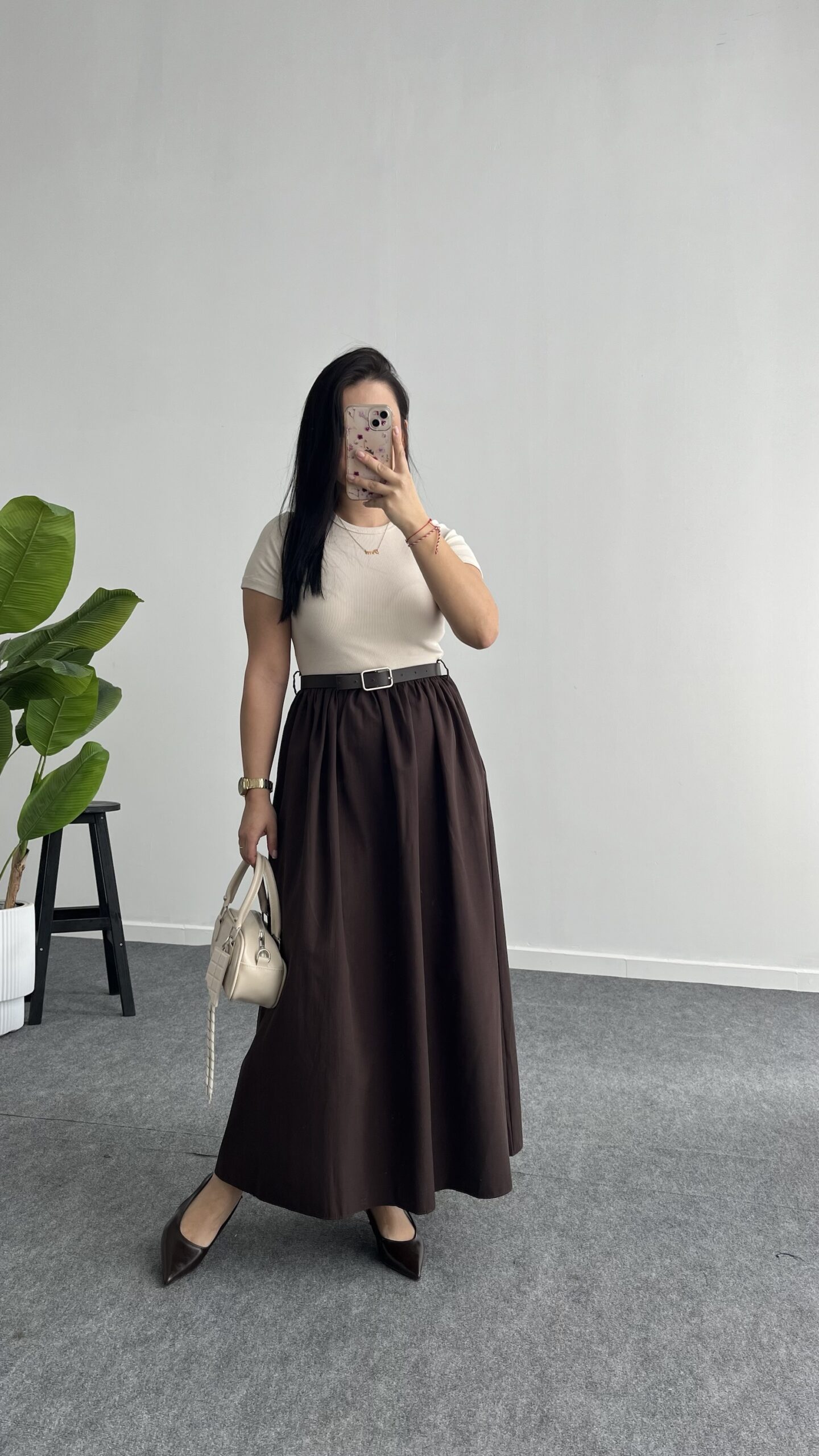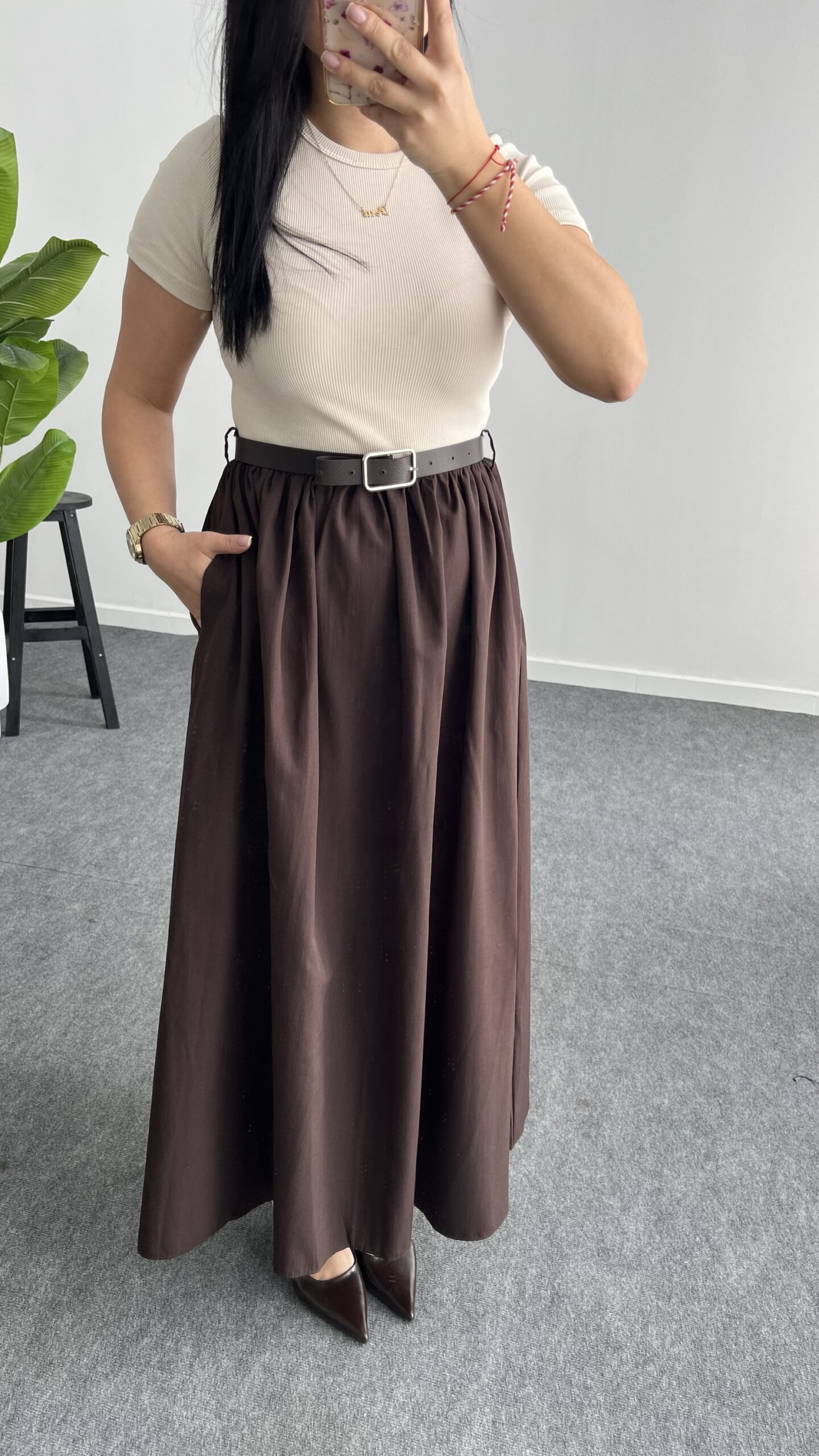 Elizz Kemerli Elbise – Kahve