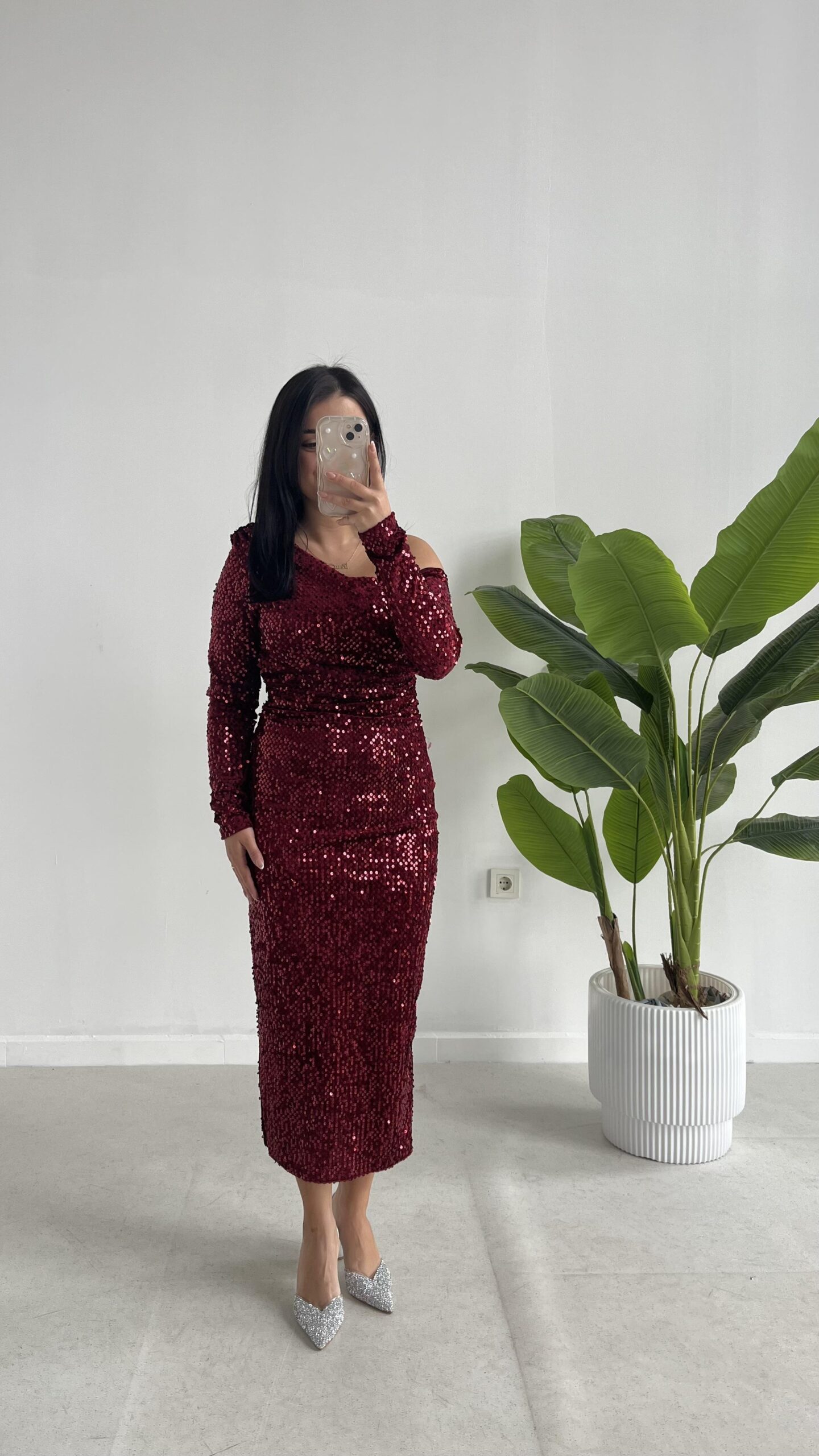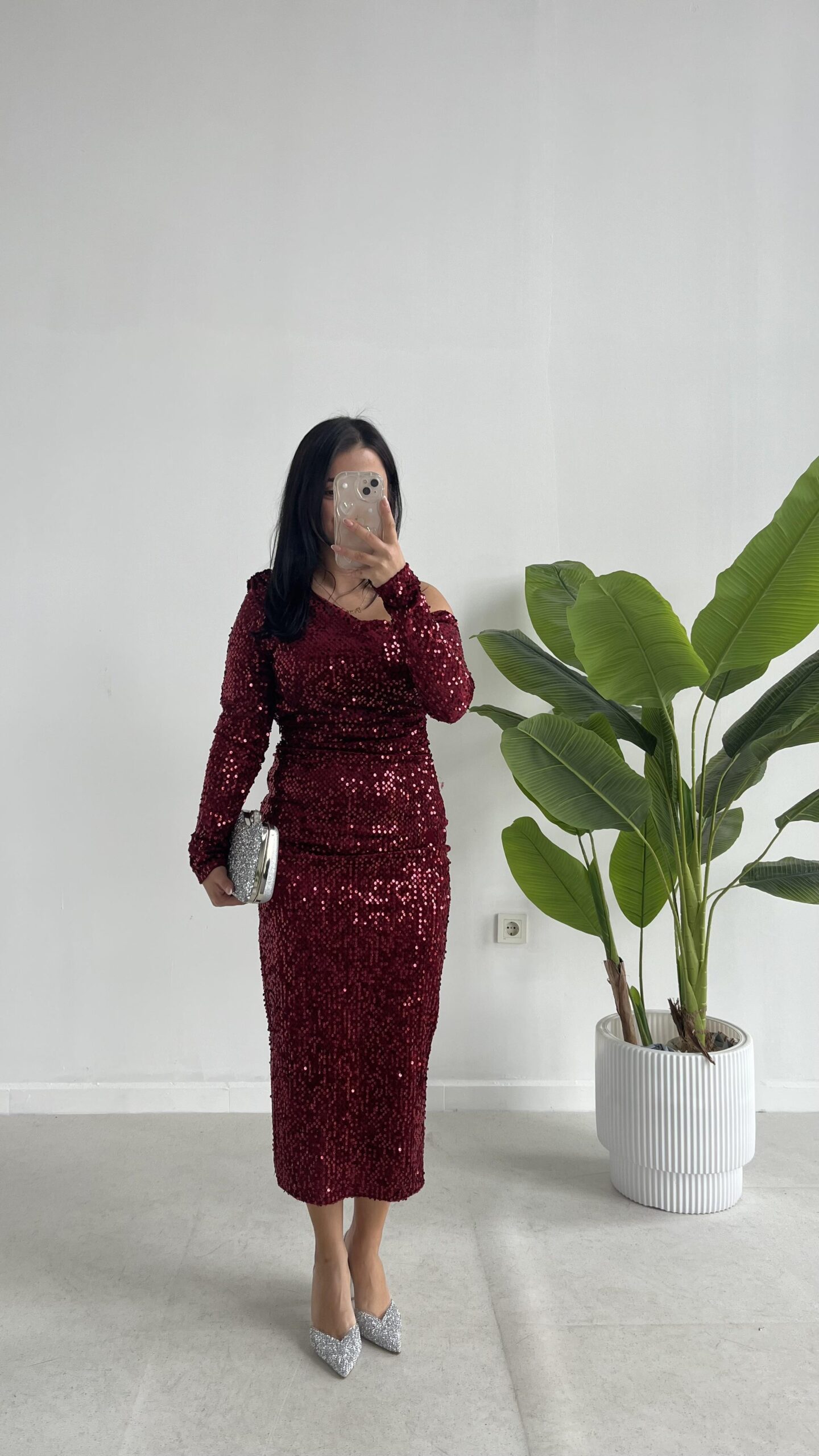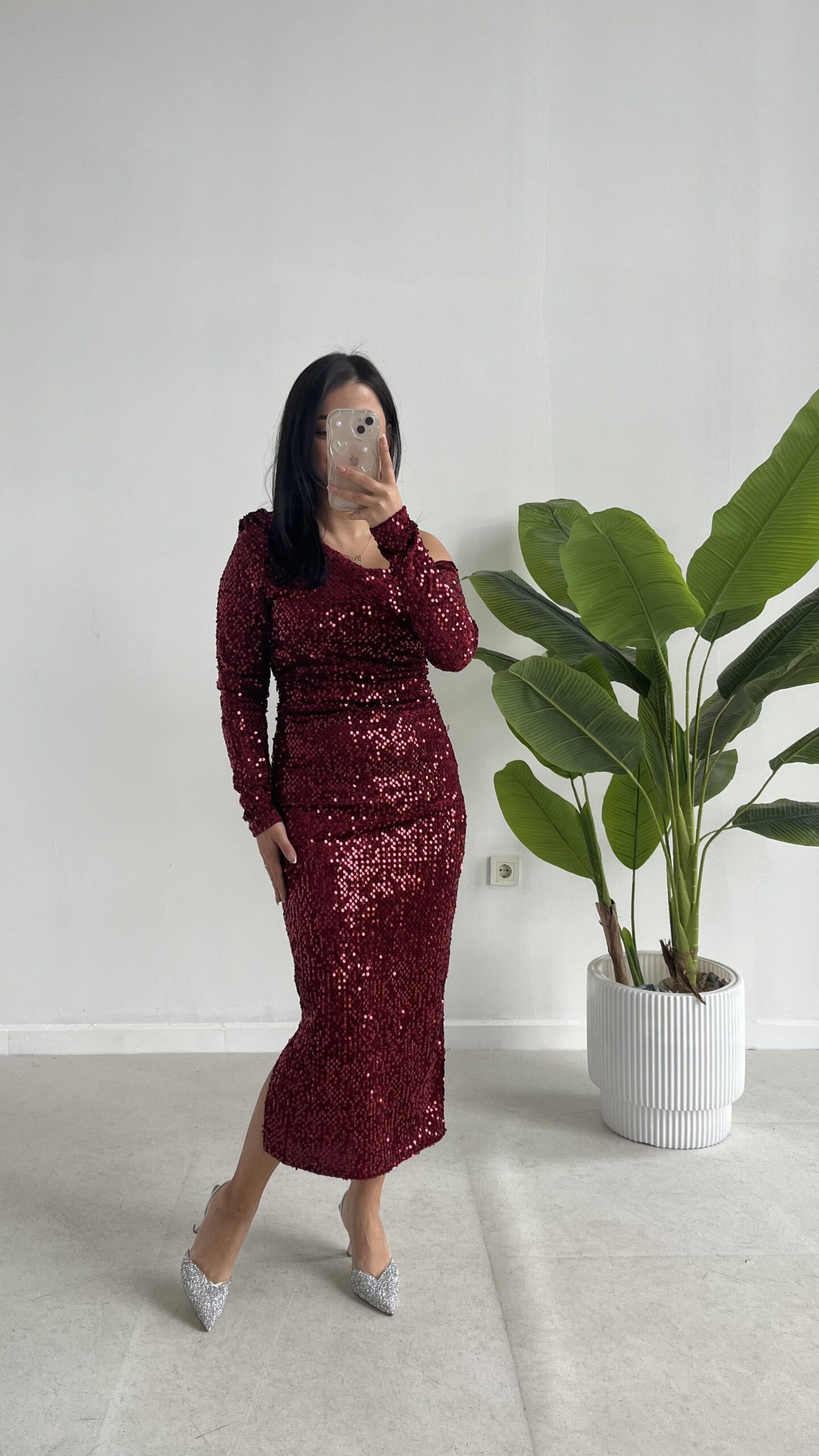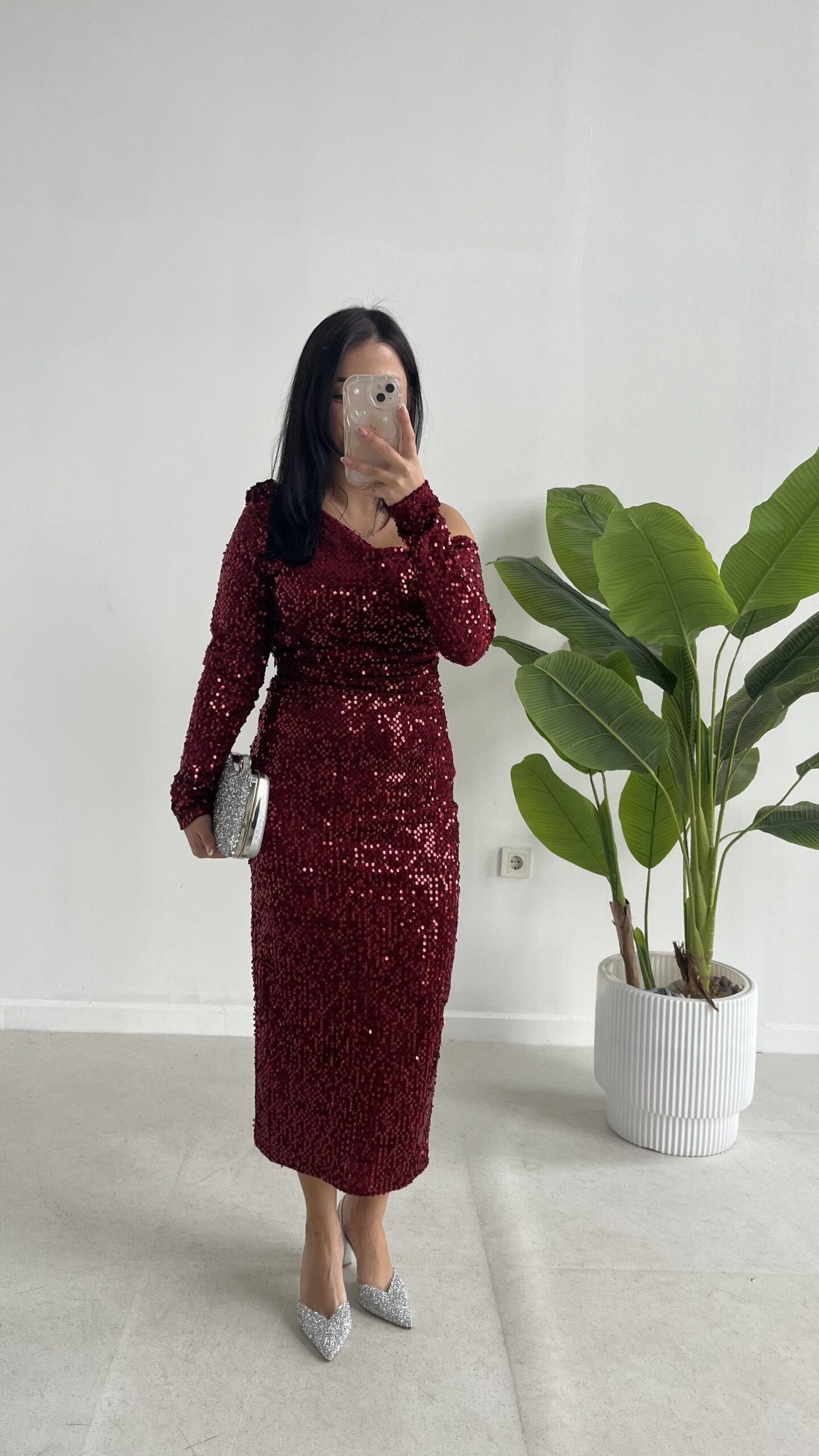 Midi Boy Pul Payet Elbise – Bordo