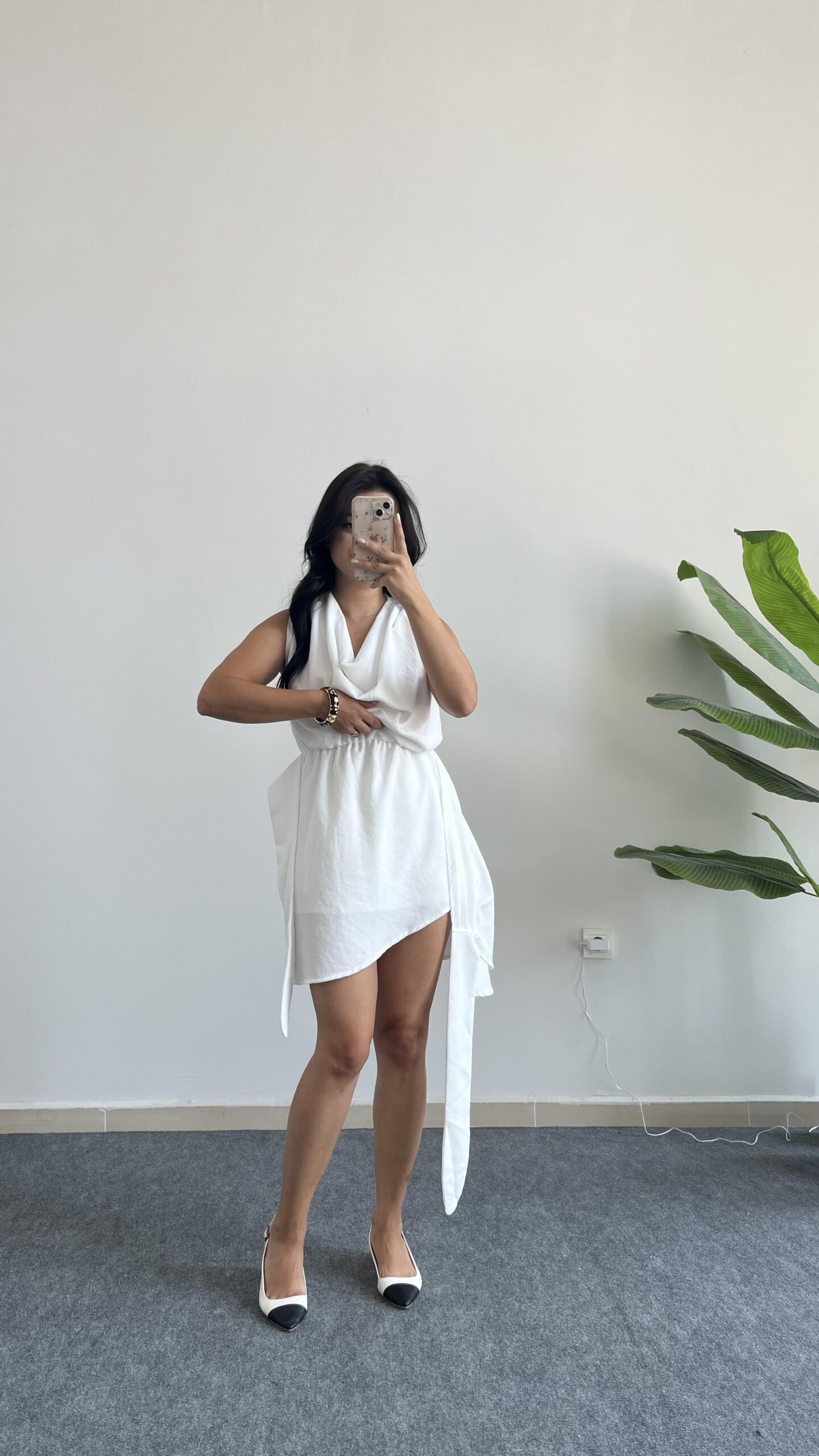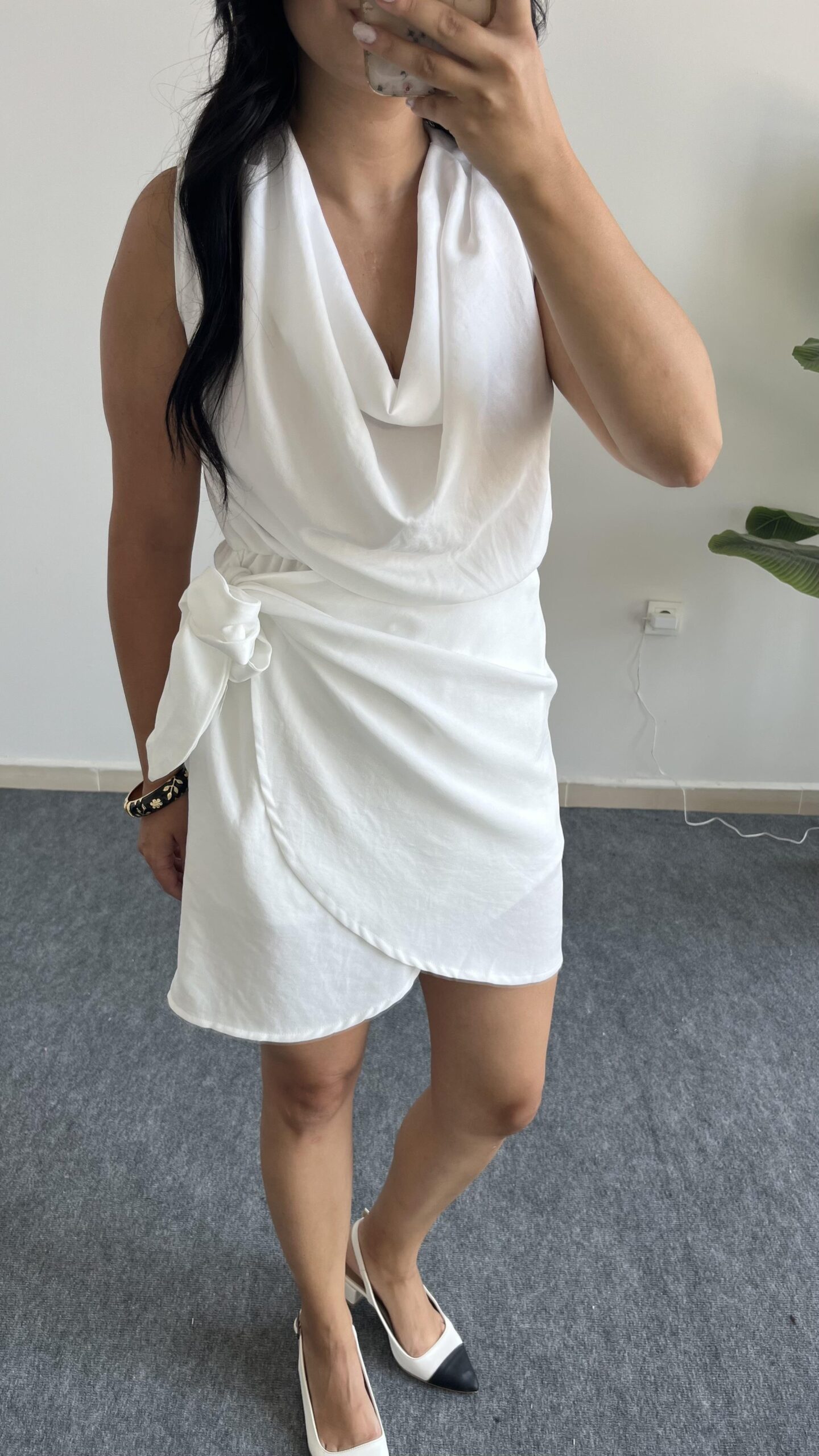 Mira Degaje Yaka Anvelop Elbise – Beyaz
