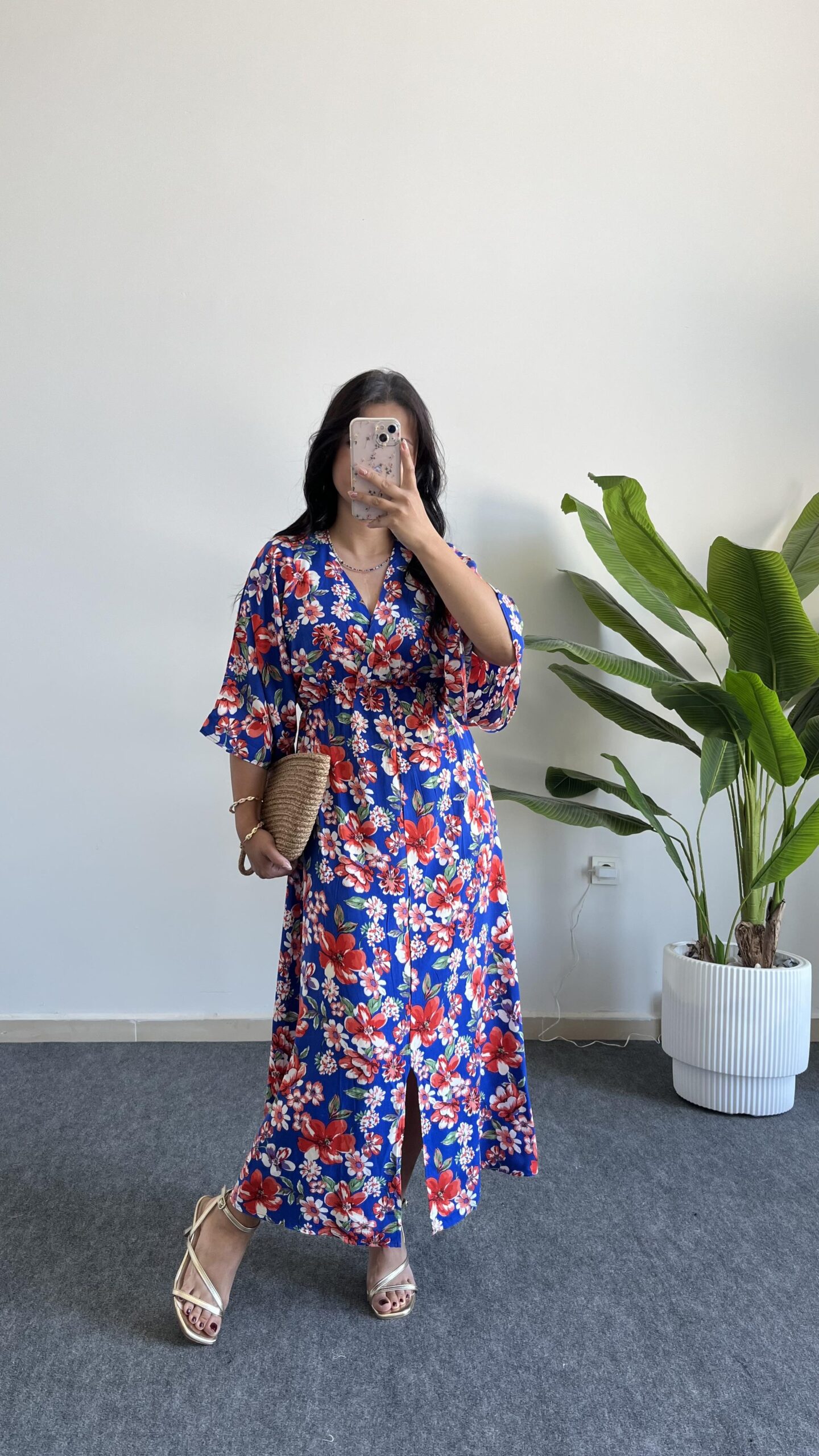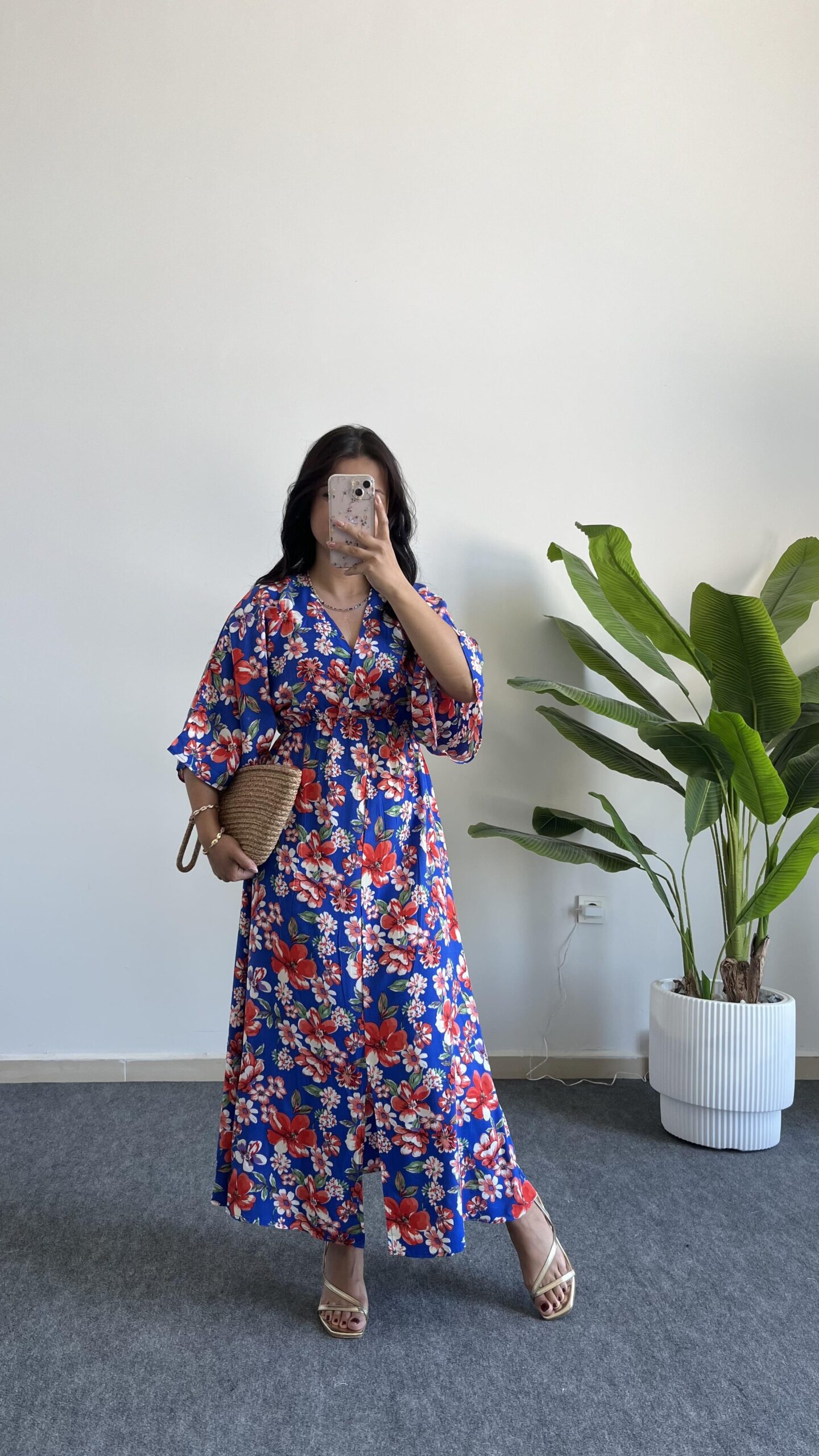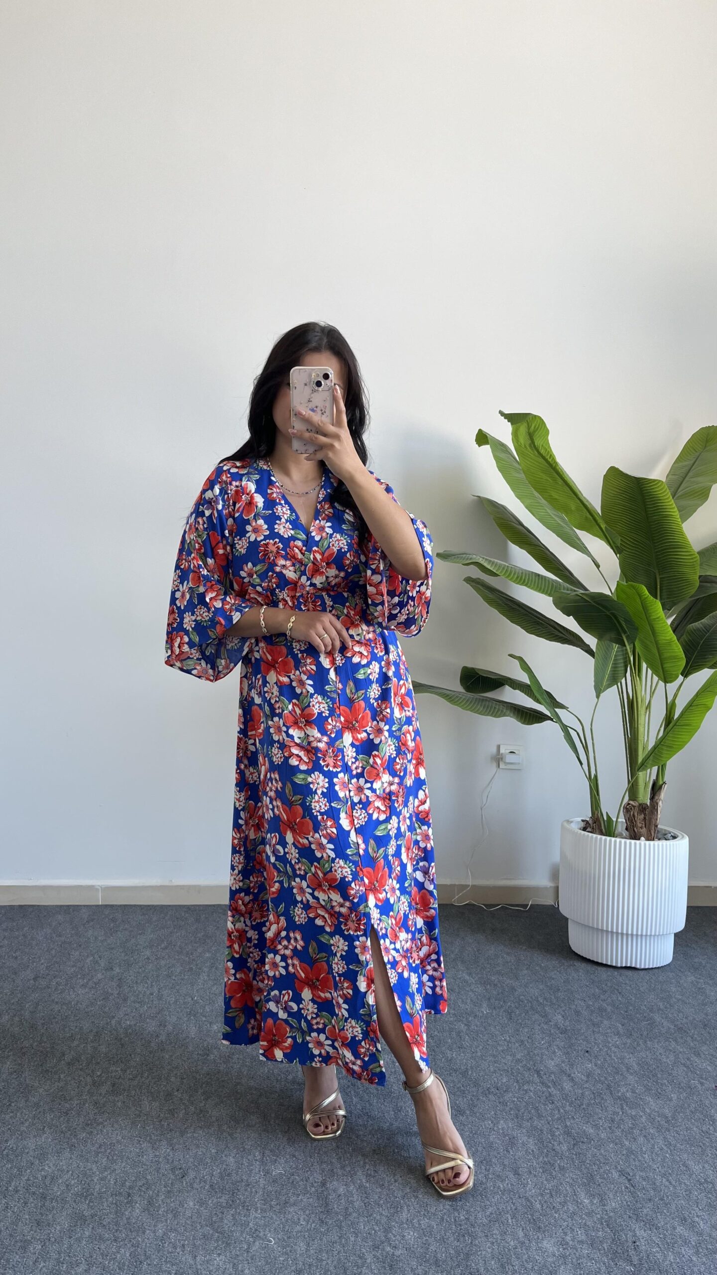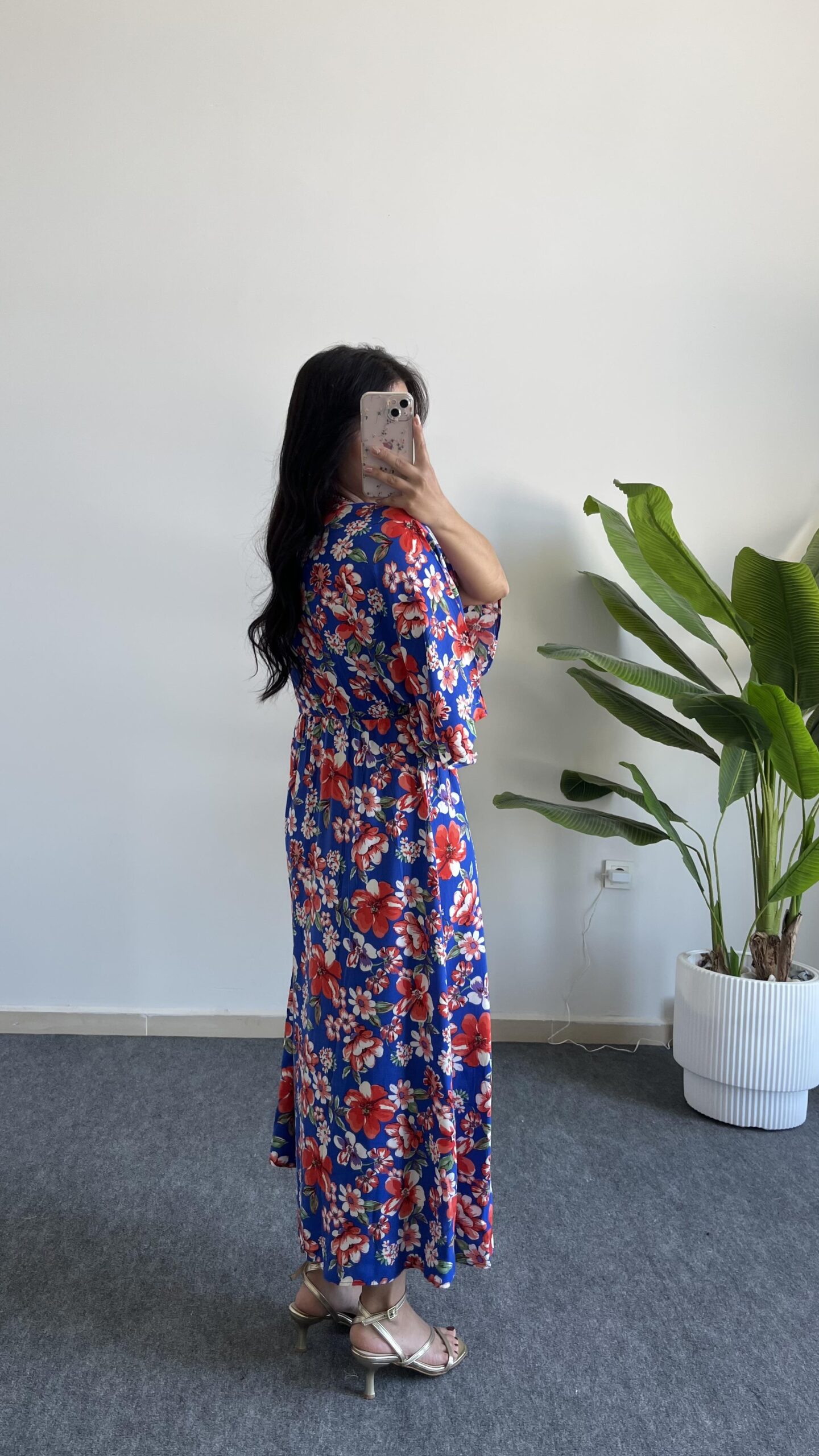 Flora Gipeli Karpuz Kol Midi Elbise - Yeşil