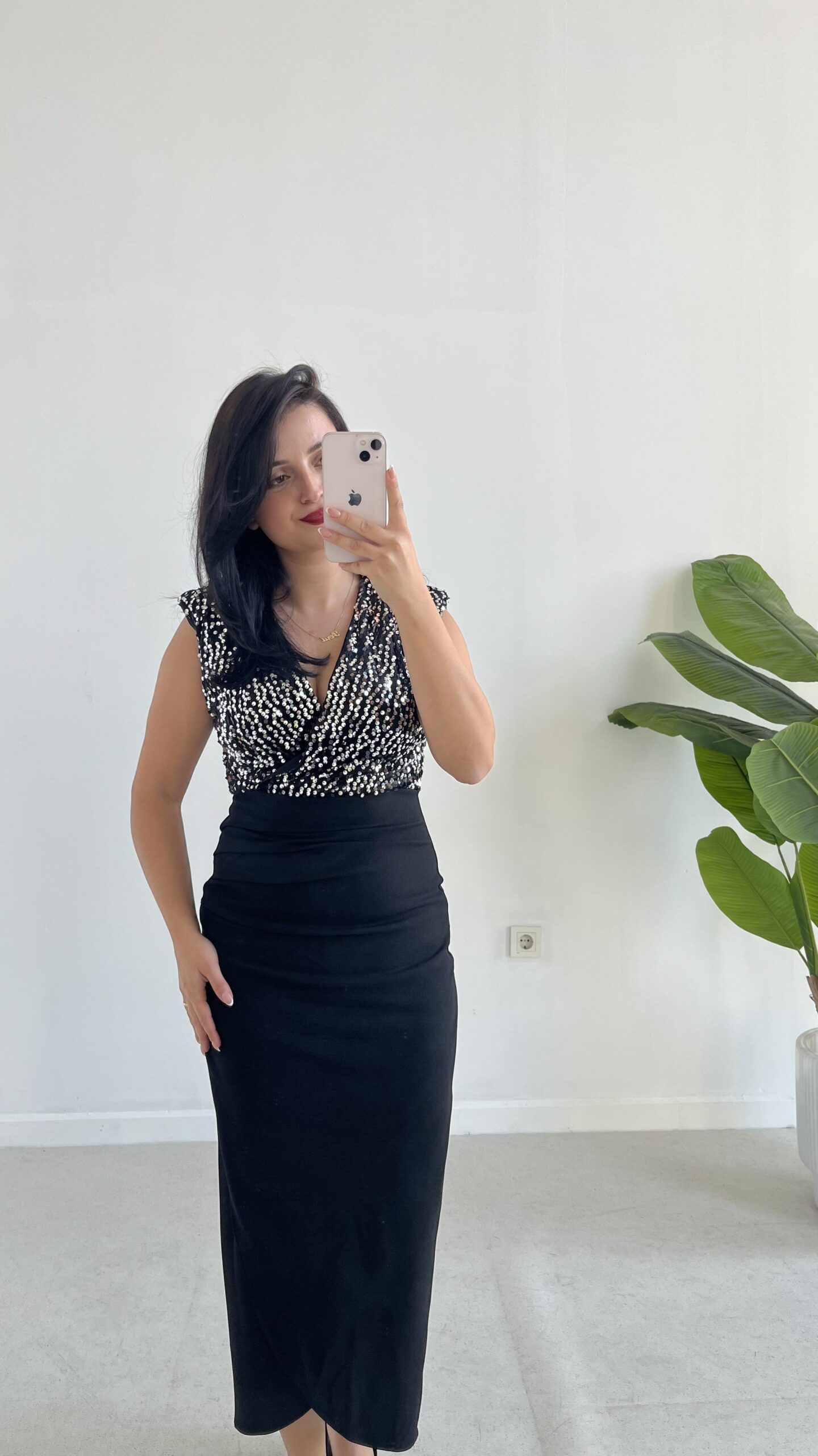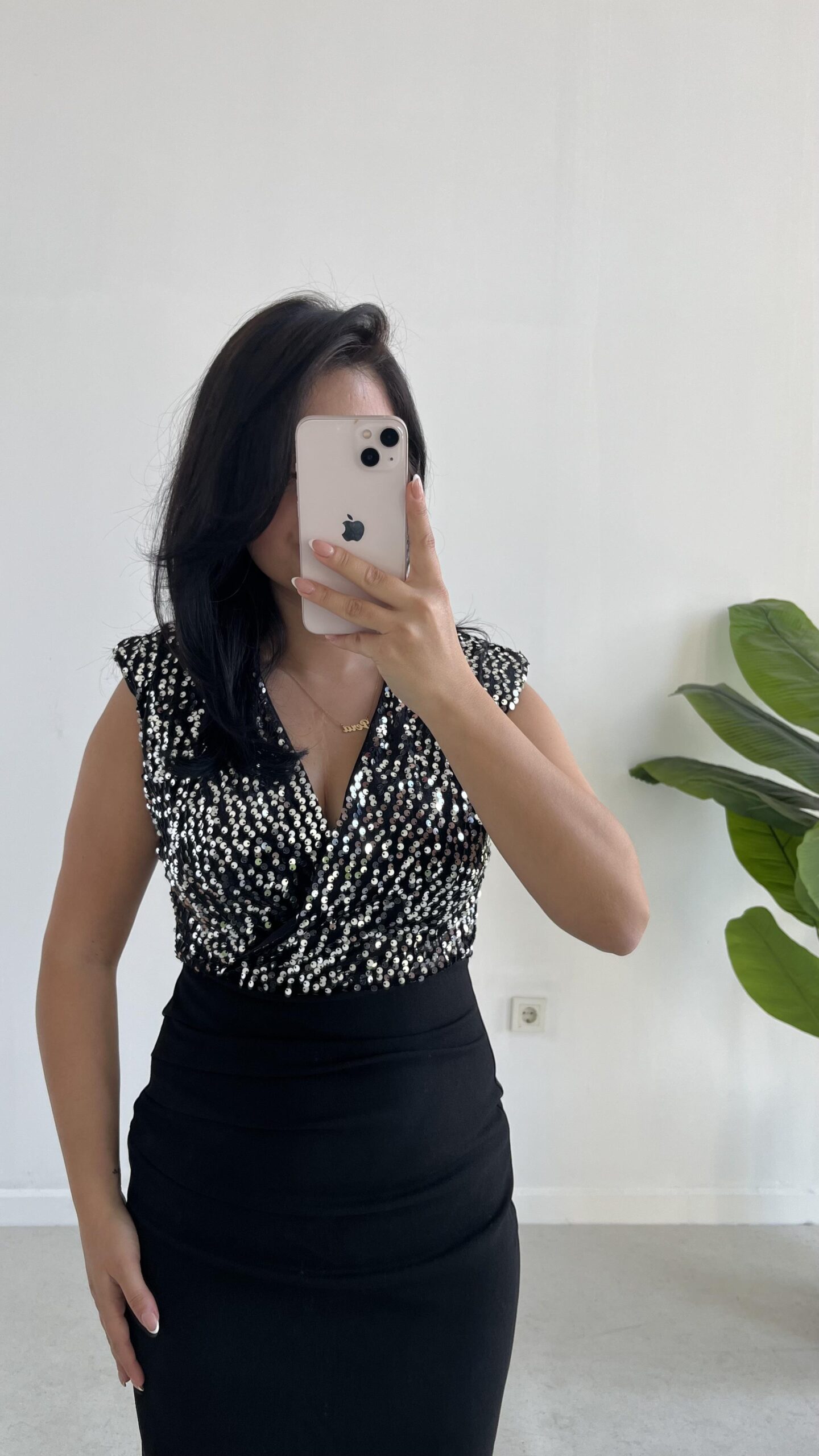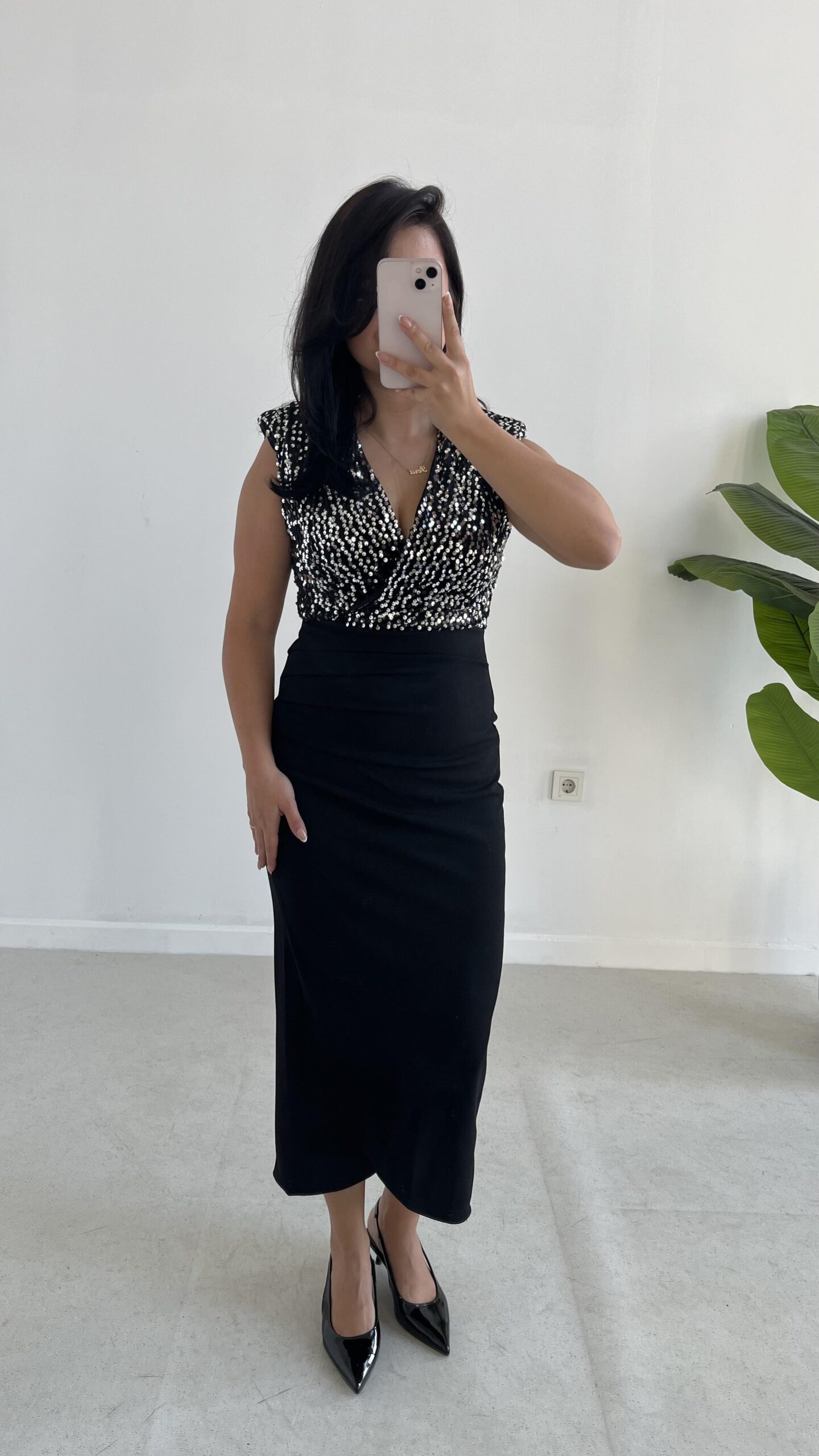 Pul Payet Kruvaze Anvelop Elbise – Gümüş