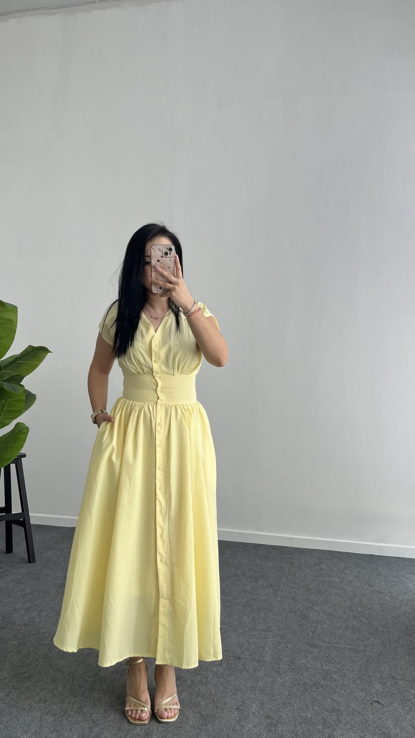 Rima Poplin Elbise – Sarı