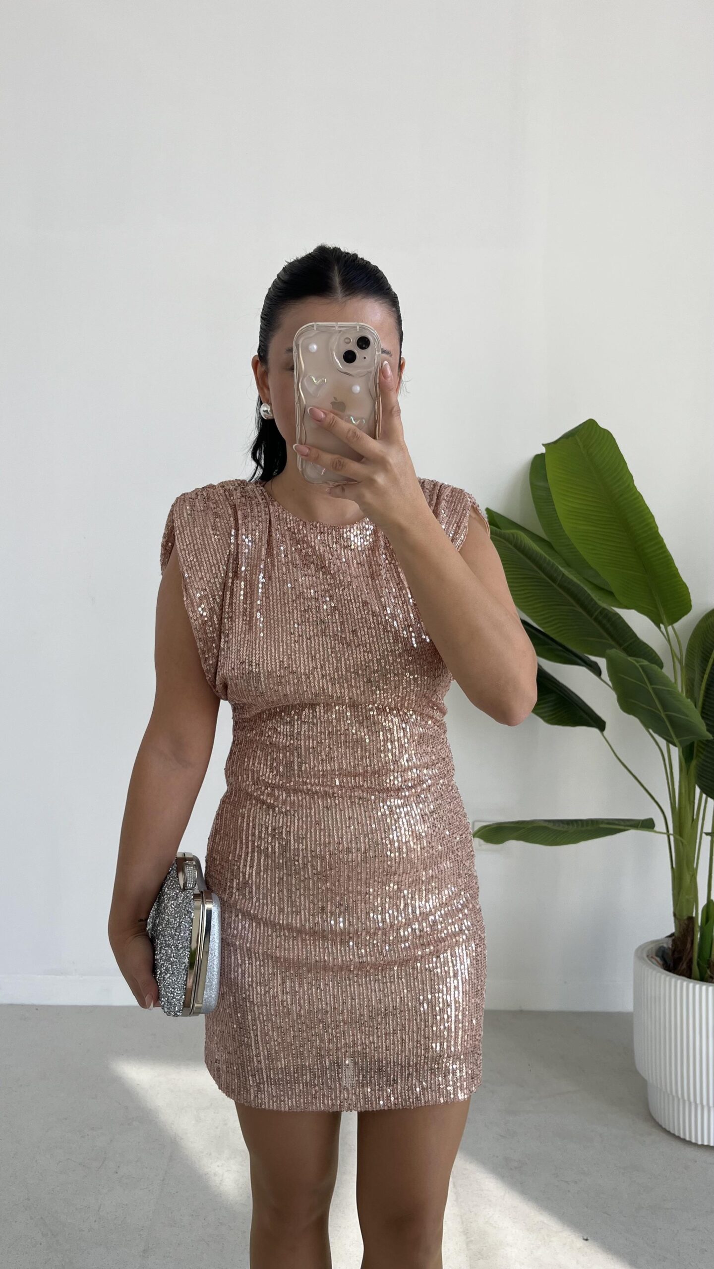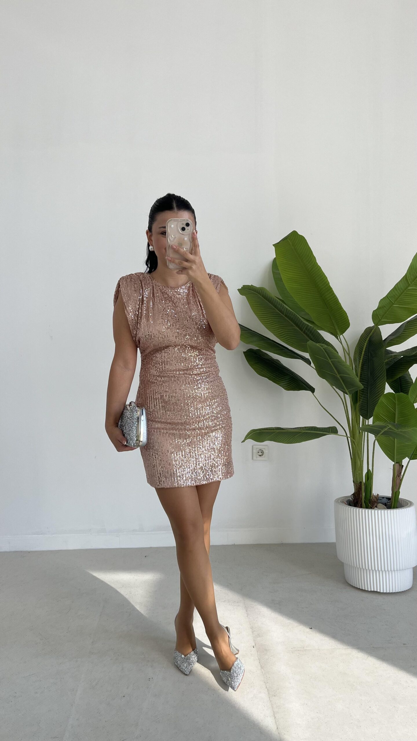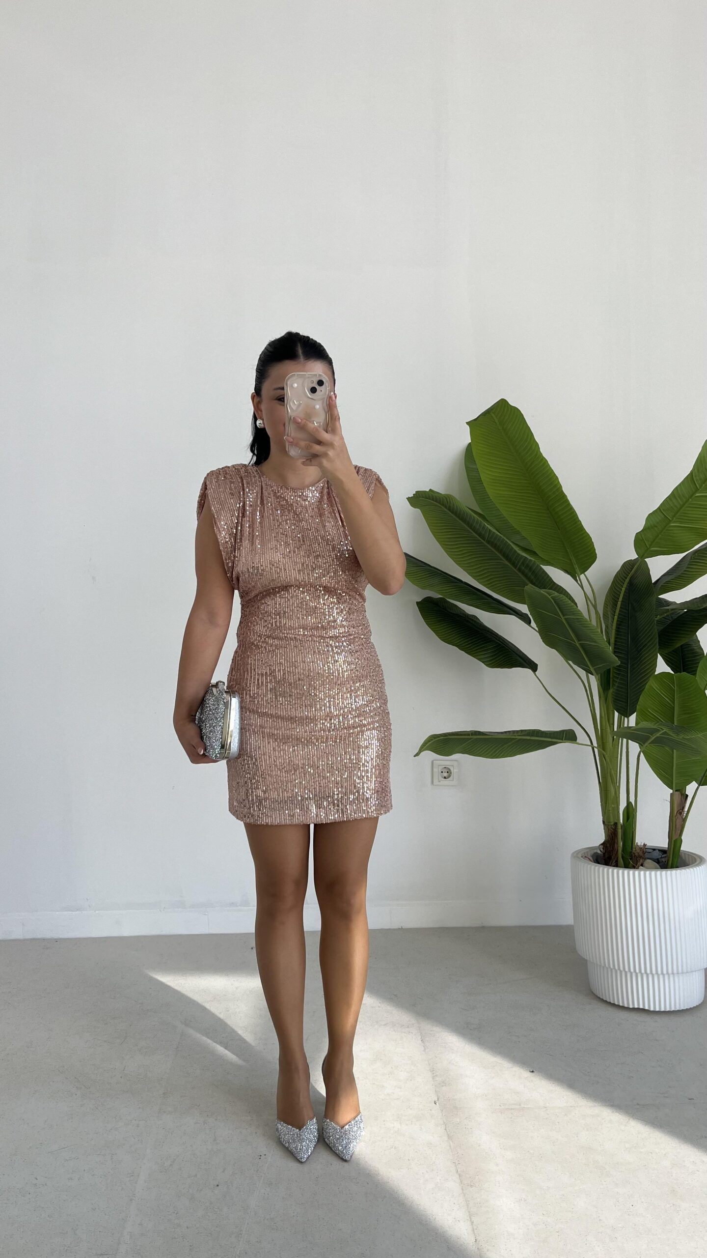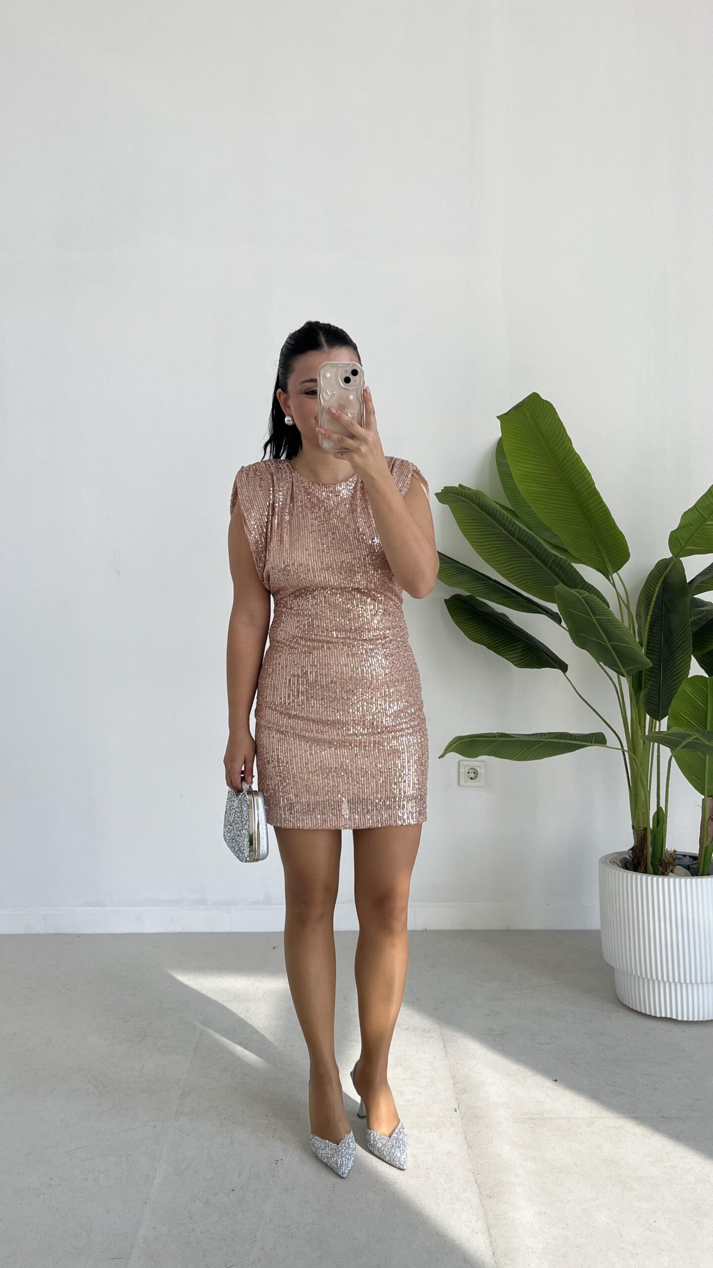 Rosita Sırt Dekolteli Pul Payet Mini Elbise – Yavruağzı