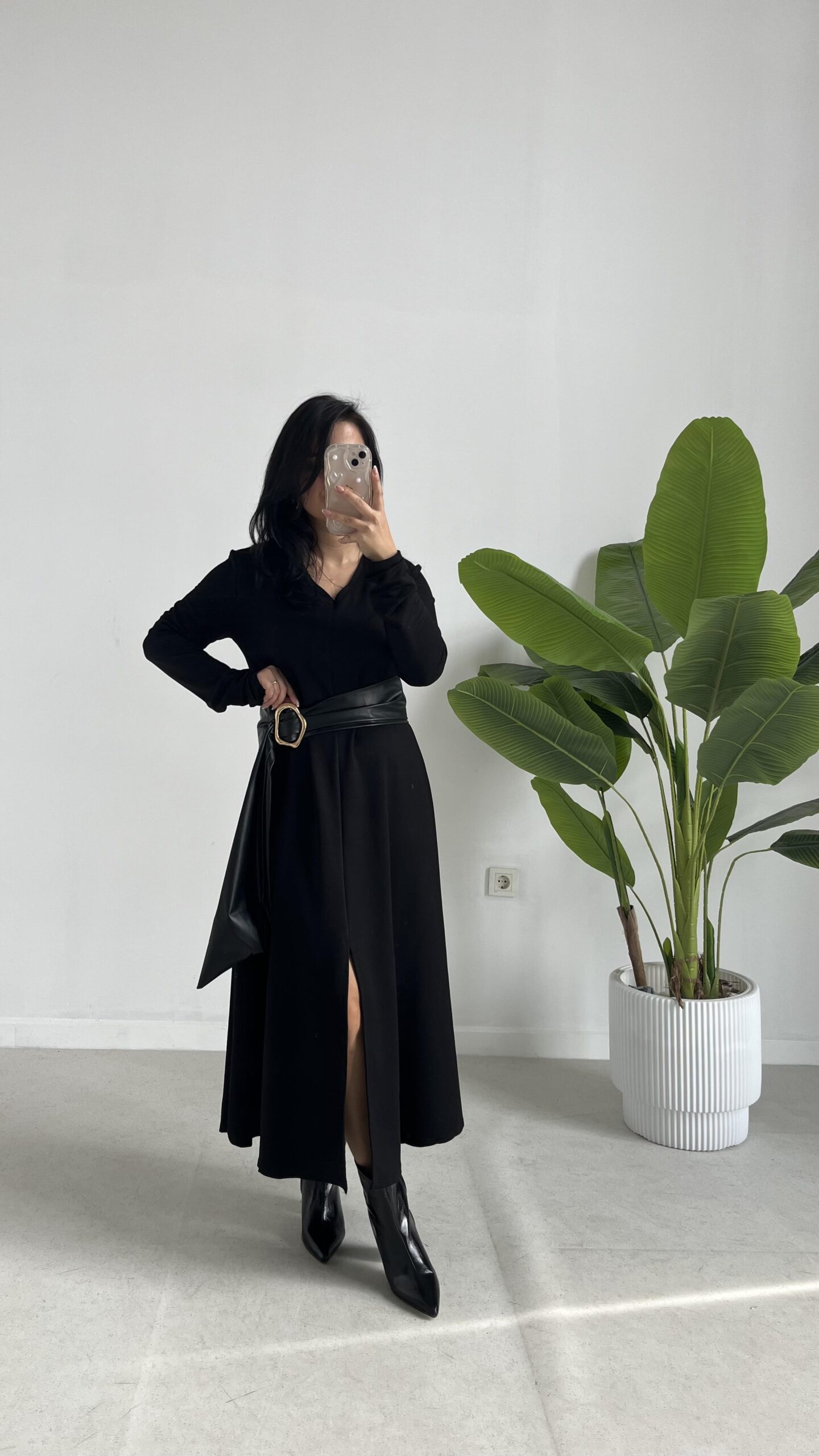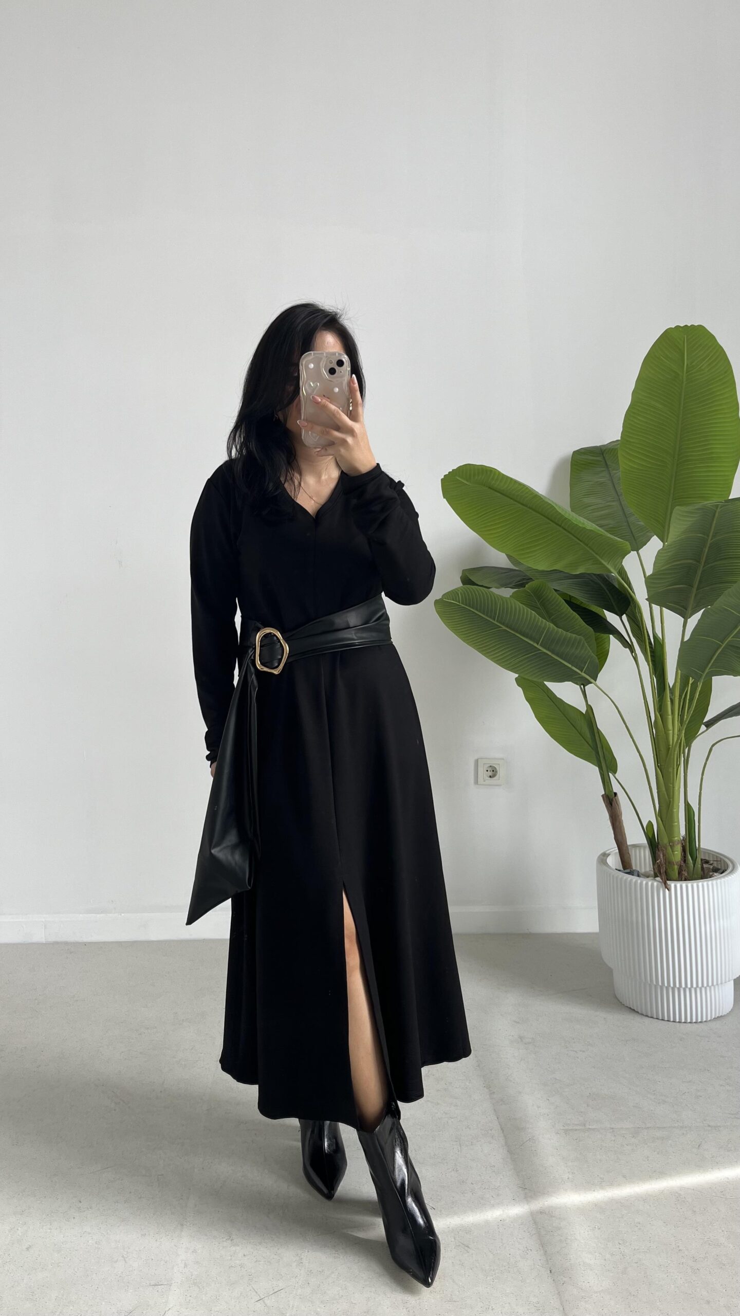 Vetra Çan Kemerli Elbise – Siyah