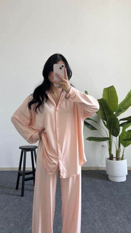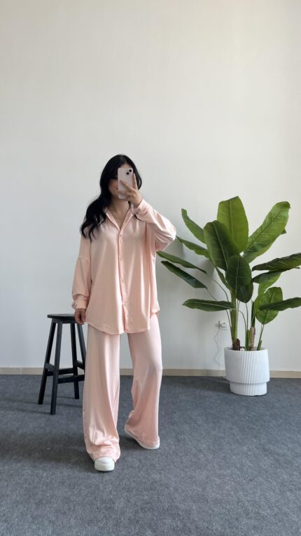 Lenora Gold Düğme Detaylı Pembe Salaş Takım