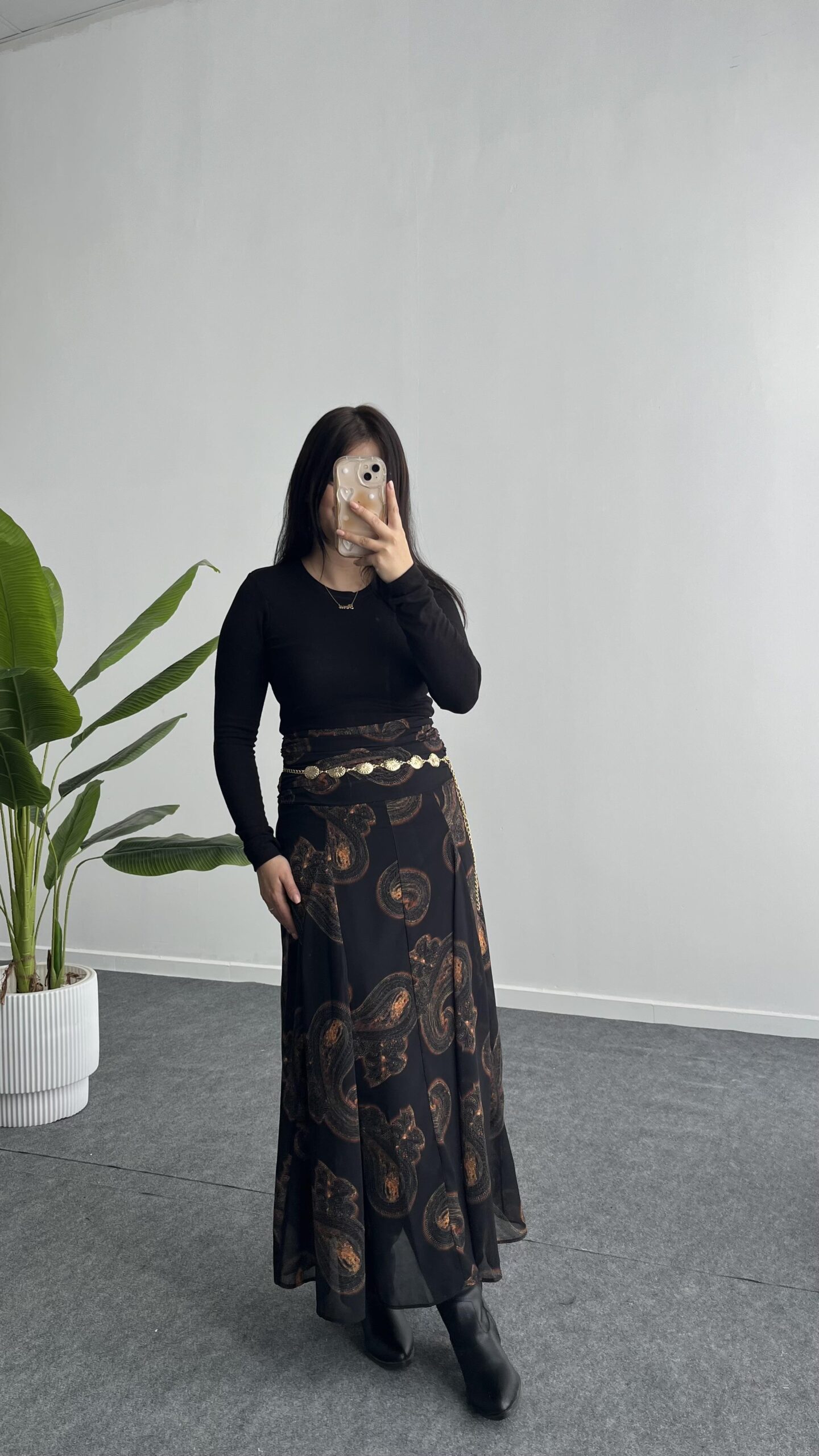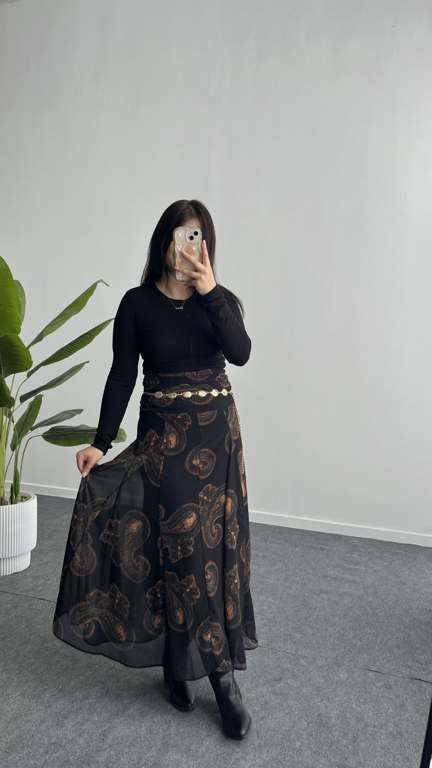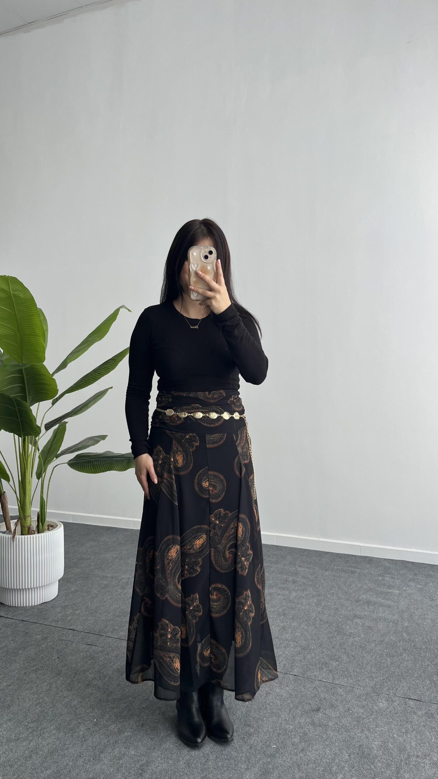 Lorai Desenli Şifon Etek – Siyah