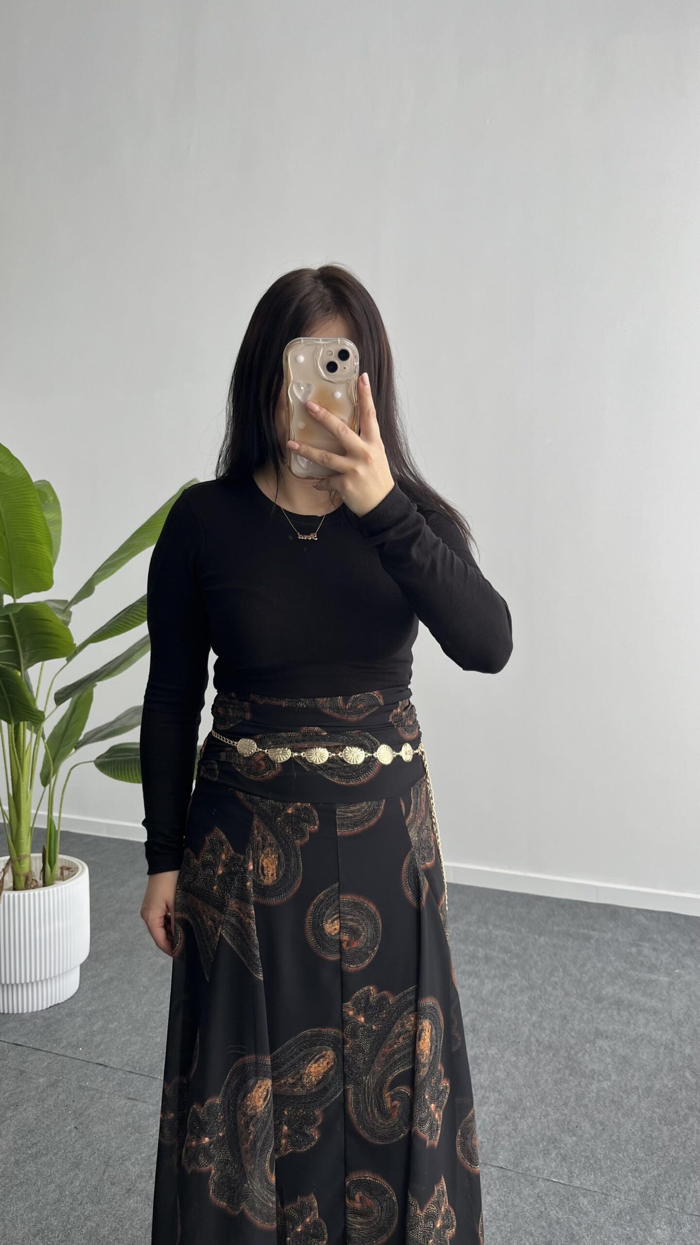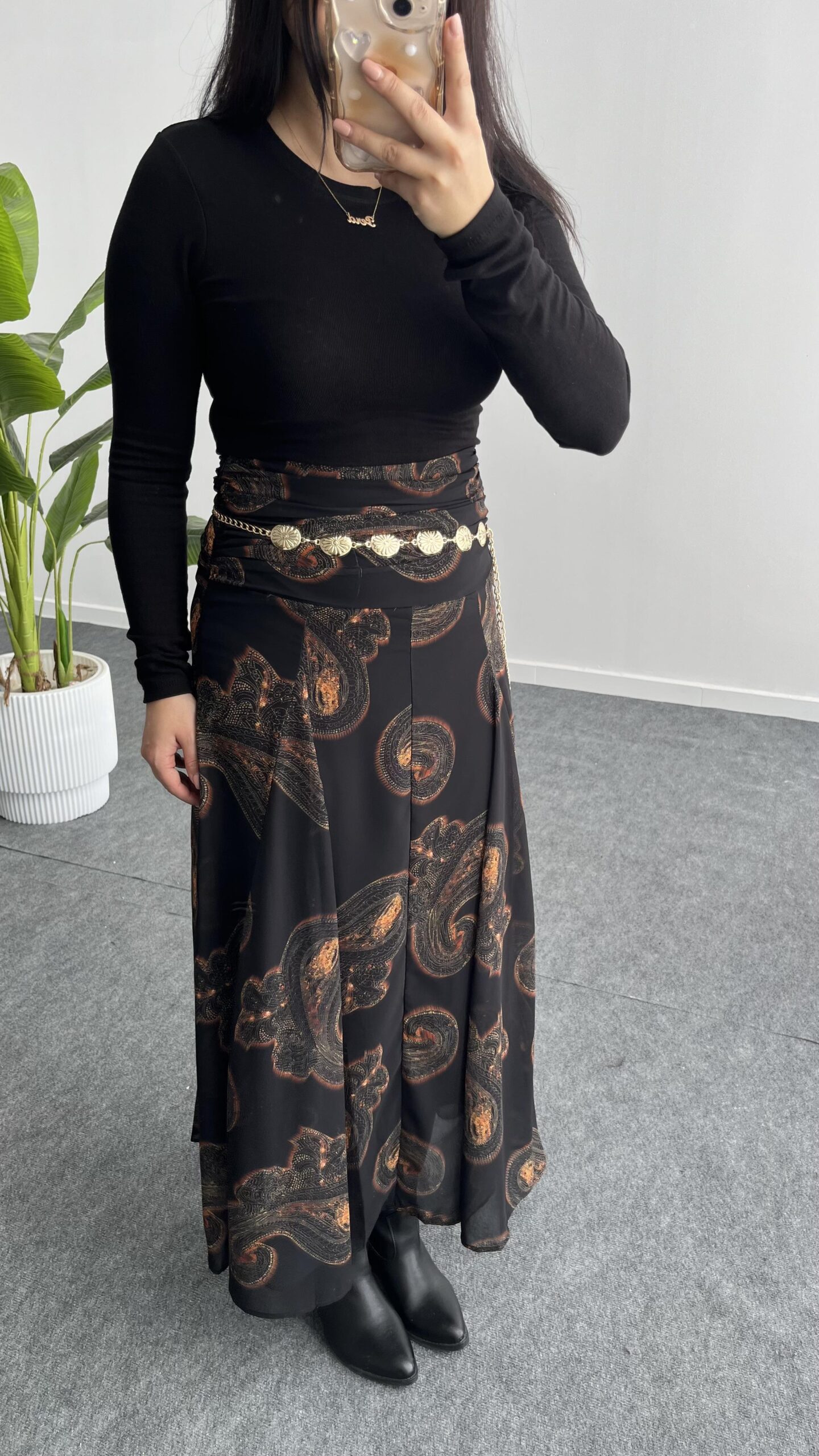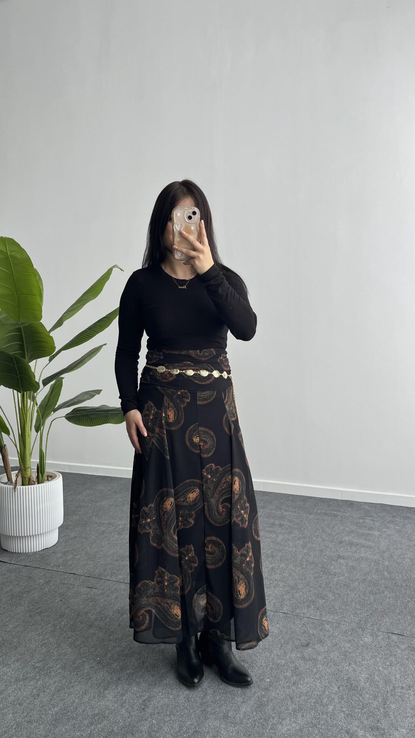 Lorai Desenli Şifon Etek – Siyah