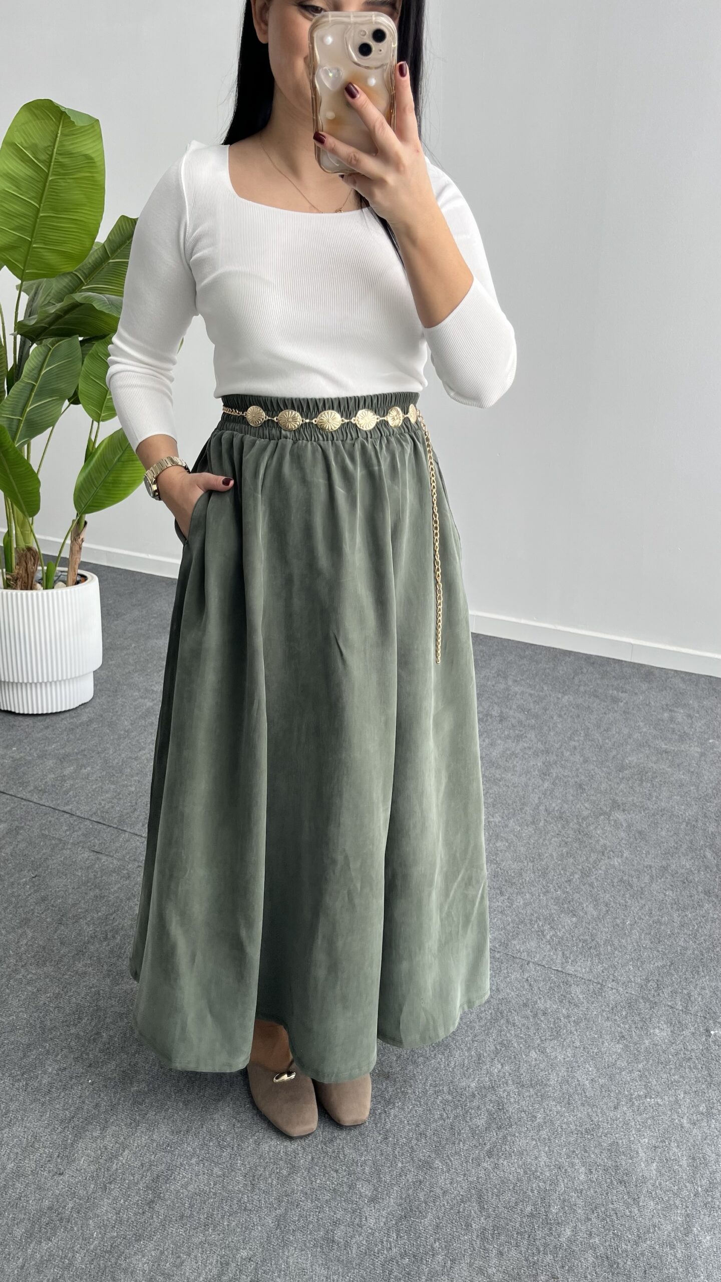 Lerasa Tensel Maxi Etek – Haki