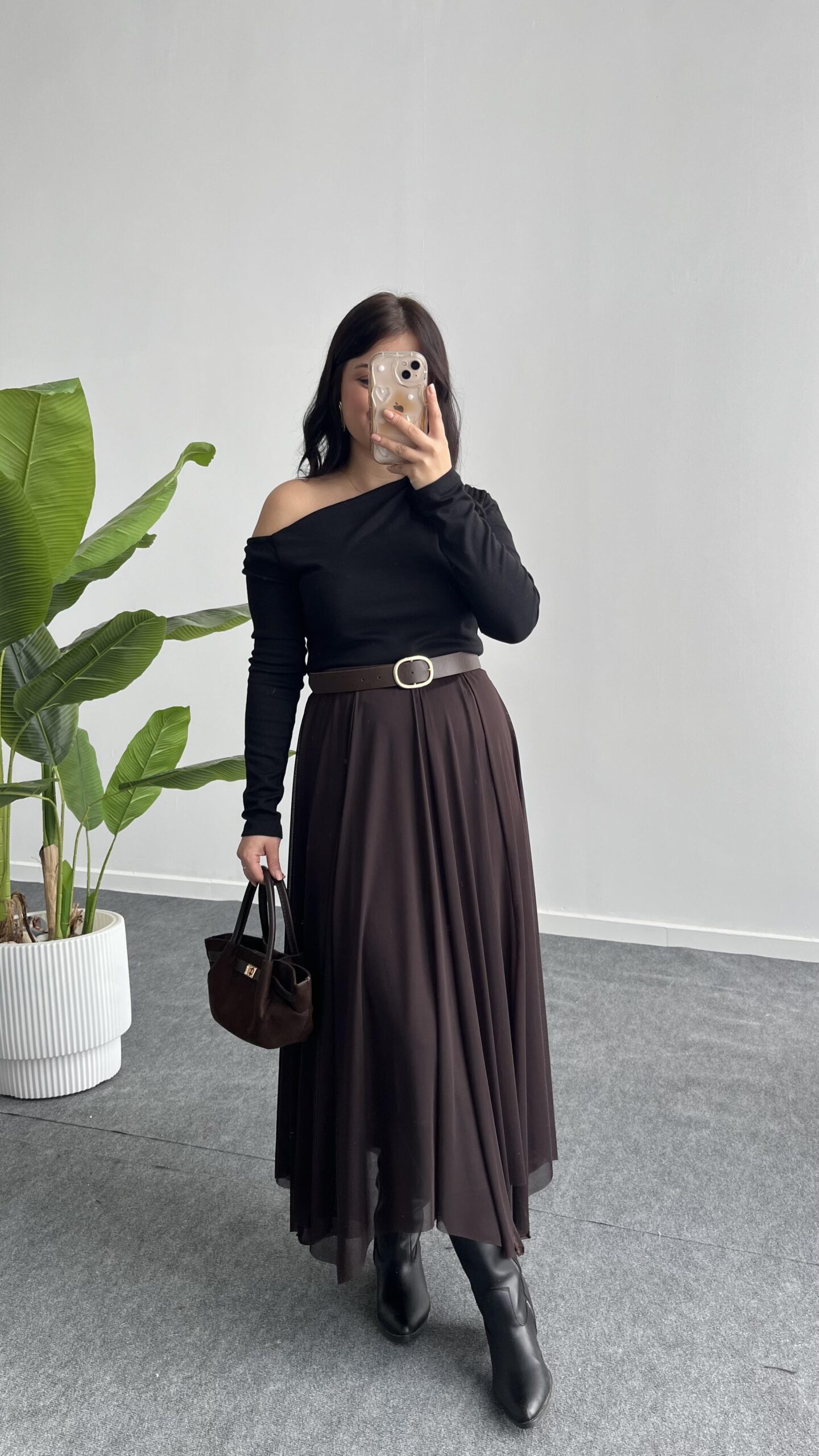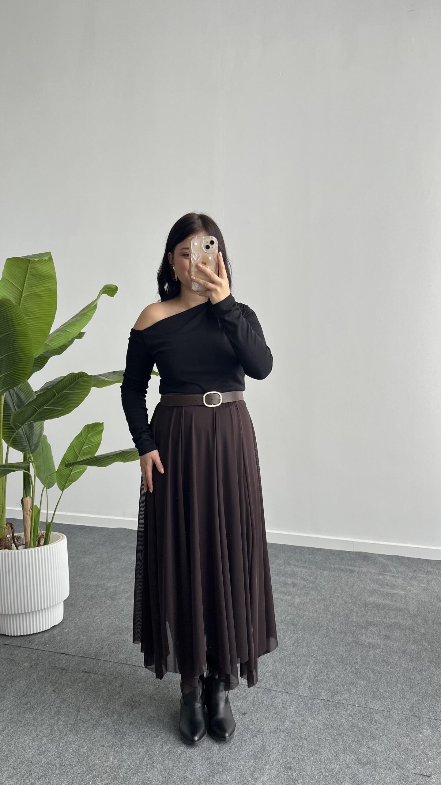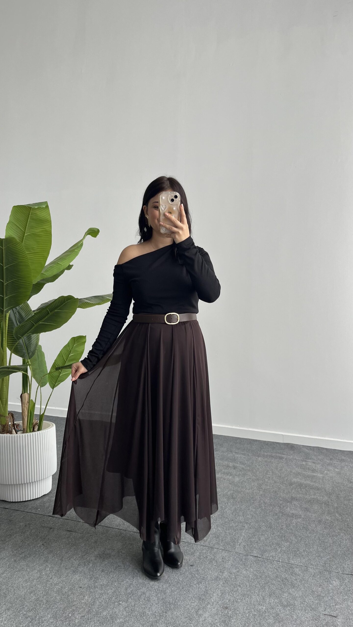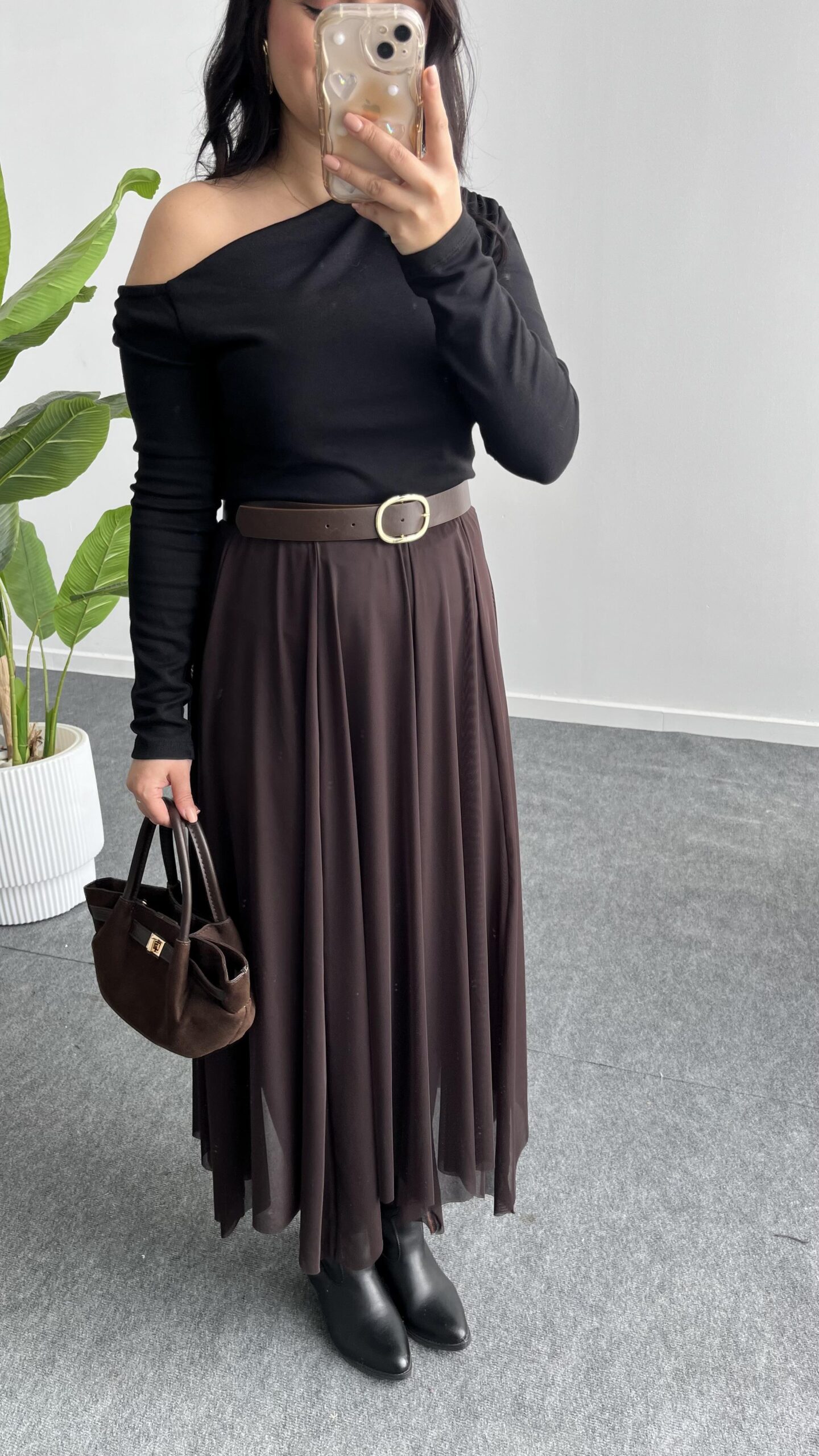 Veny Asimetrik Tül Etek – Kahve