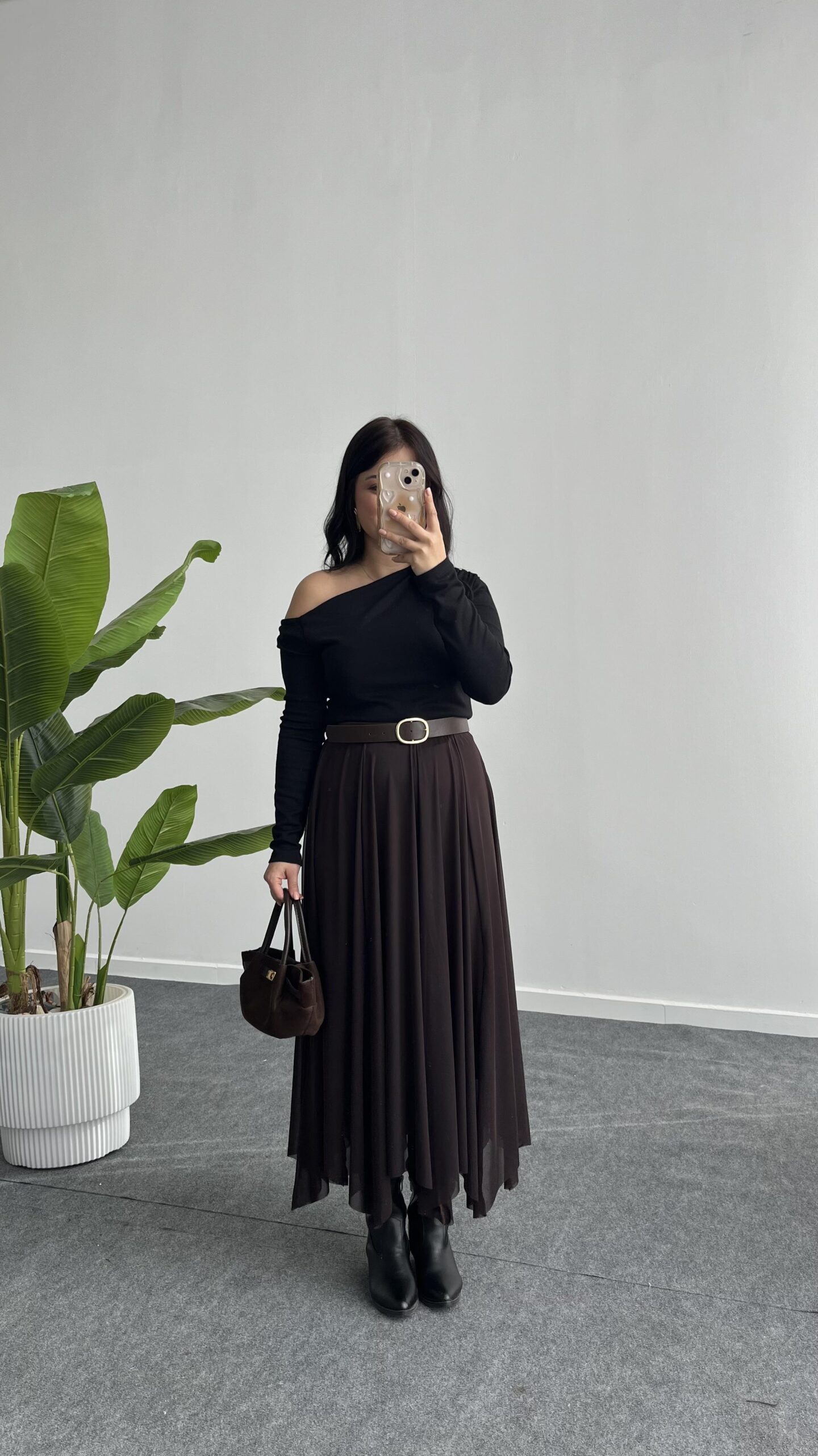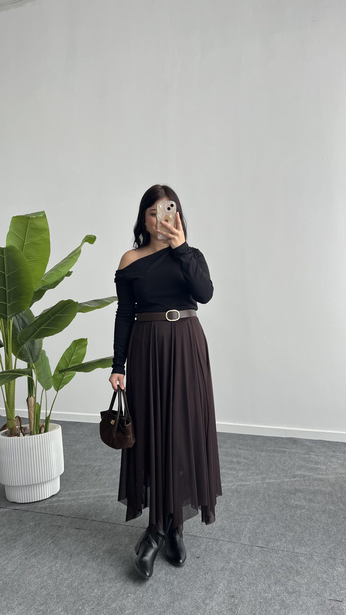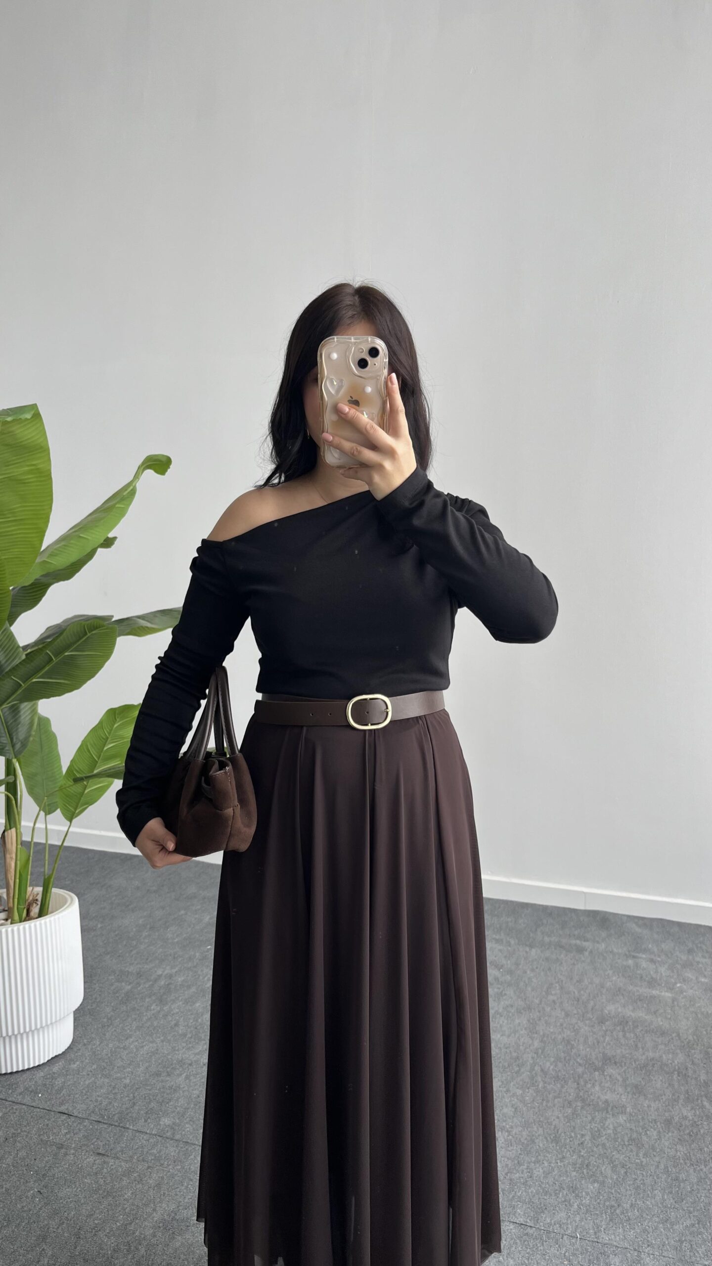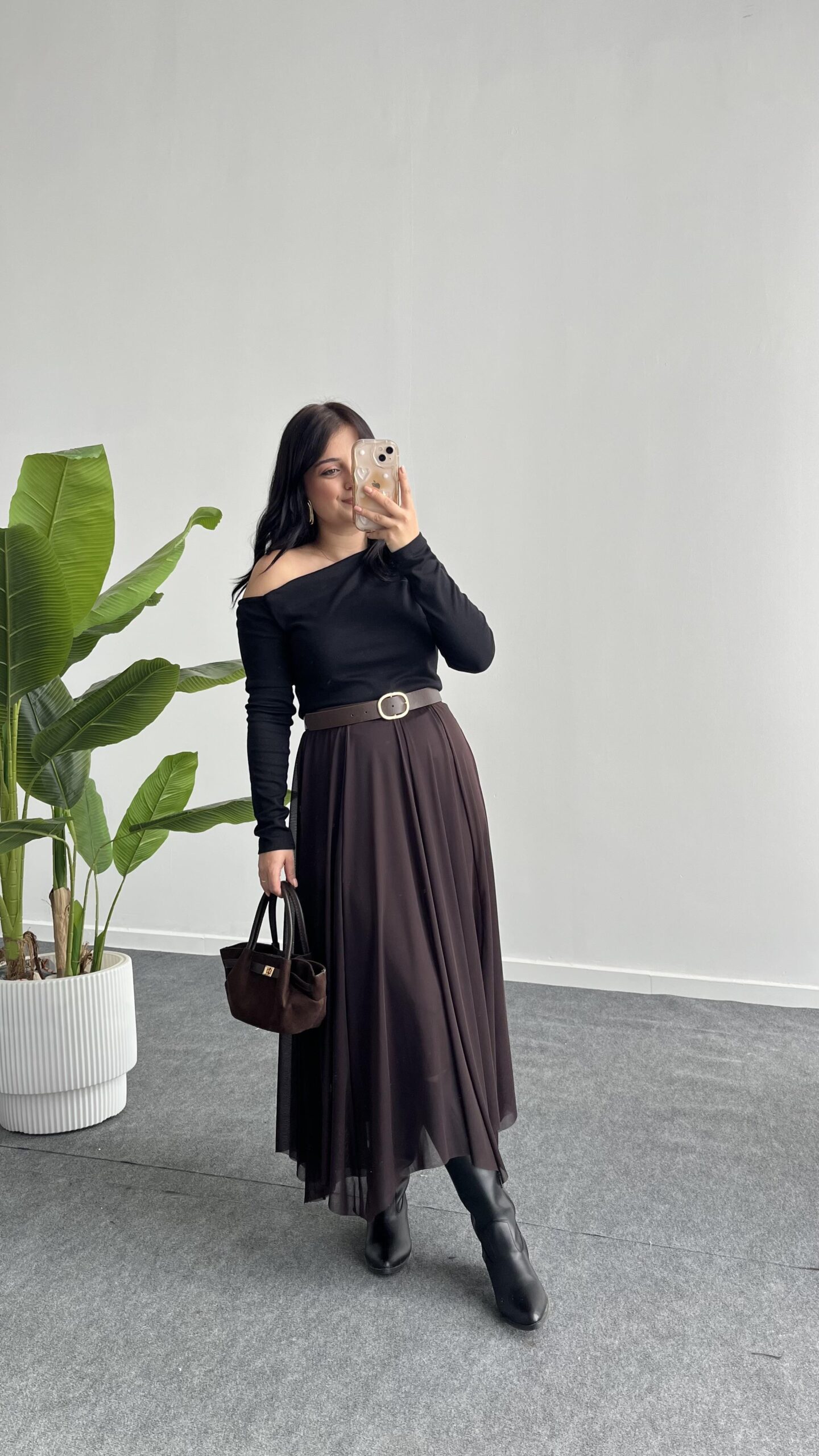 Veny Asimetrik Tül Etek – Kahve