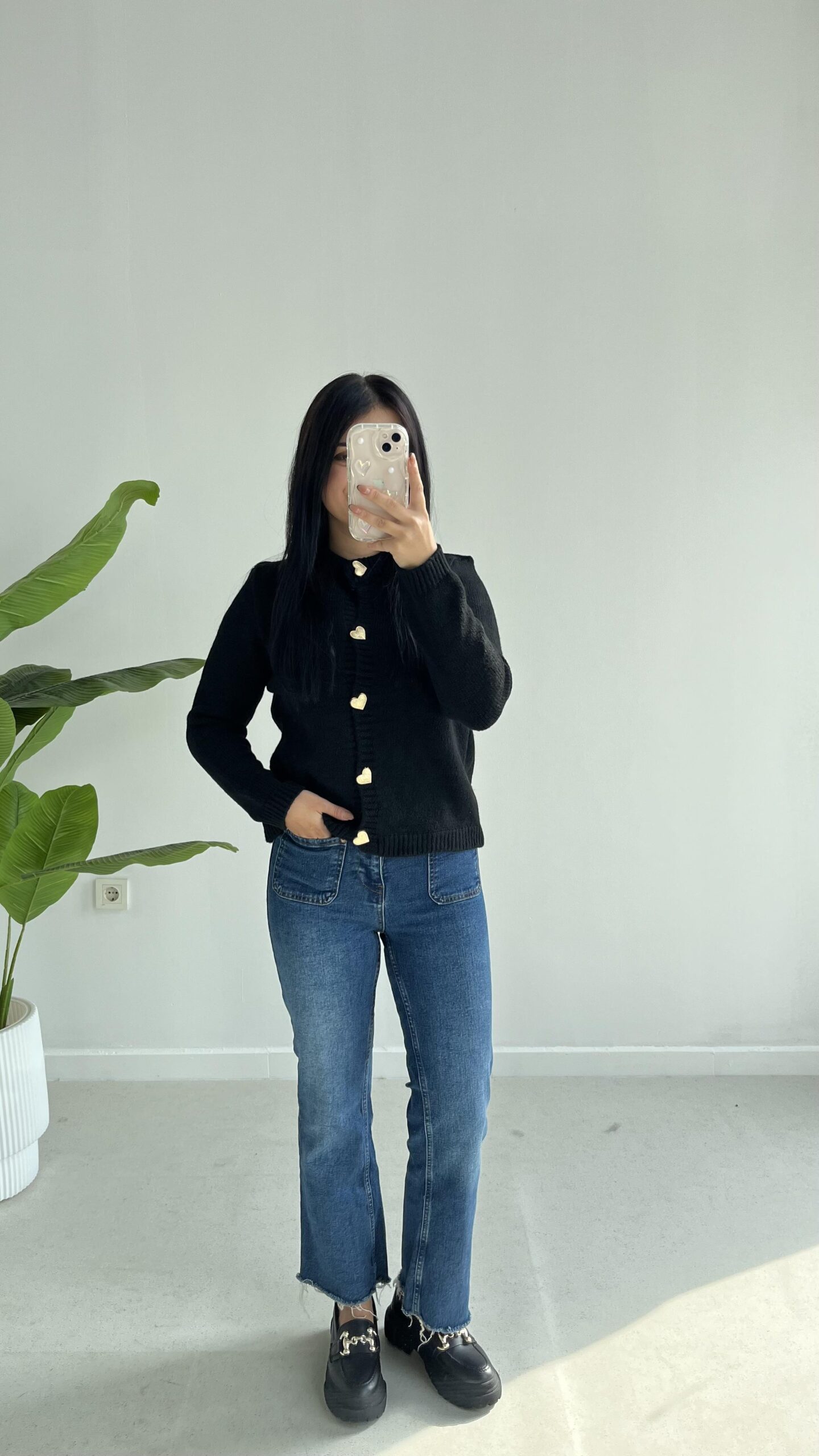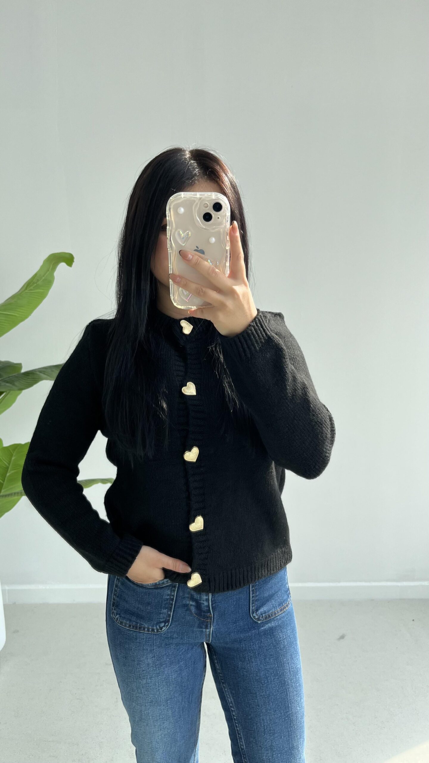 Gold Kalp Düğmeli Triko Hırka – Siyah