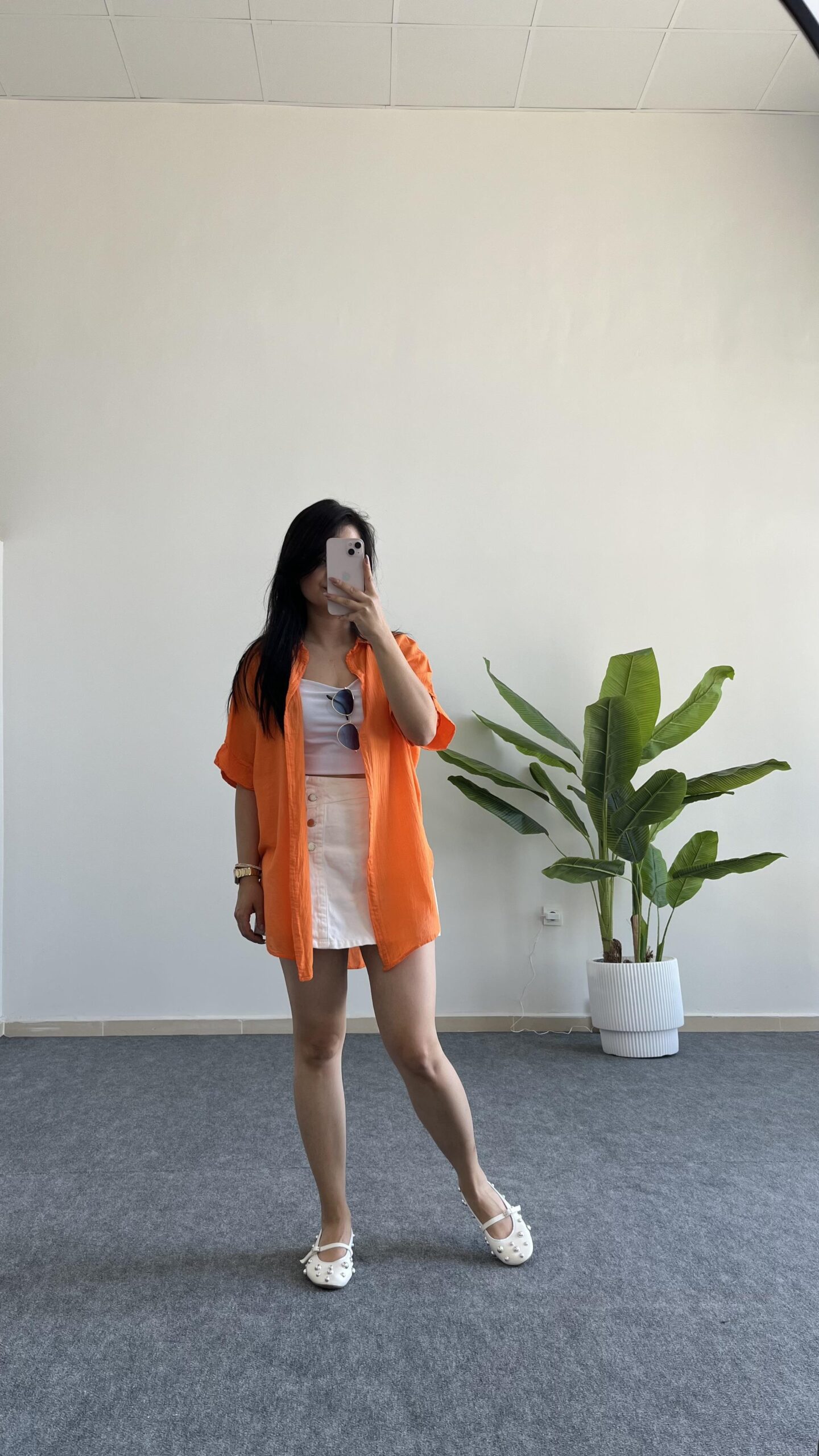 Linda Asimetrik Kesim Keten Gömlek – Turuncu
