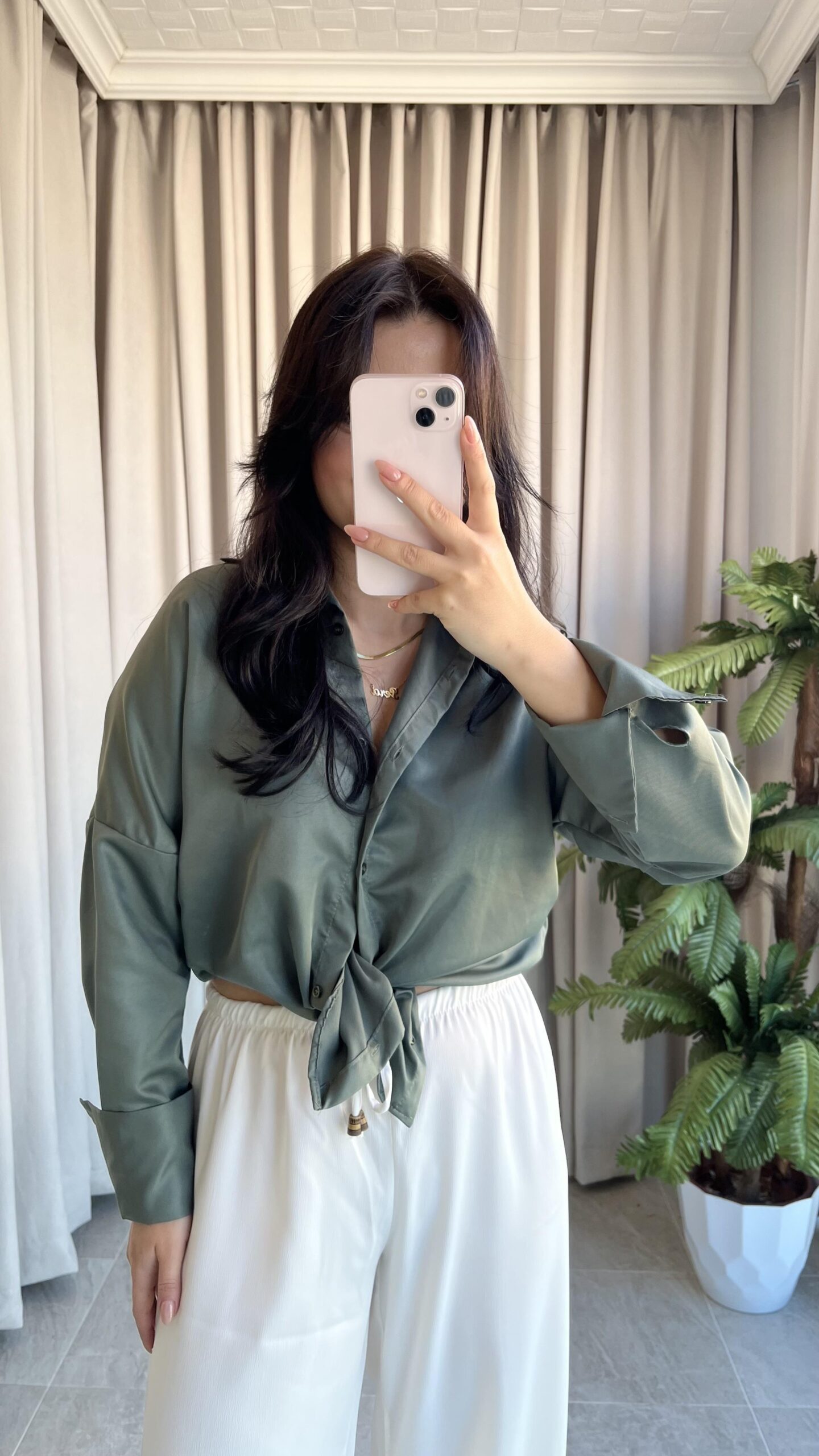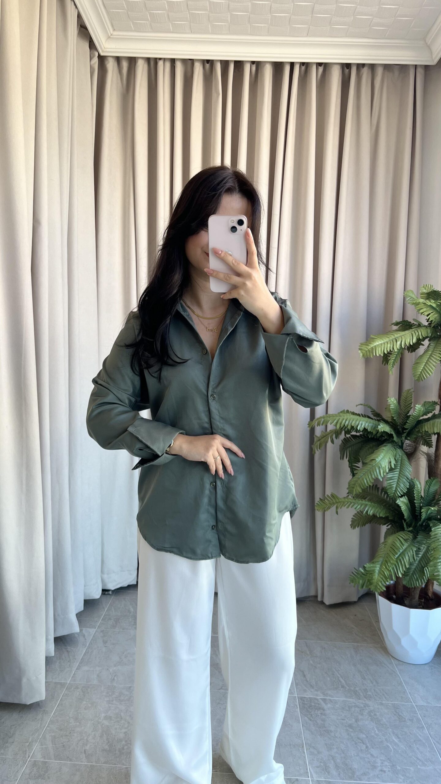 Eyra Oversize Pamuk Saten Gömlek Haki