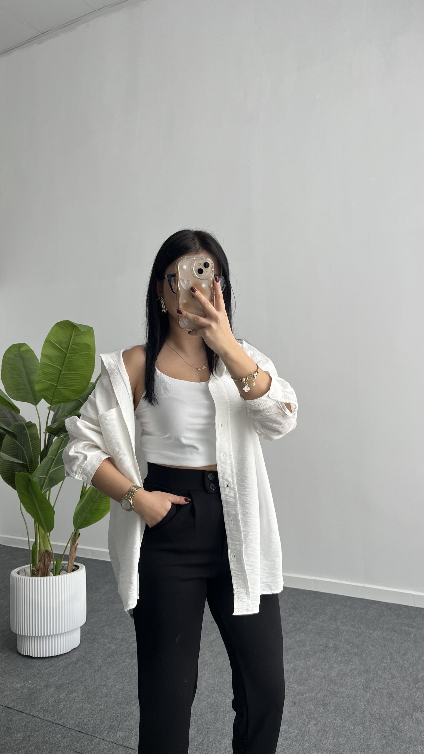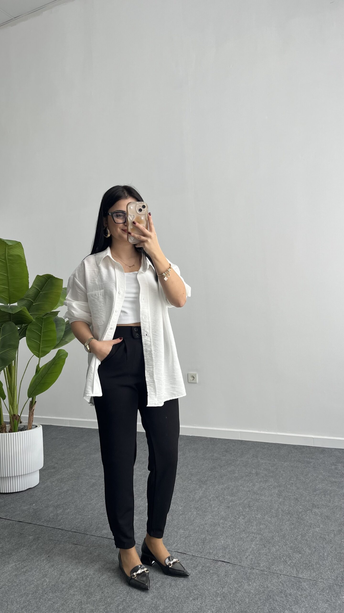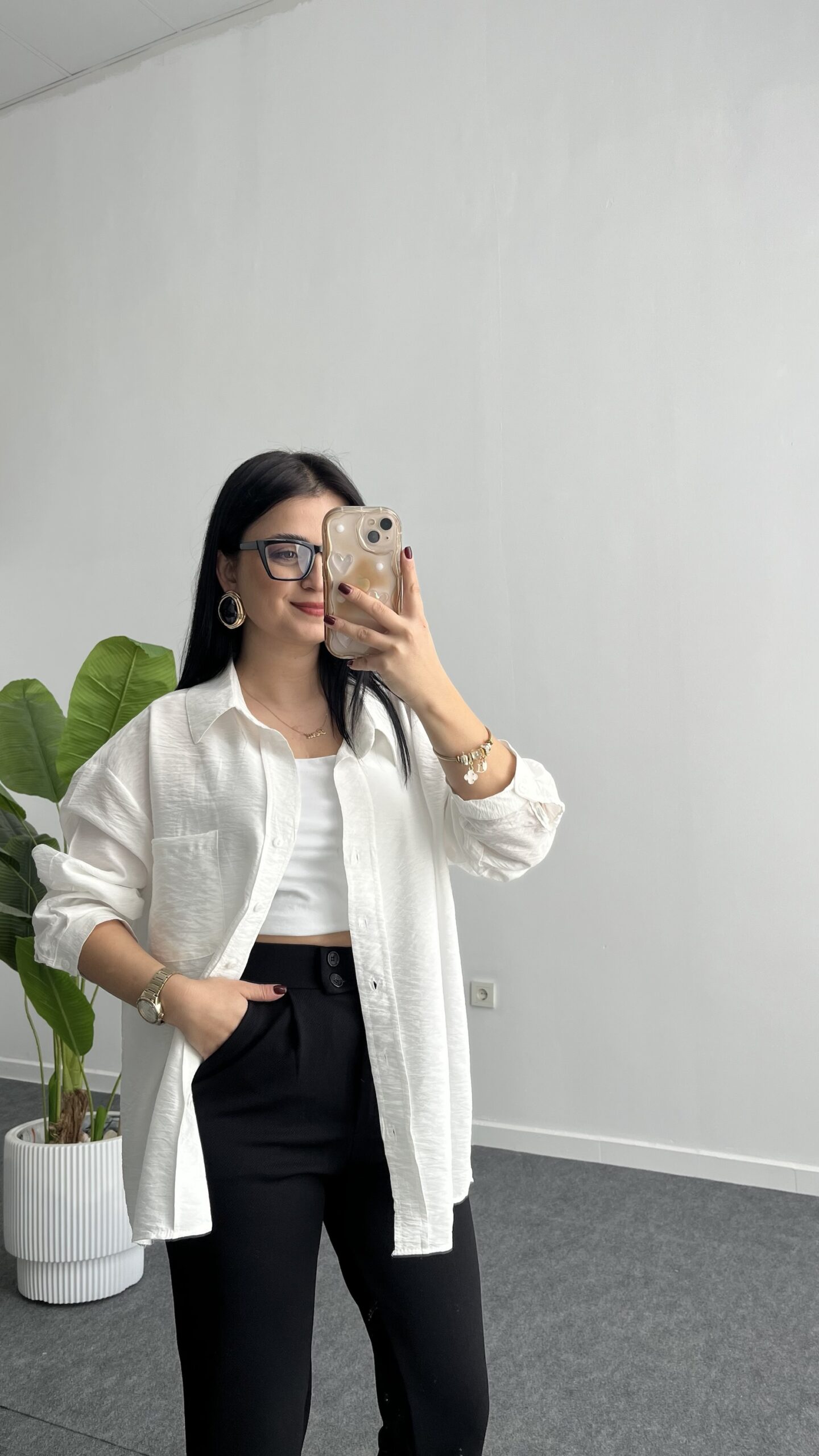 Leoni Oversize Basic Gömlek – Beyaz