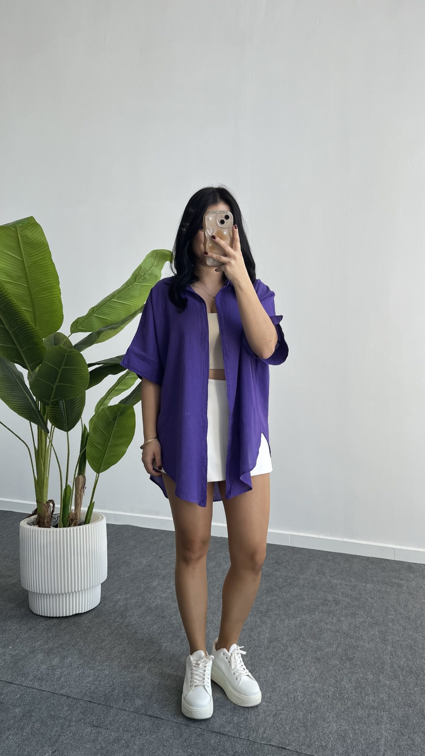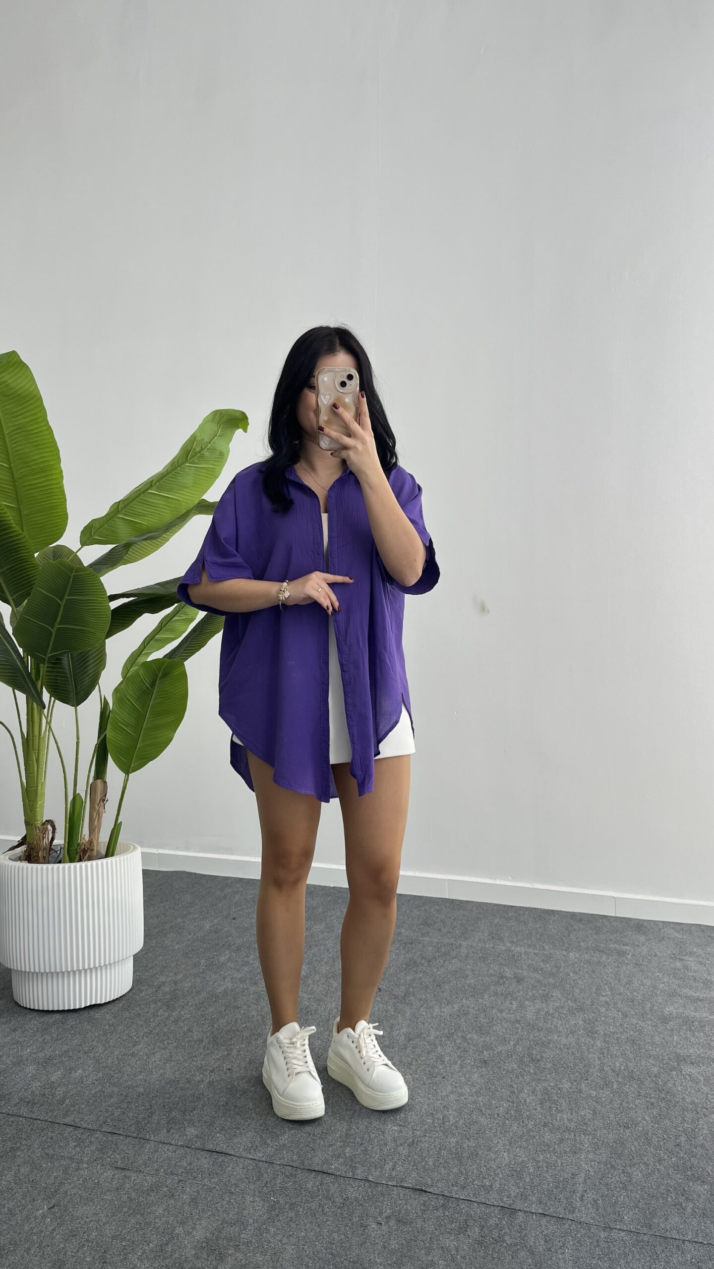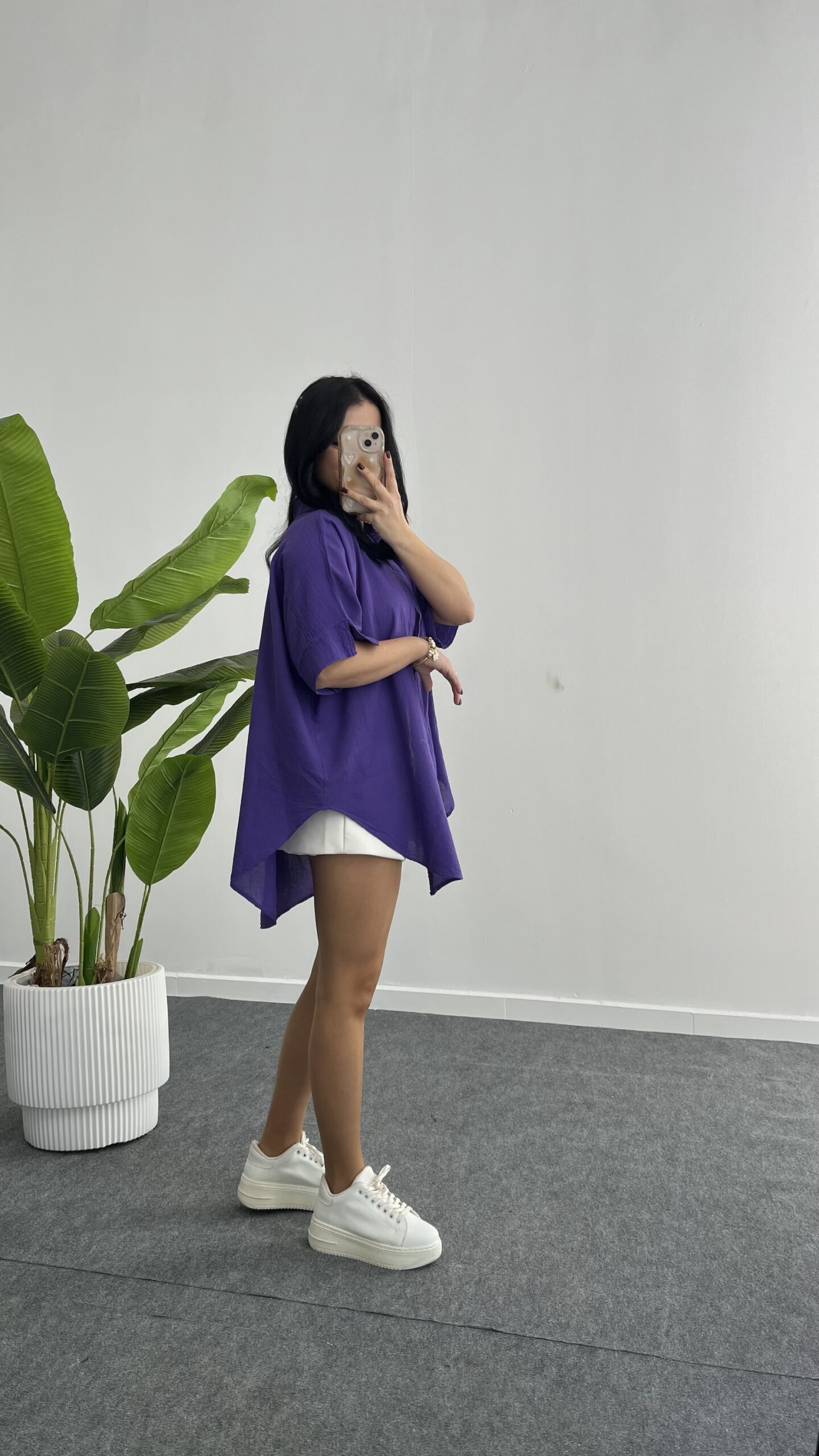 Linda Asimetrik Kesim Keten Gömlek – Mor