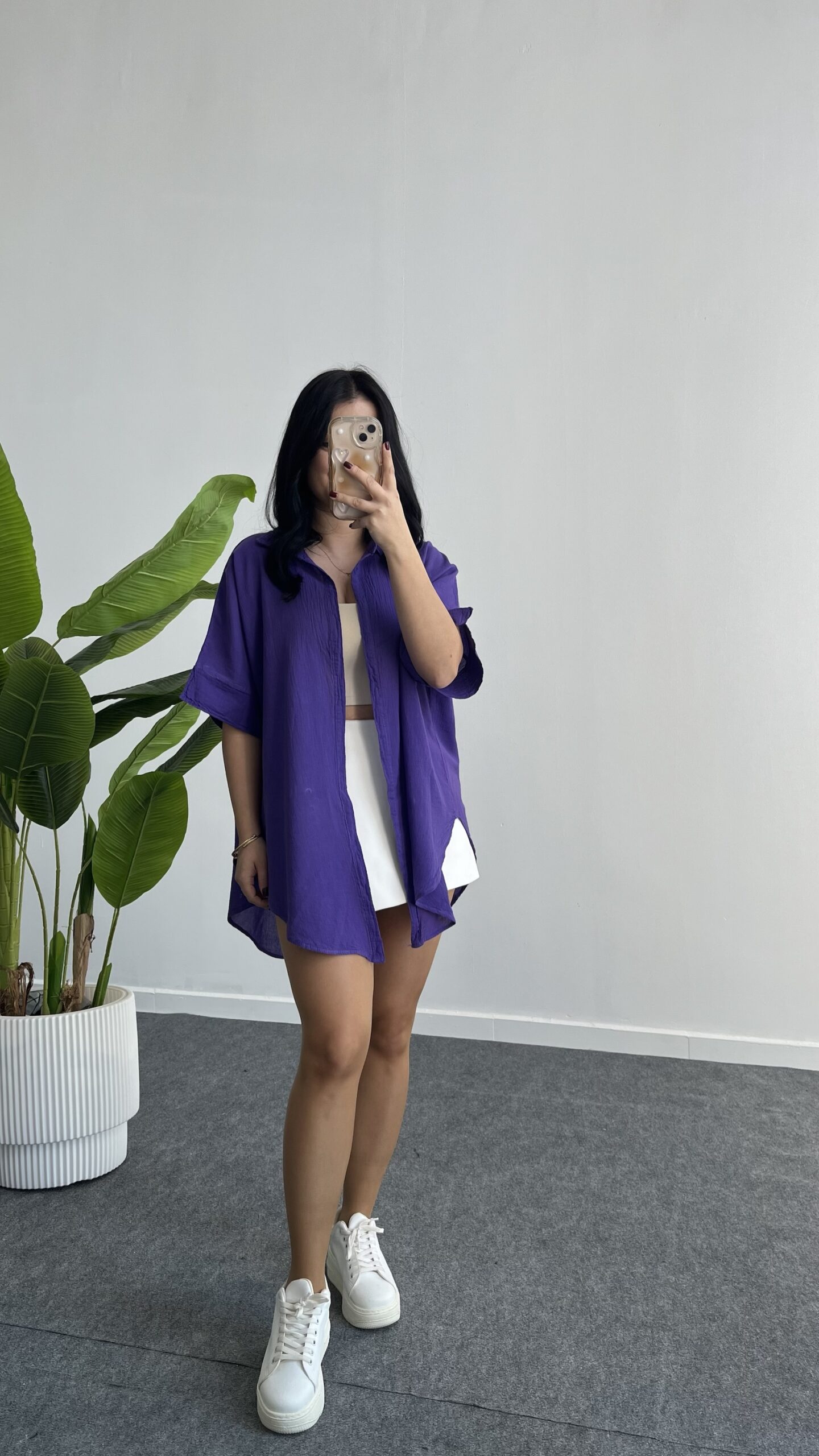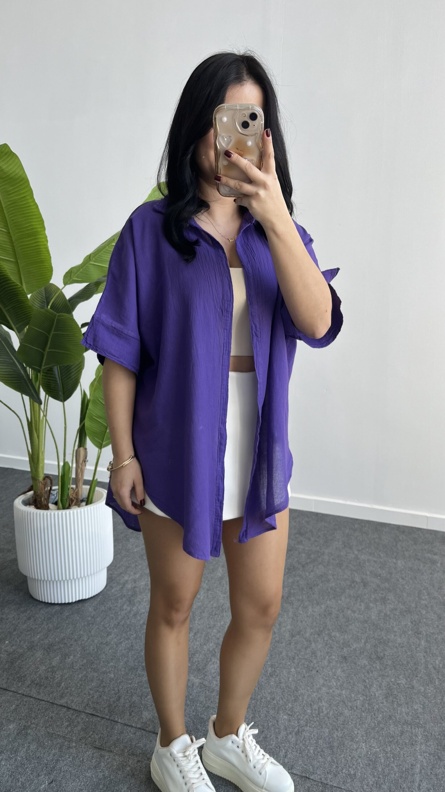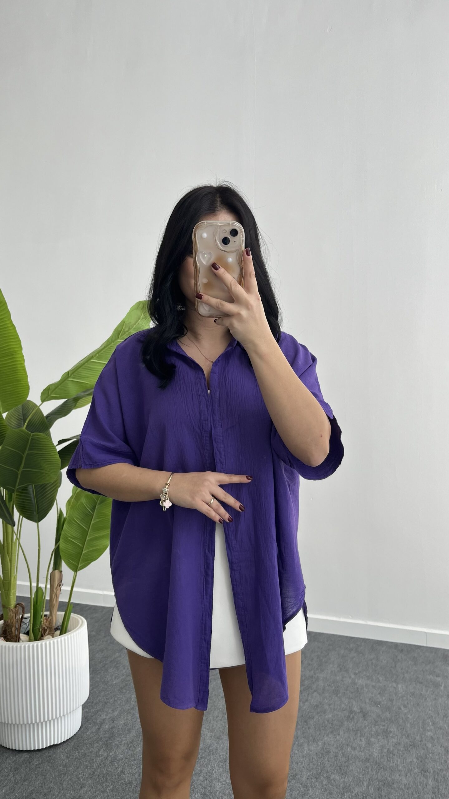 Linda Asimetrik Kesim Keten Gömlek – Mor