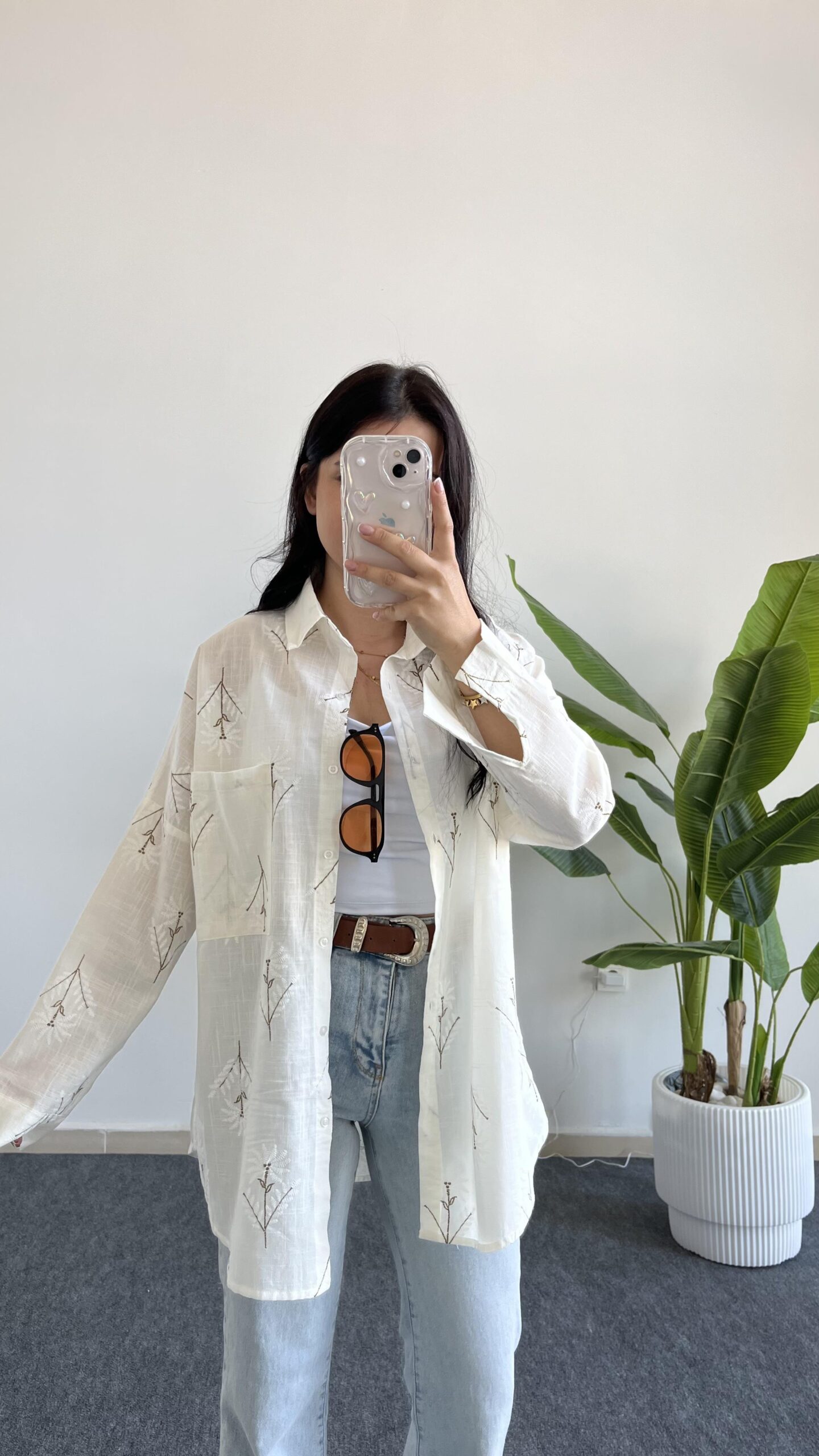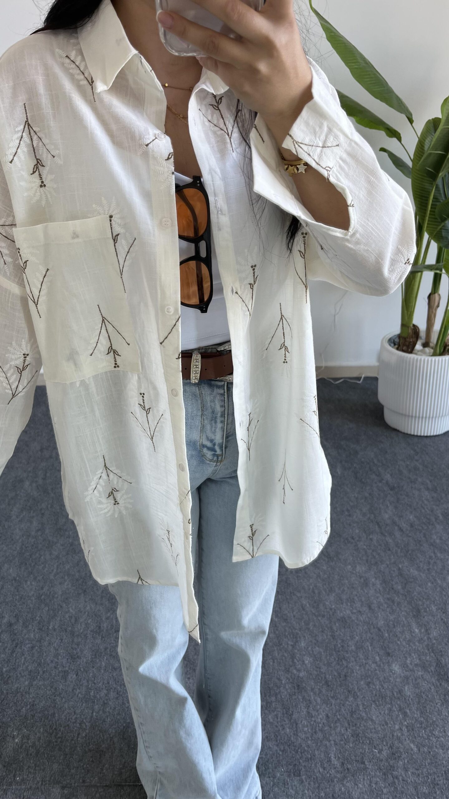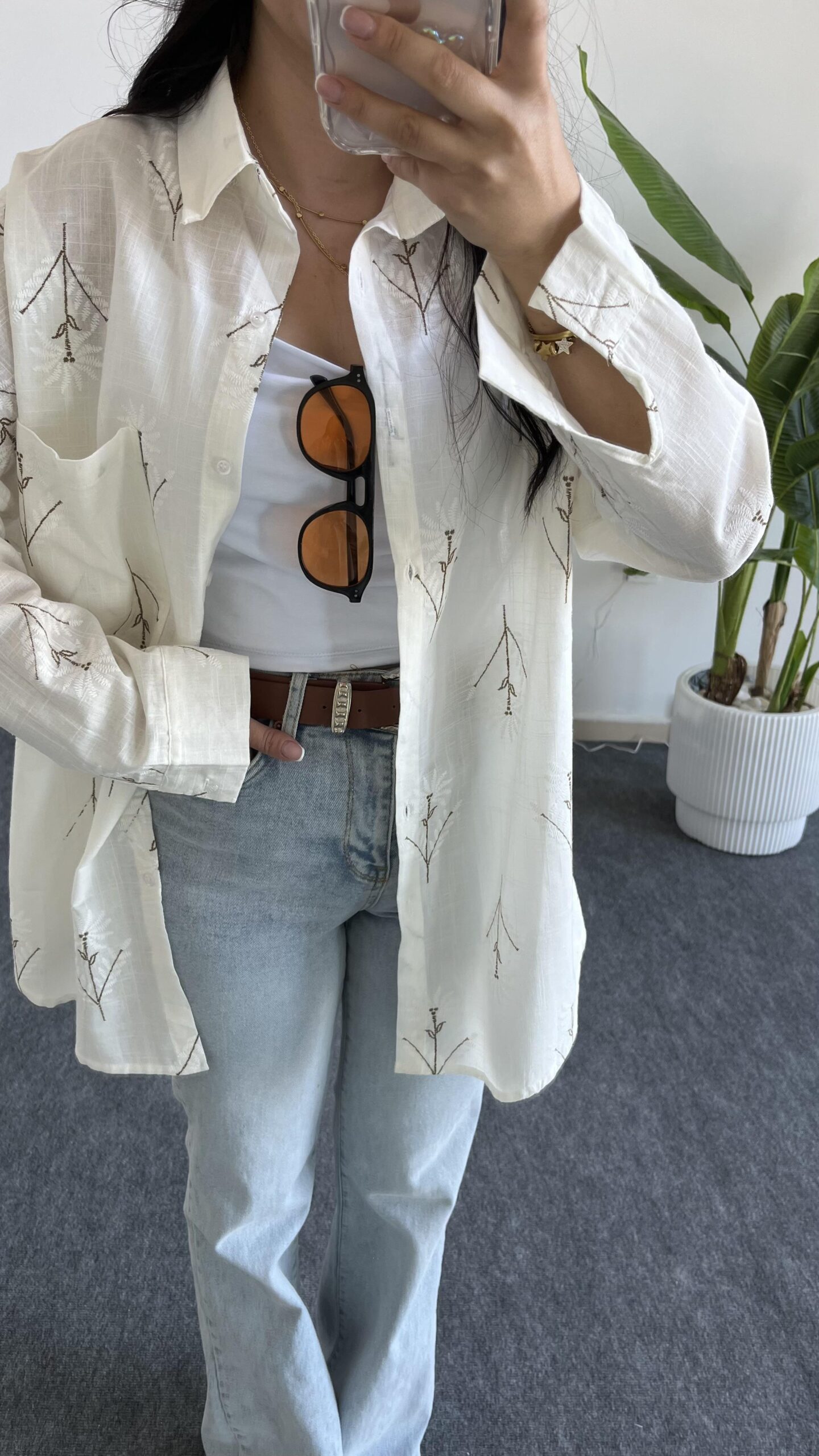 Nakışlı Keten Gömlek – Kahve