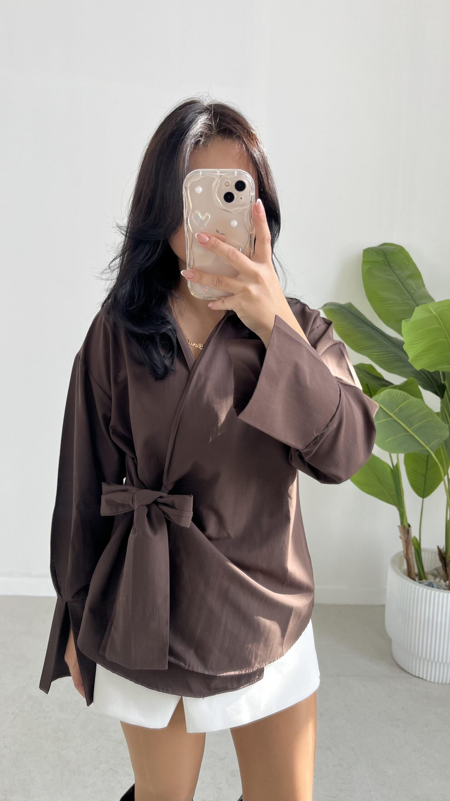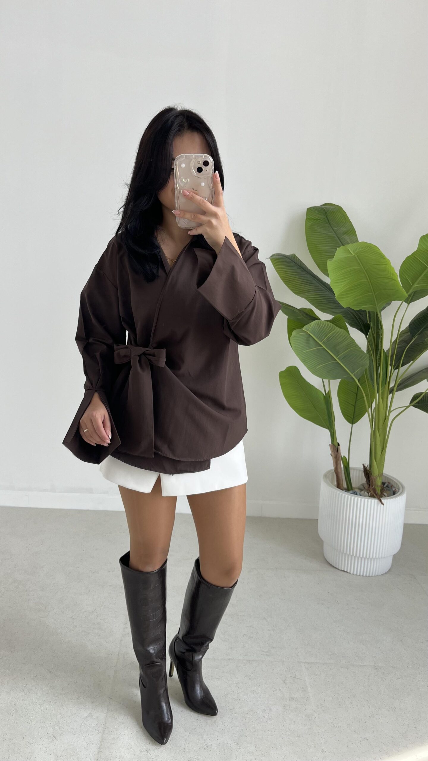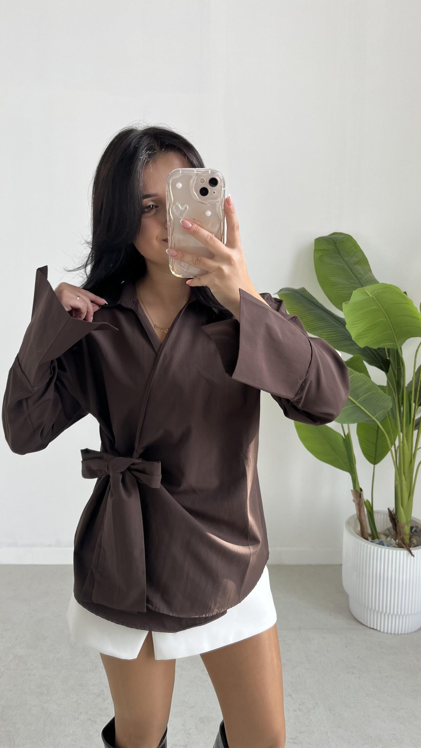 Velera Bağlamalı Gömlek – Kahve