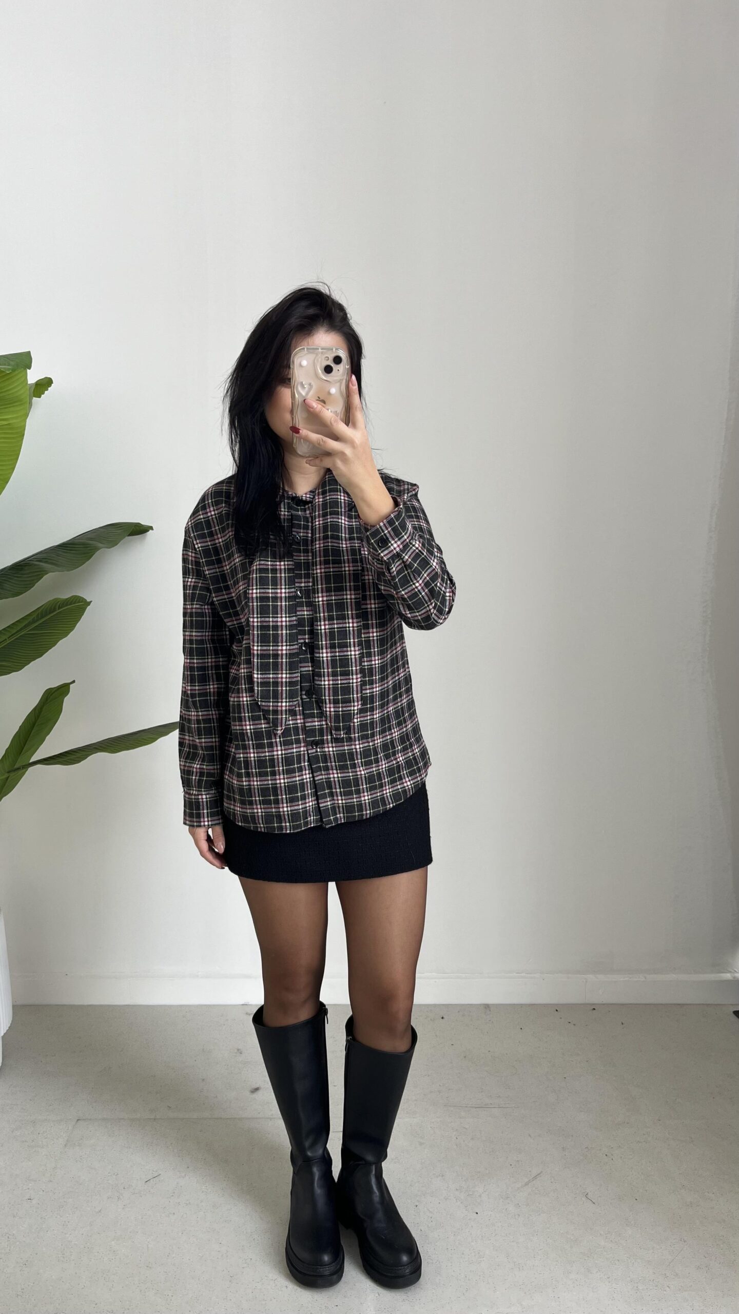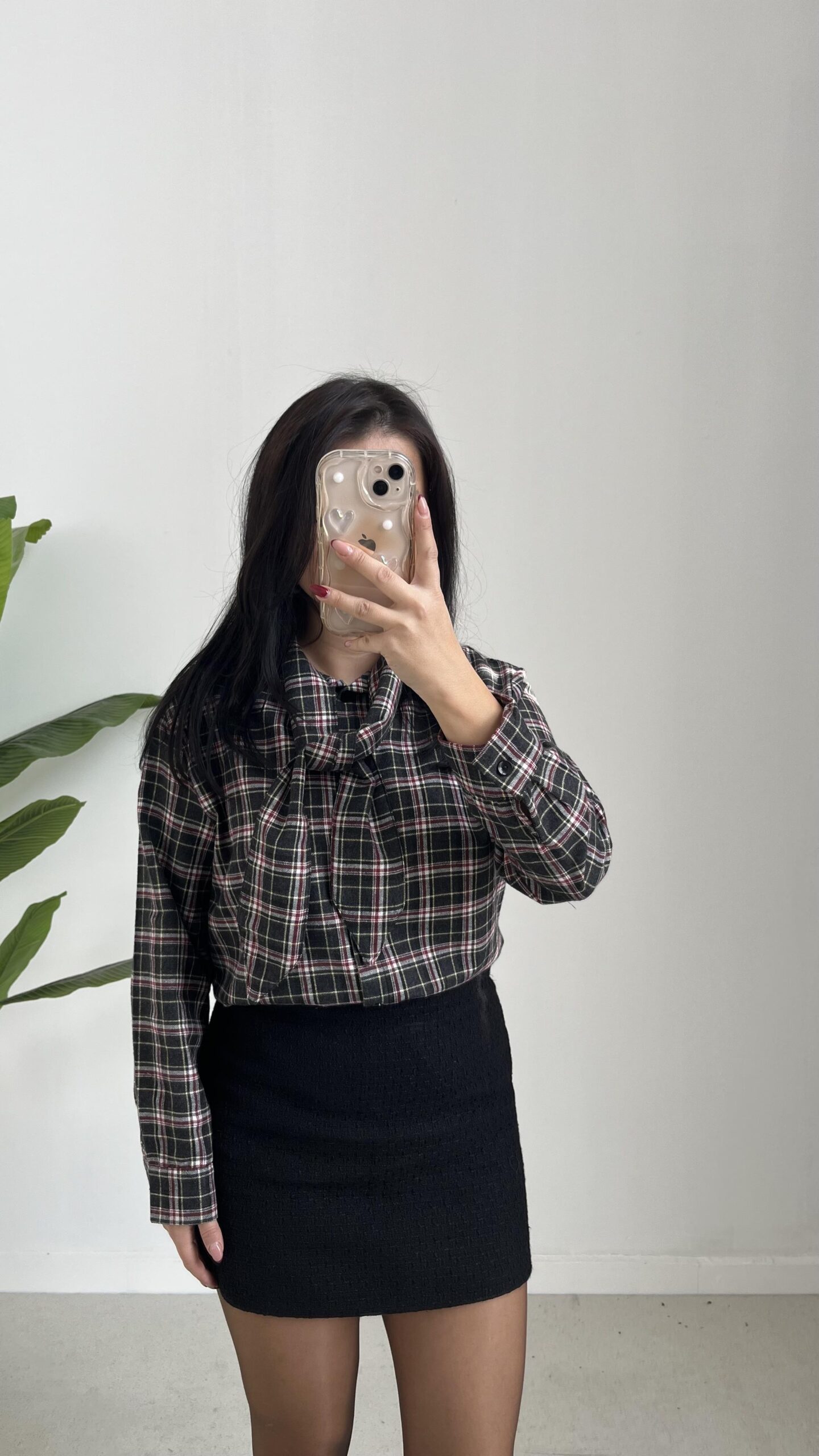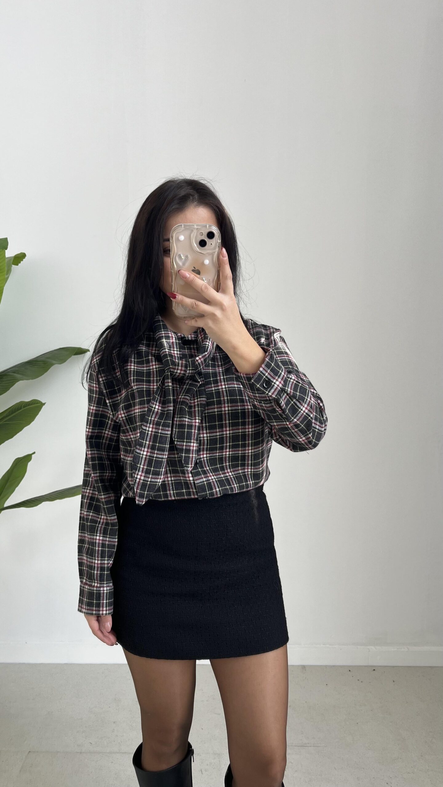 Yakası Fularlı Ekose Gömlek – Antrasit