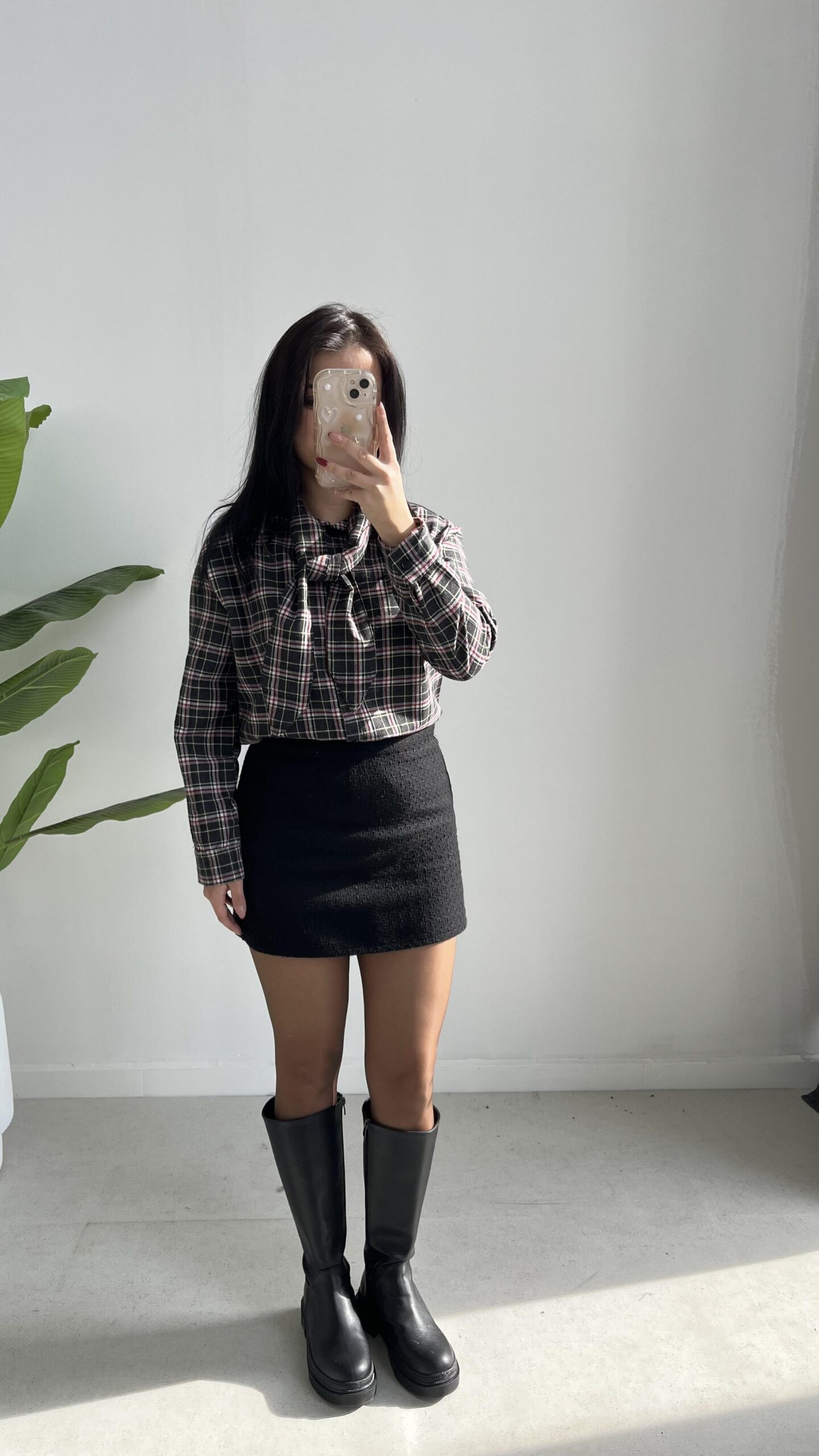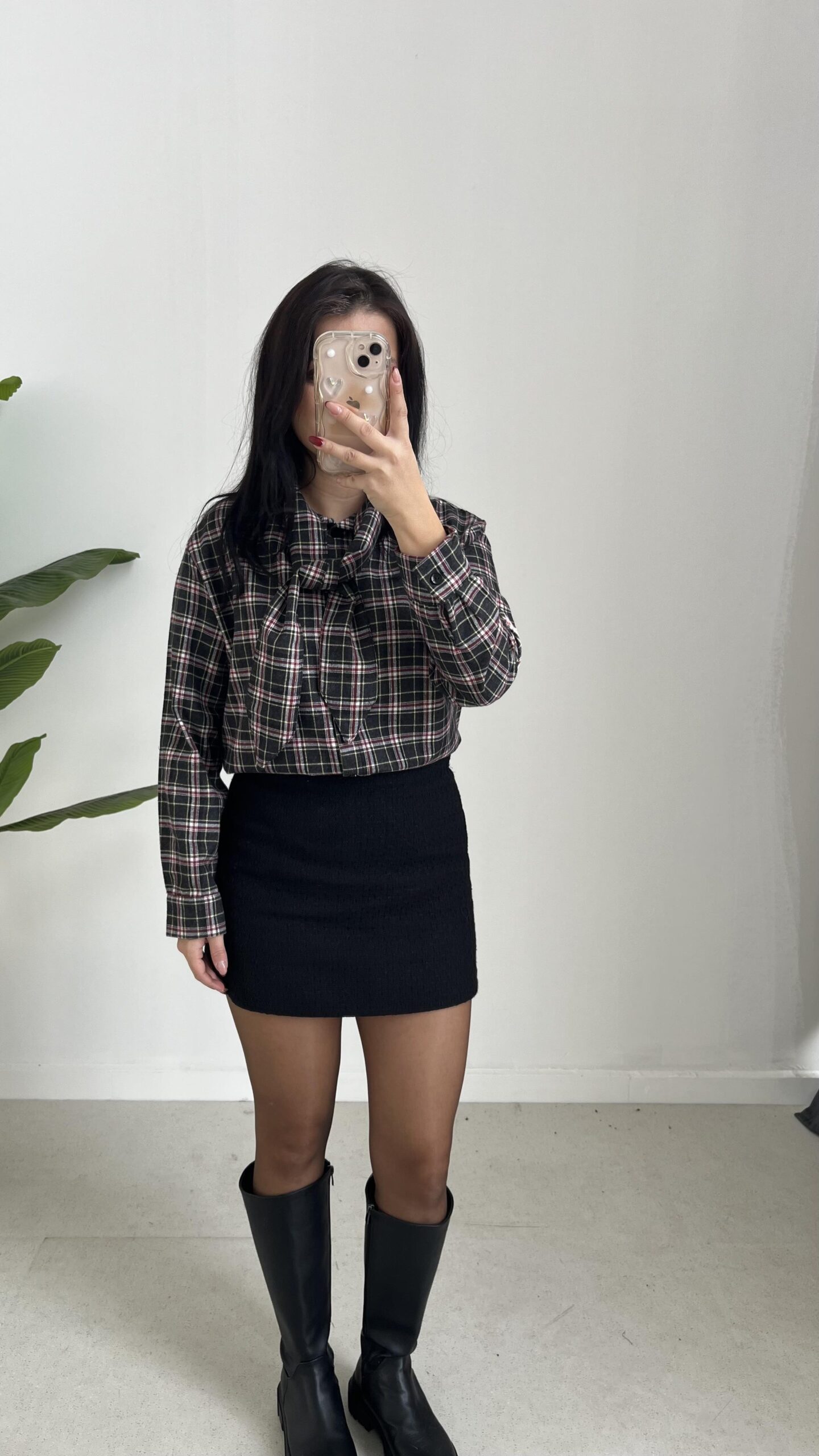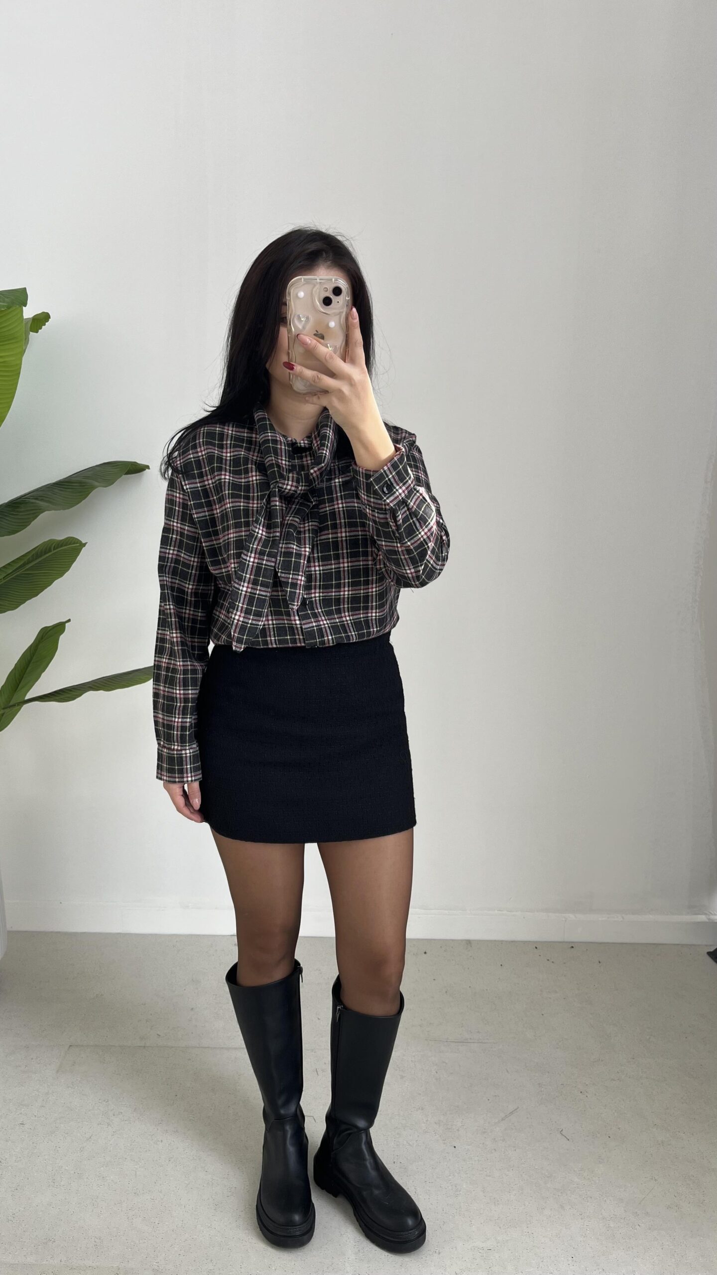 Yakası Fularlı Ekose Gömlek – Antrasit