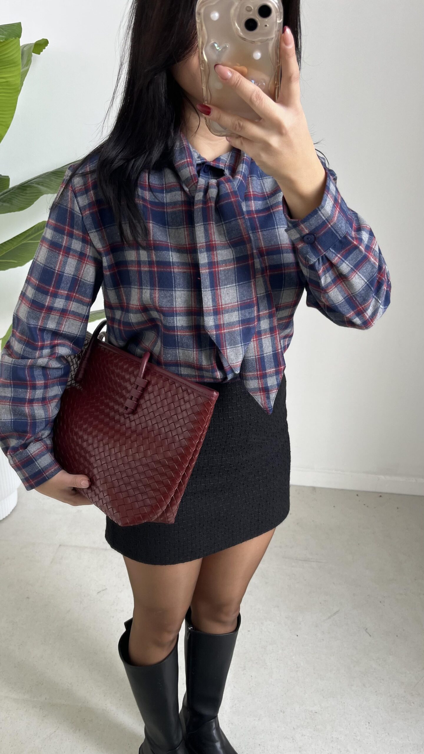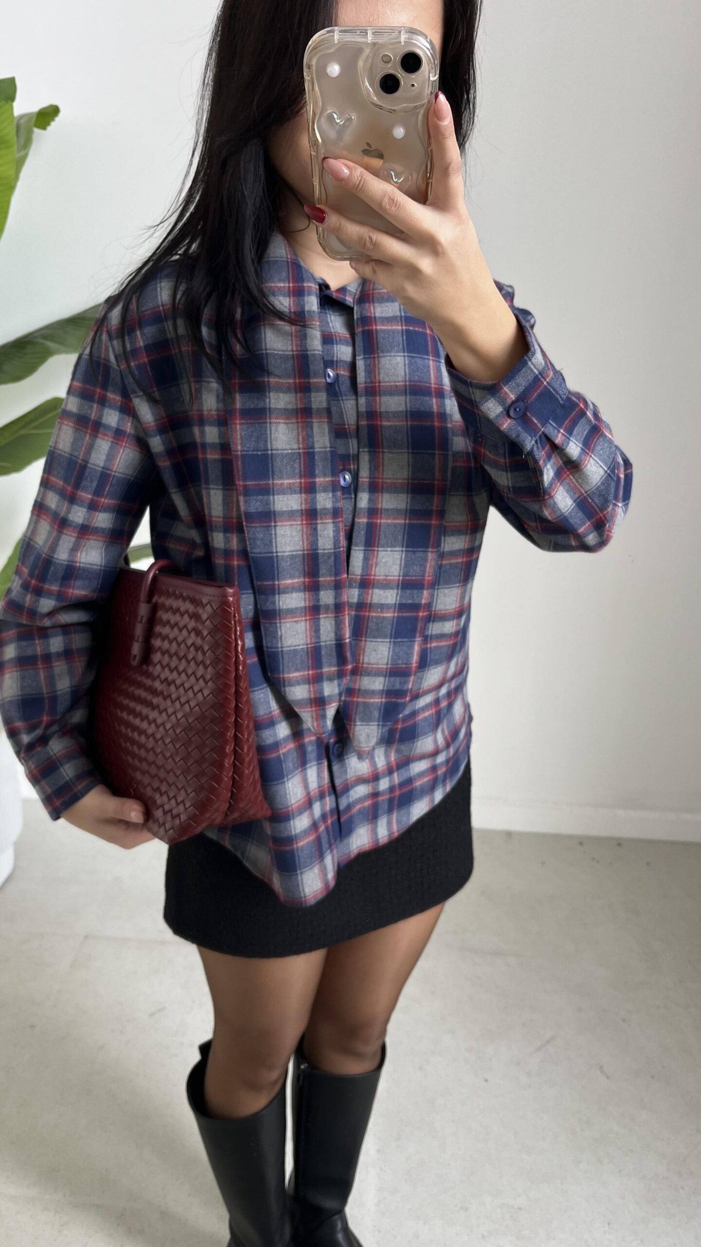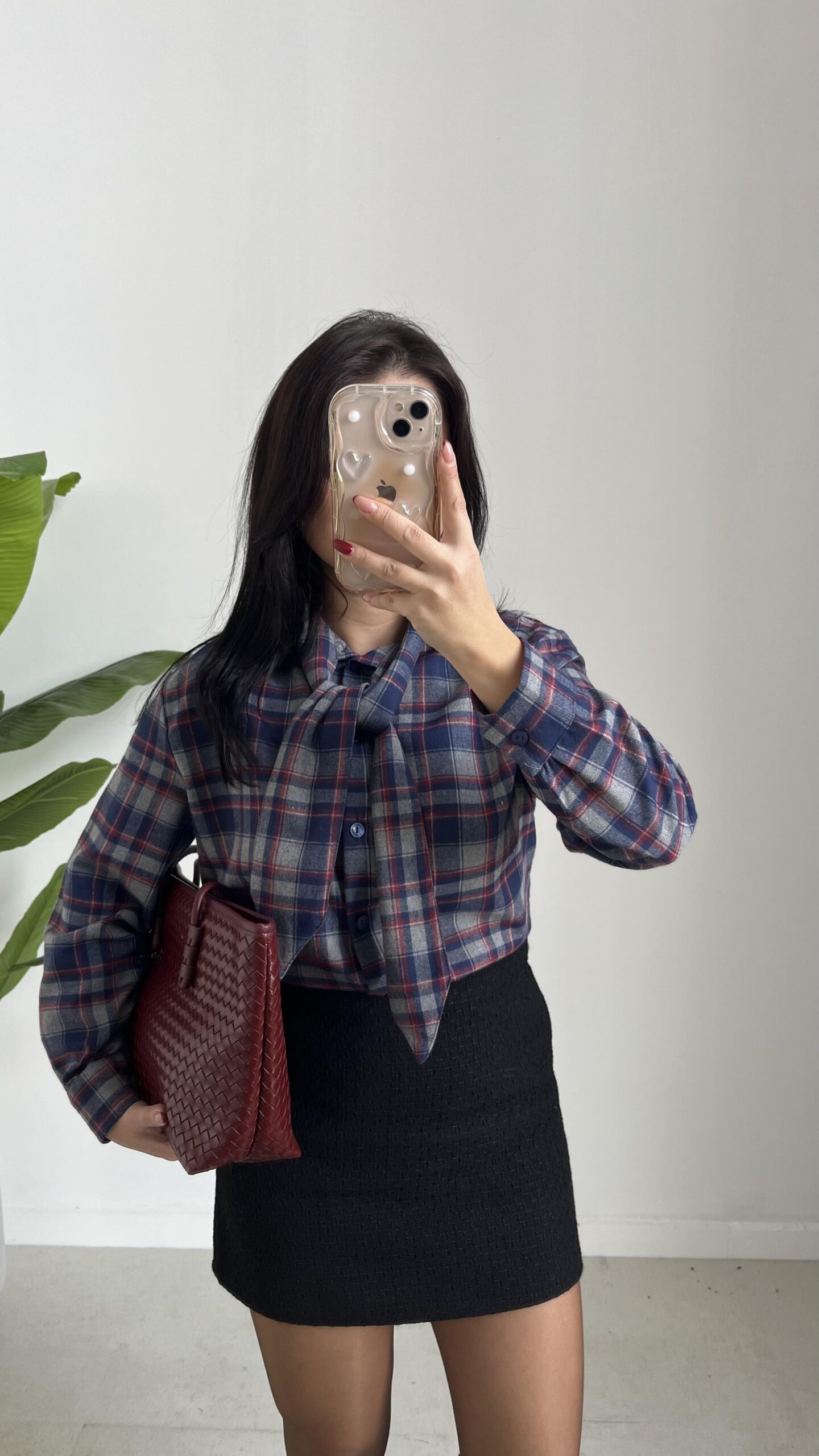 Yakası Fularlı Ekose Gömlek – Lacivert