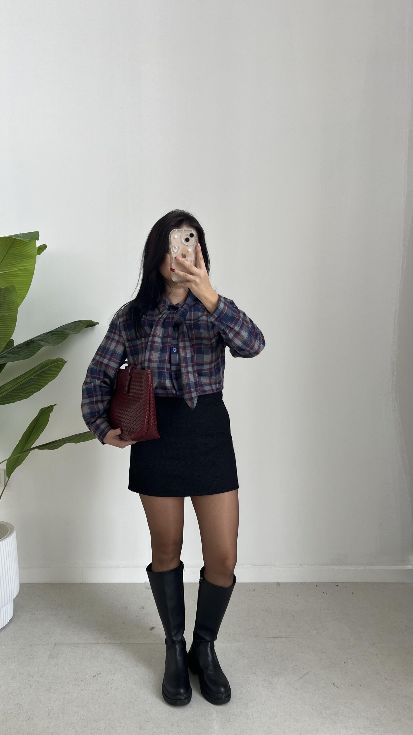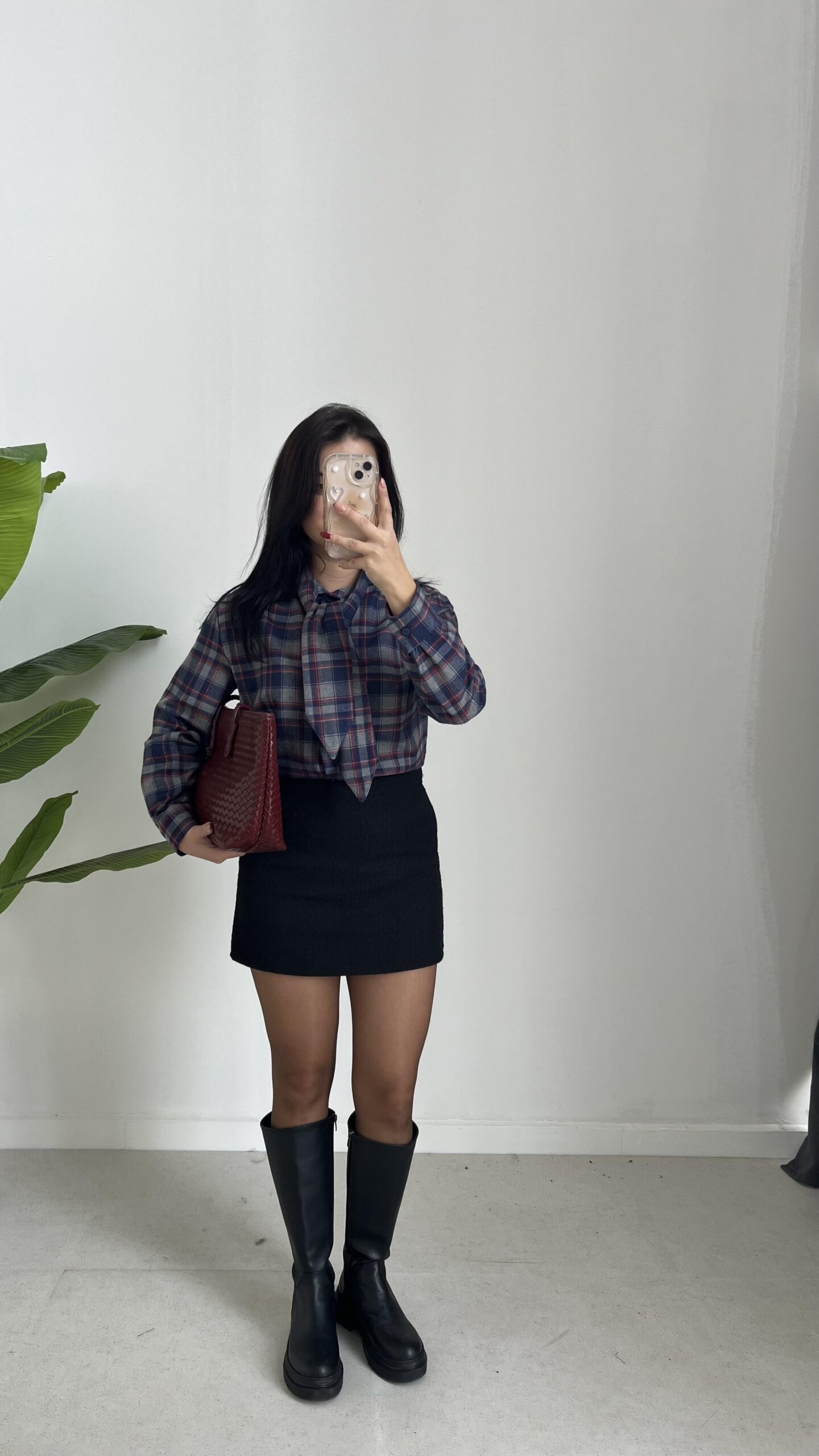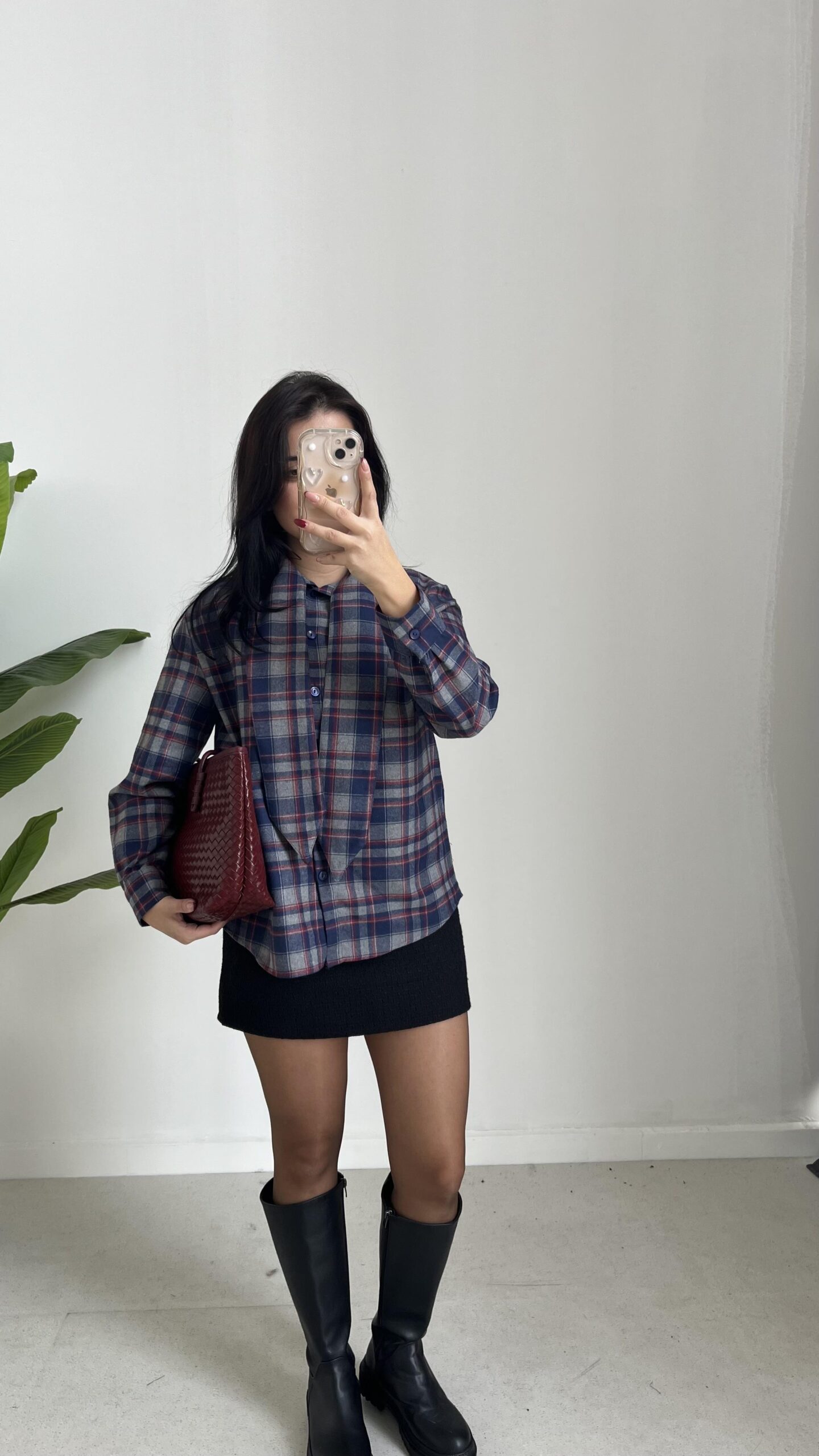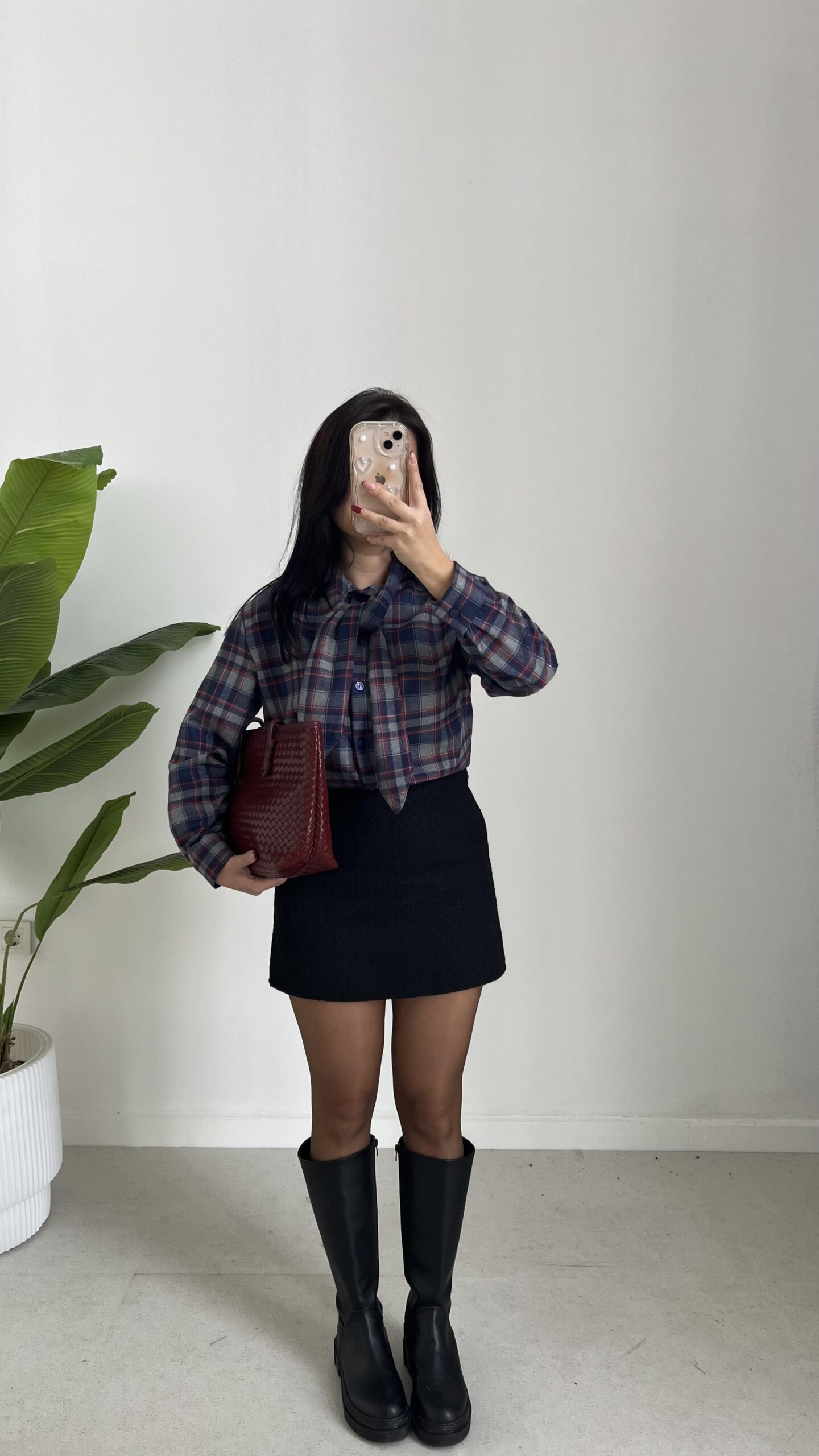 Yakası Fularlı Ekose Gömlek – Lacivert