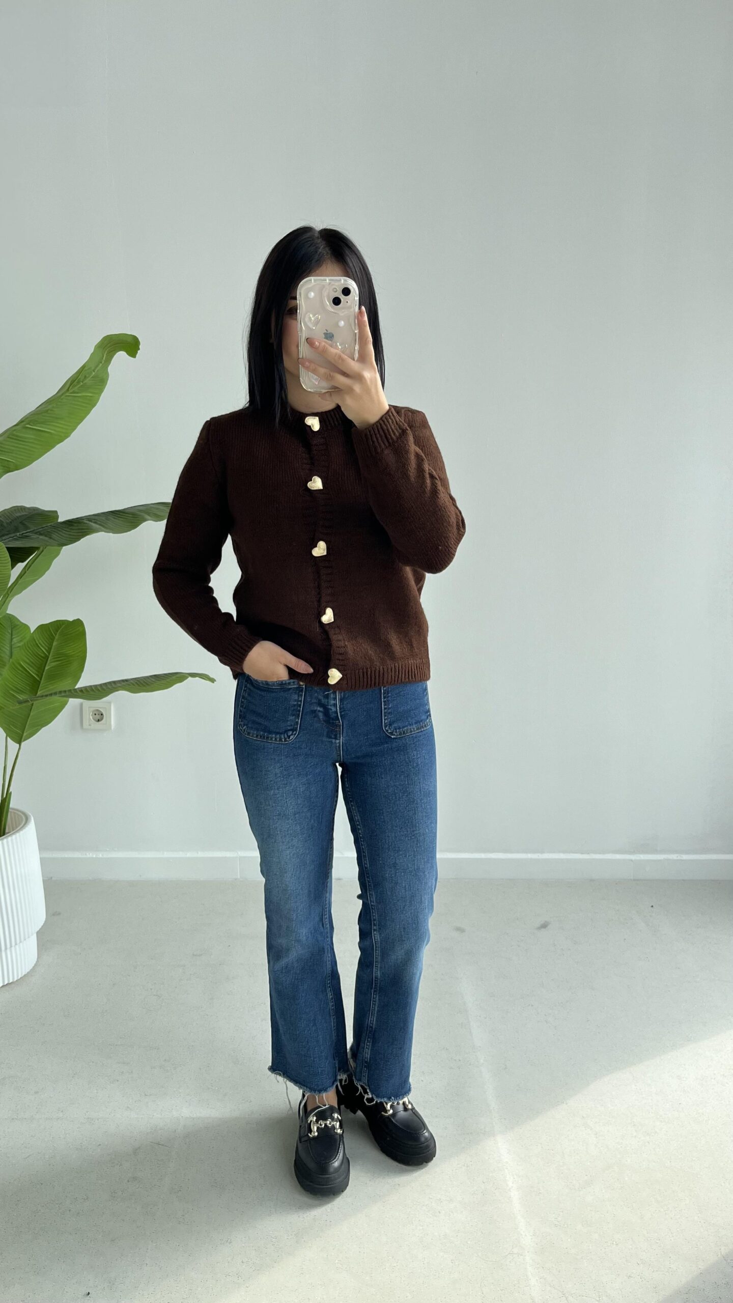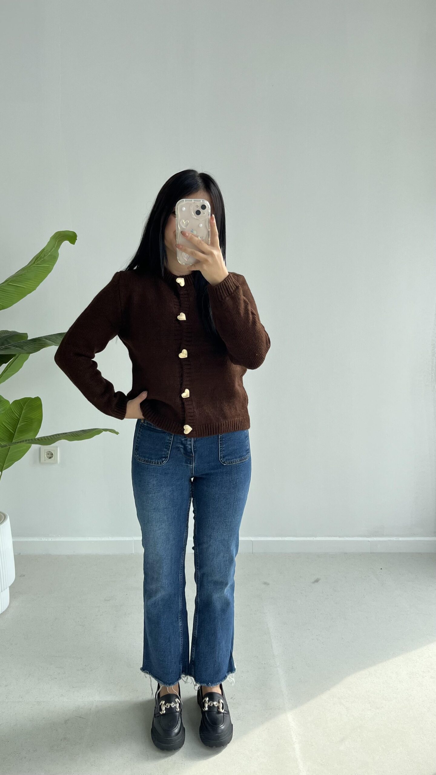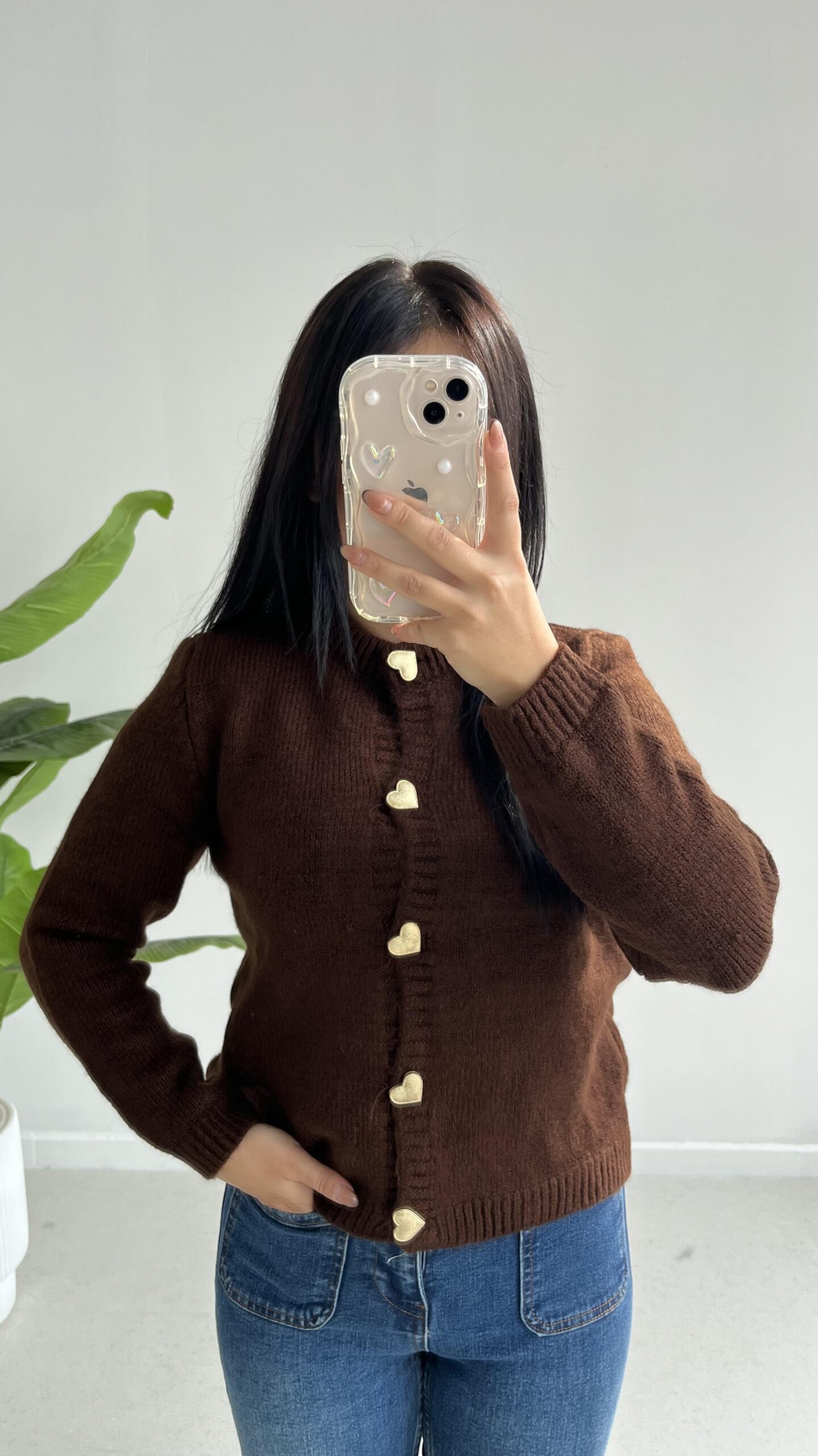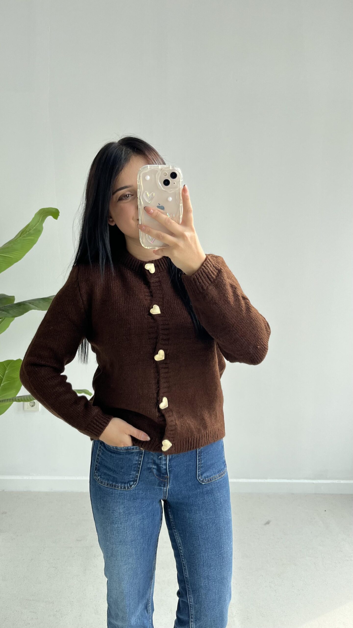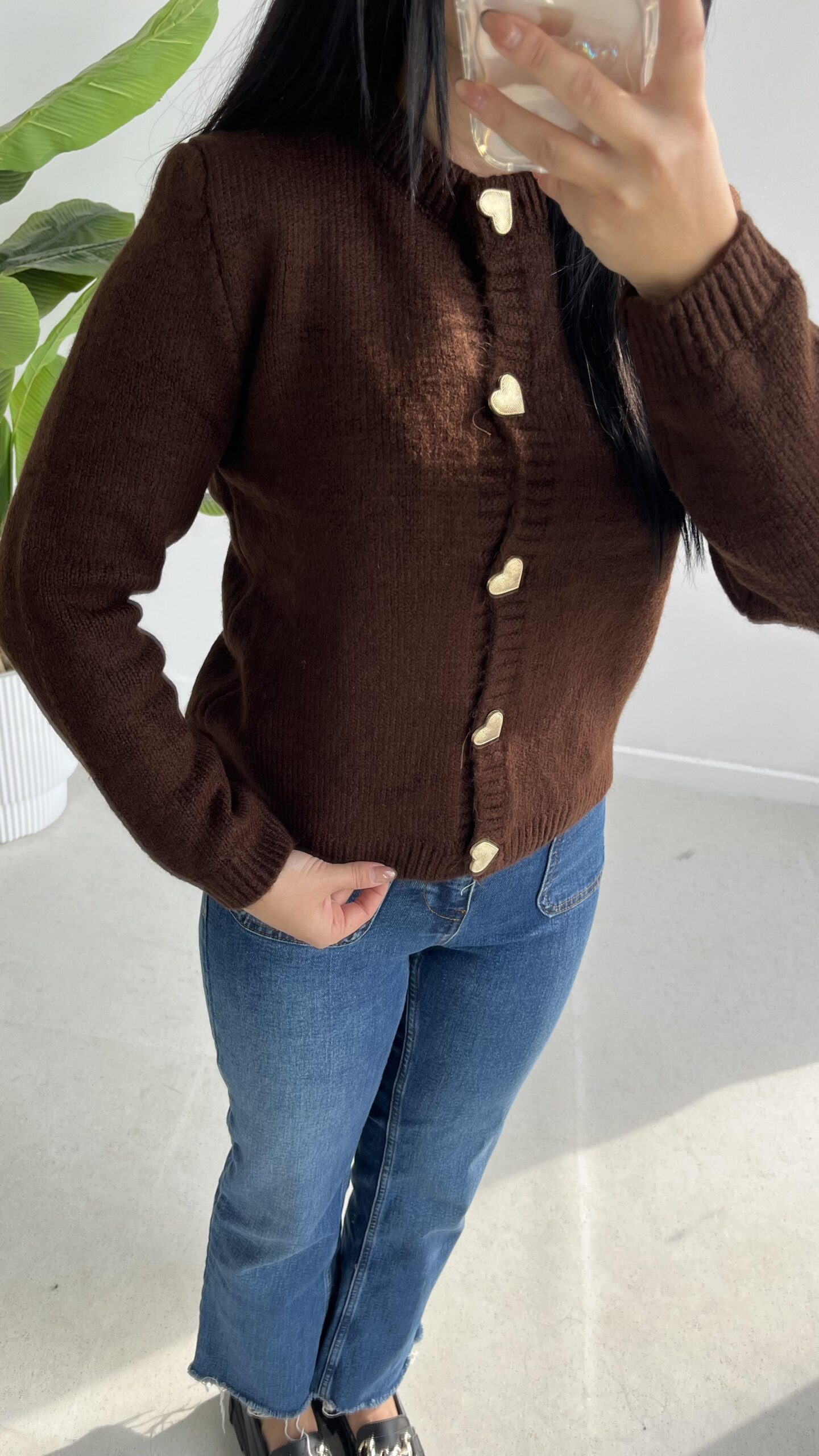 Gold Kalp Düğmeli Triko Hırka – Acı Kahve