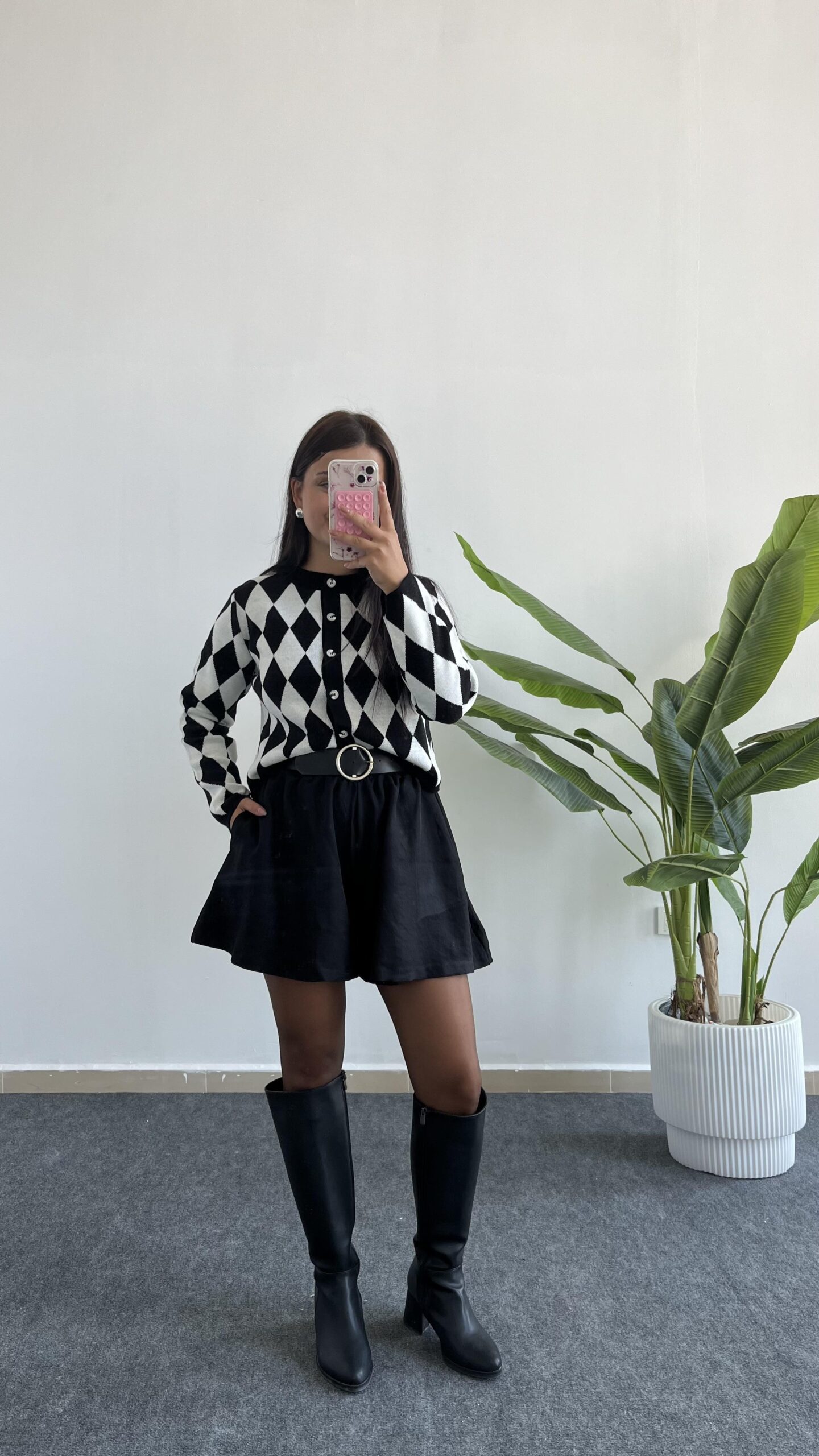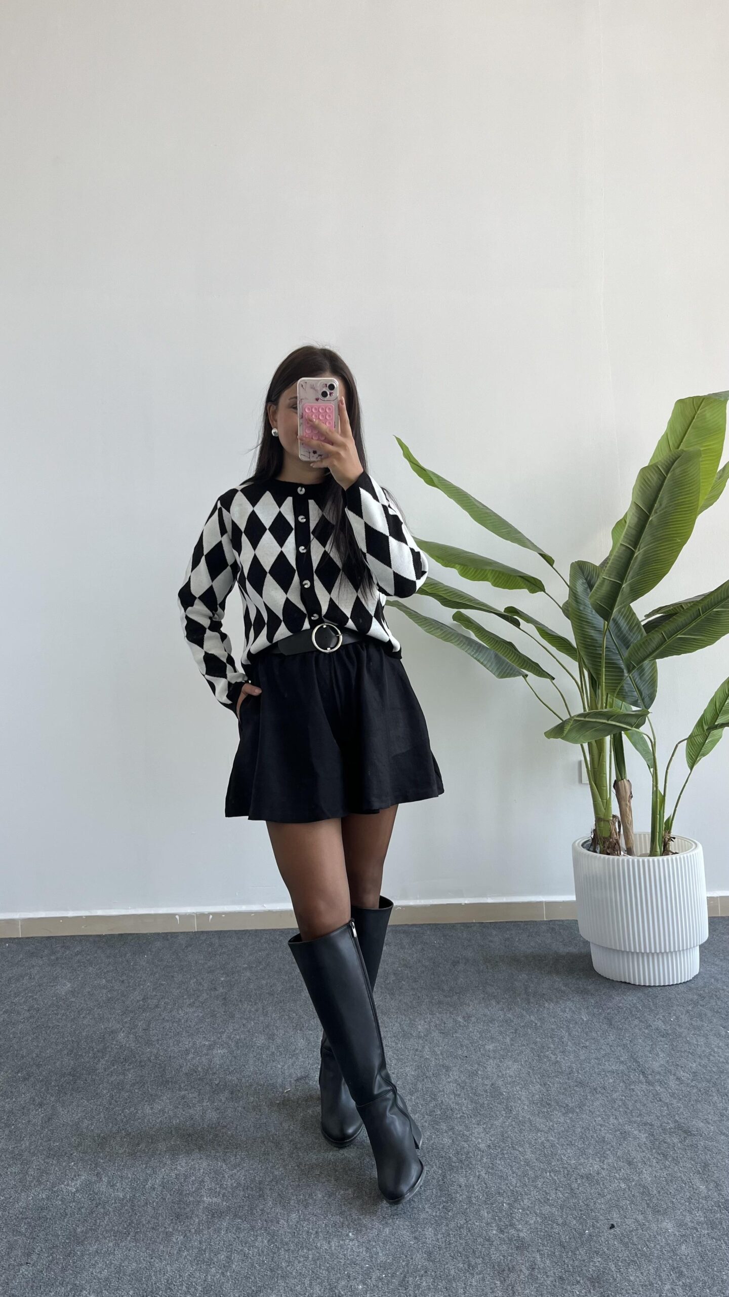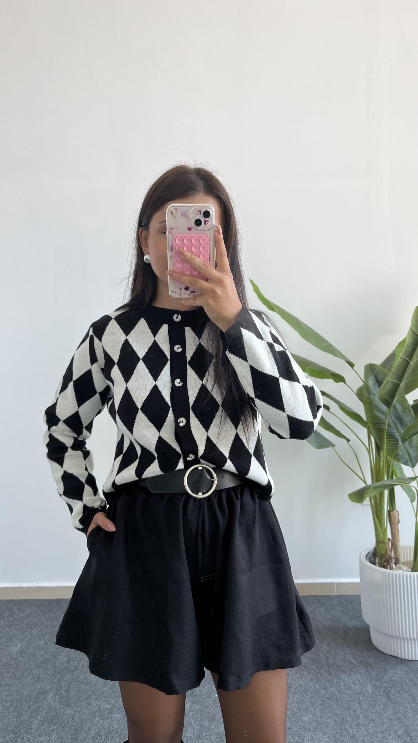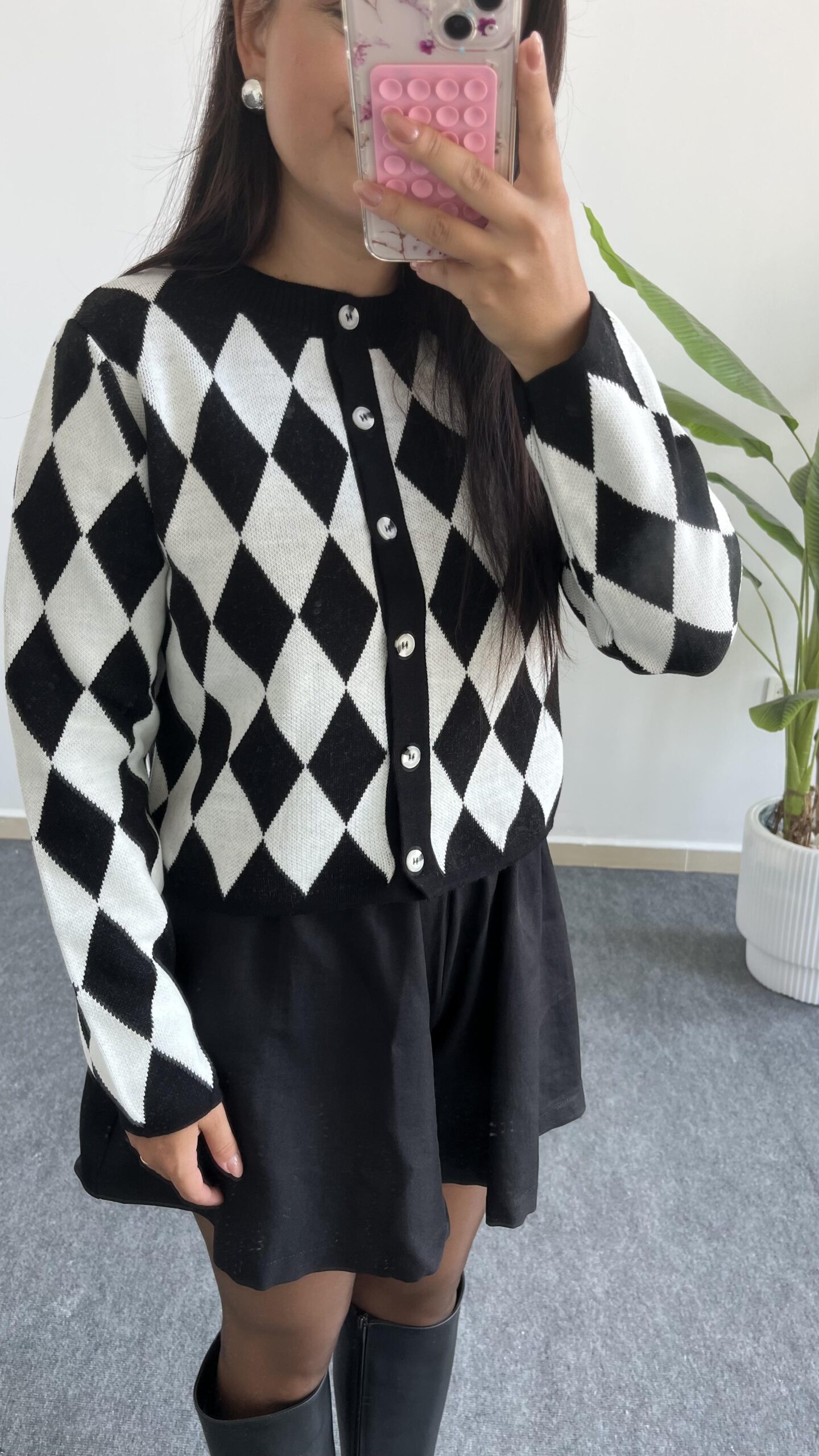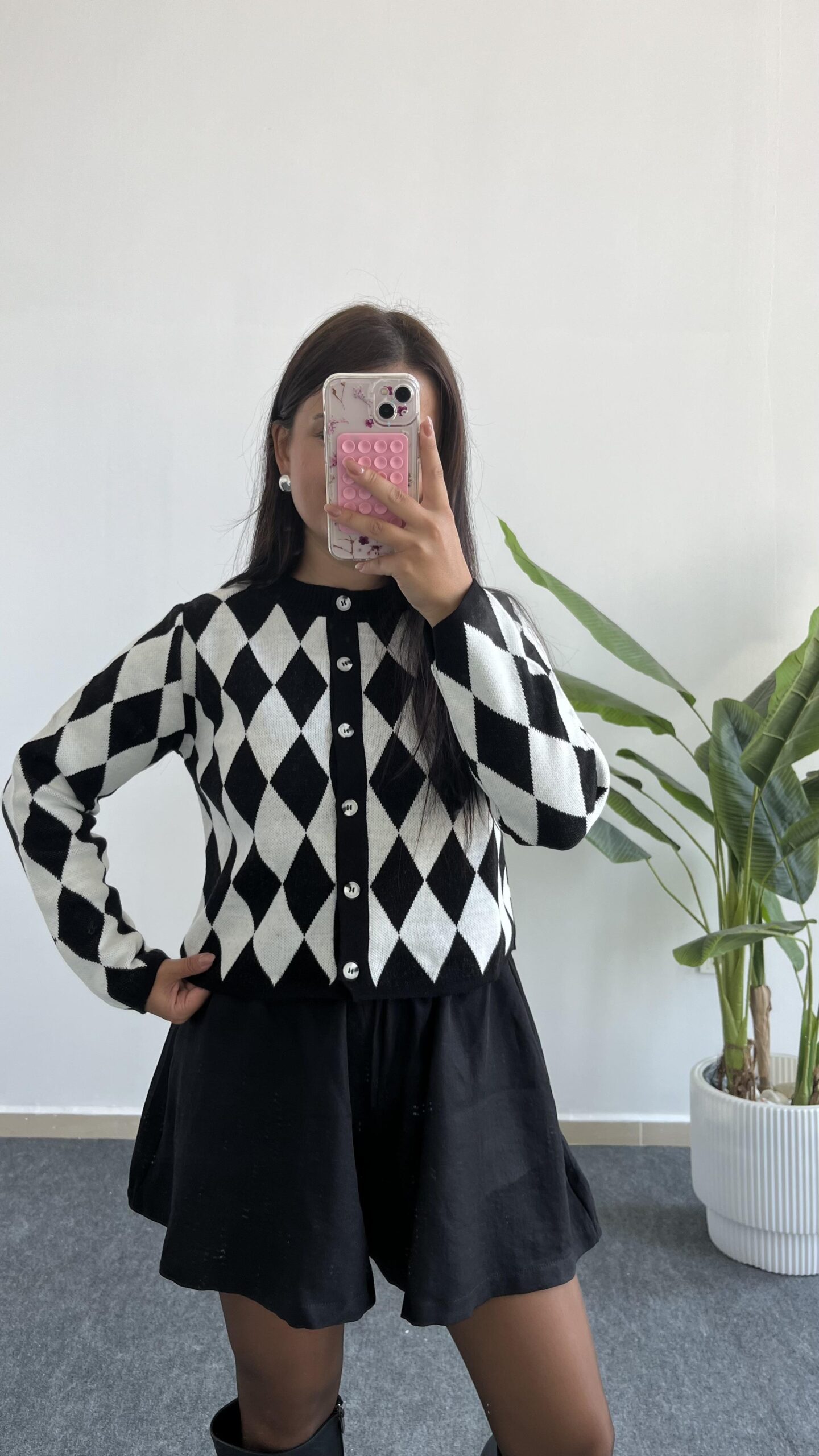 Olippe Baklava Desen Hırka- Siyah
