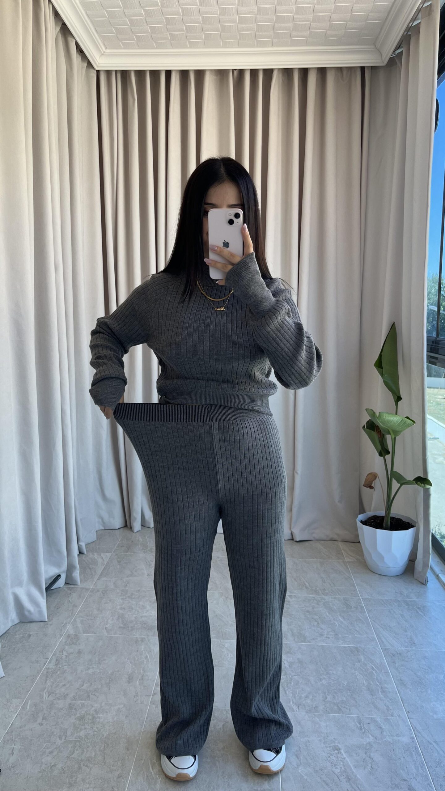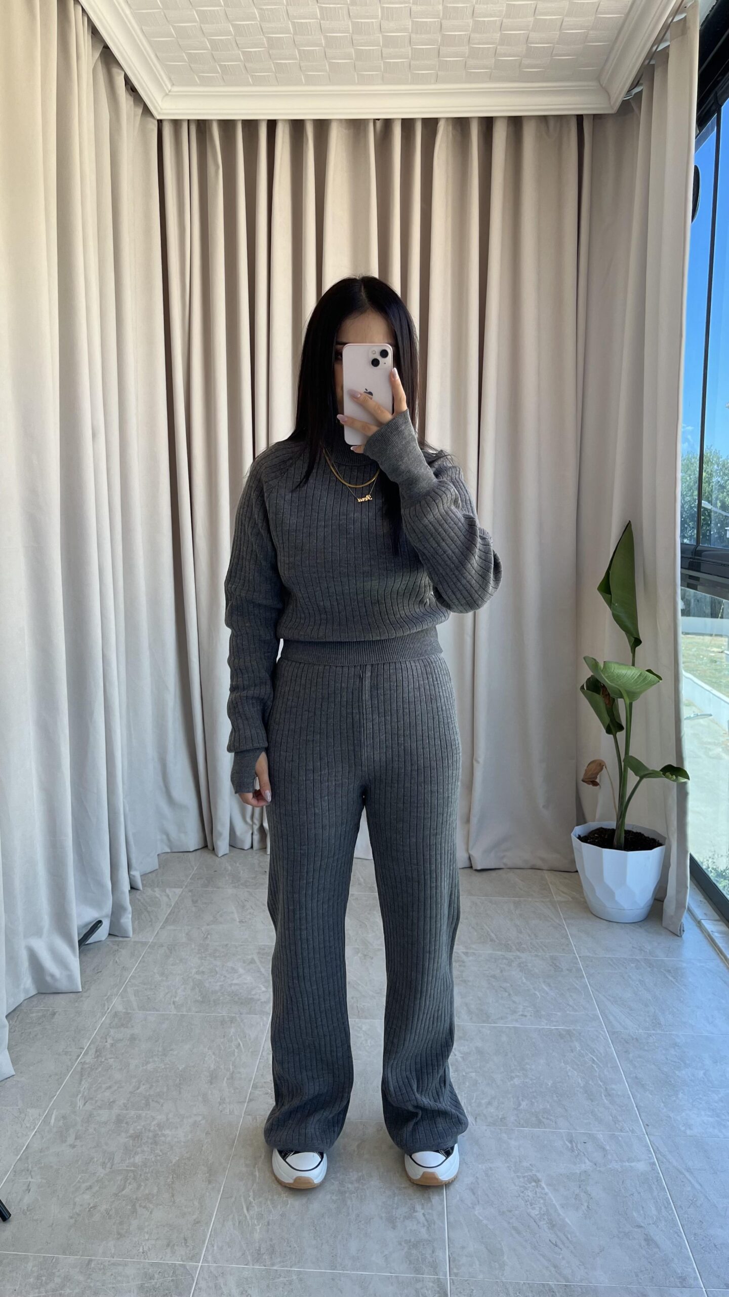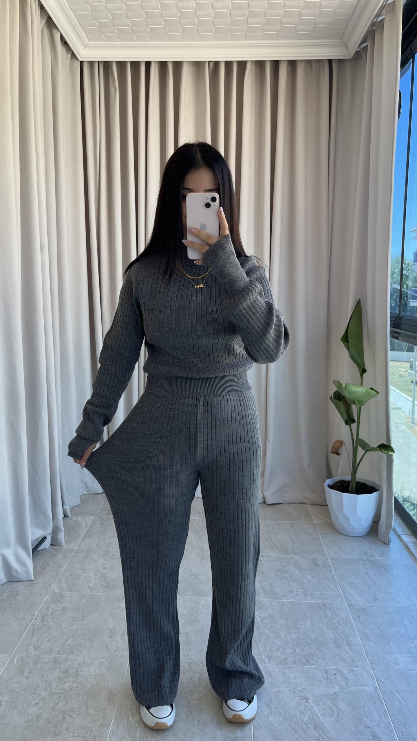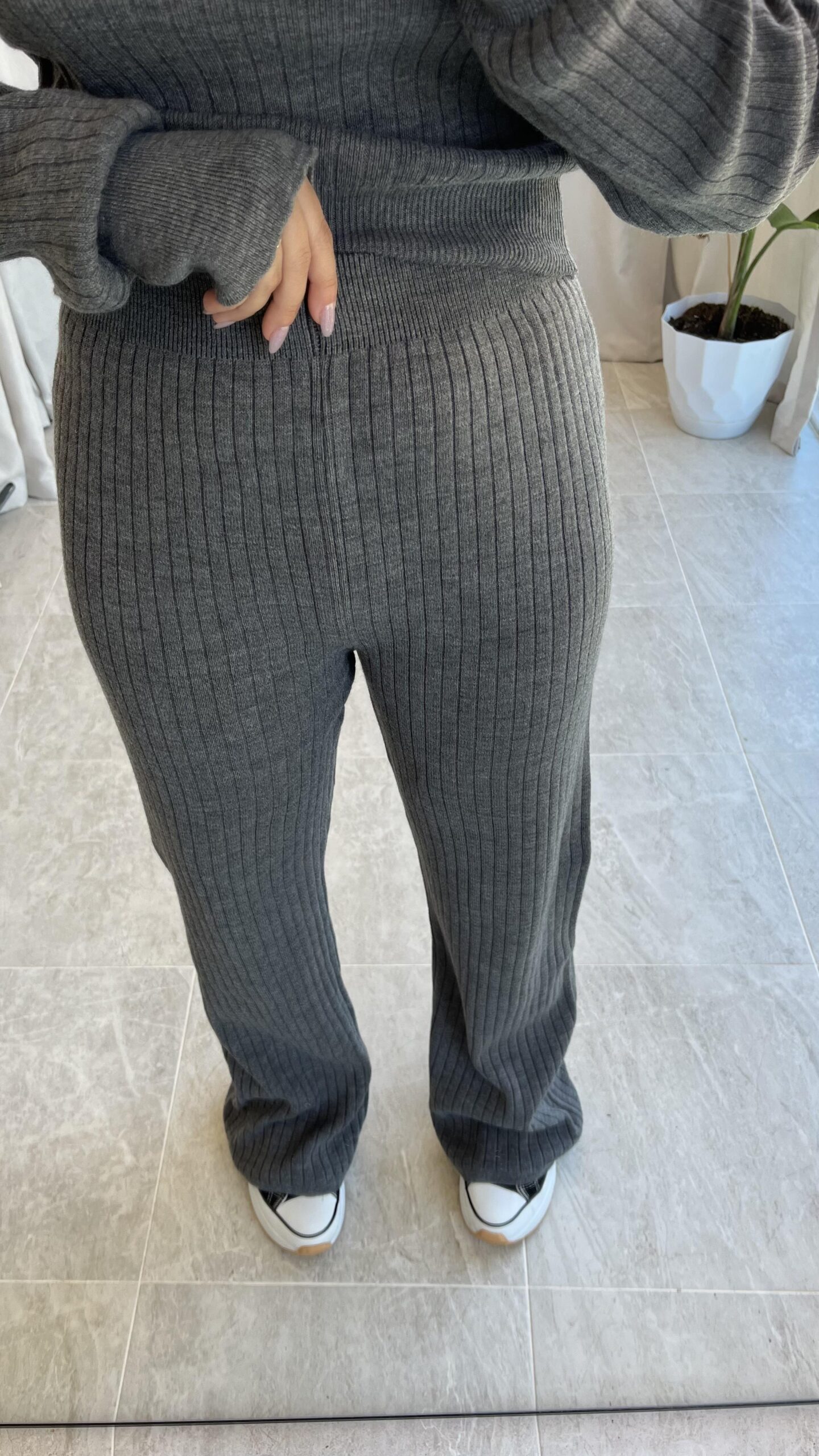 Gri Balıkçı Yaka Fitilli Triko Takım