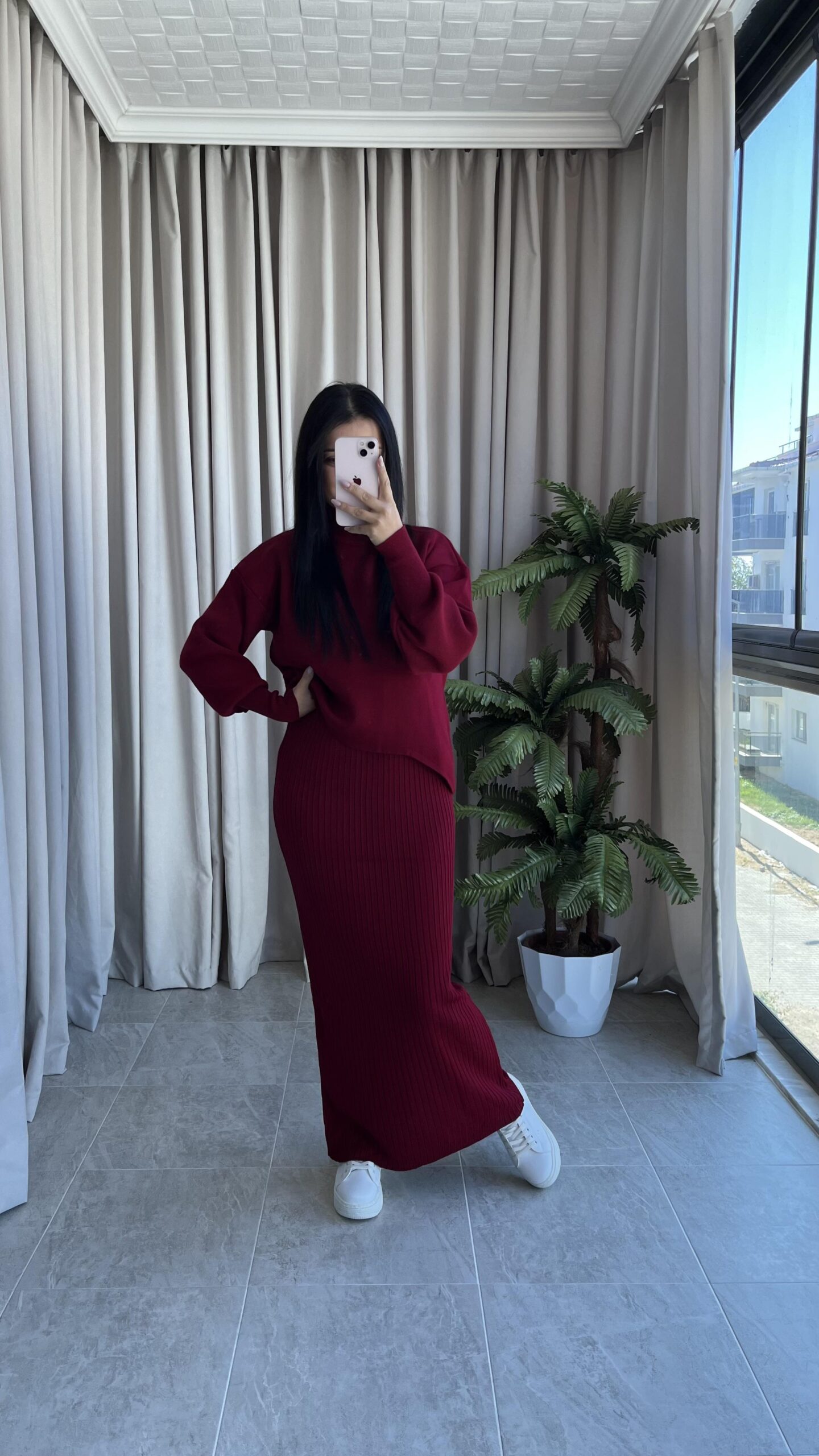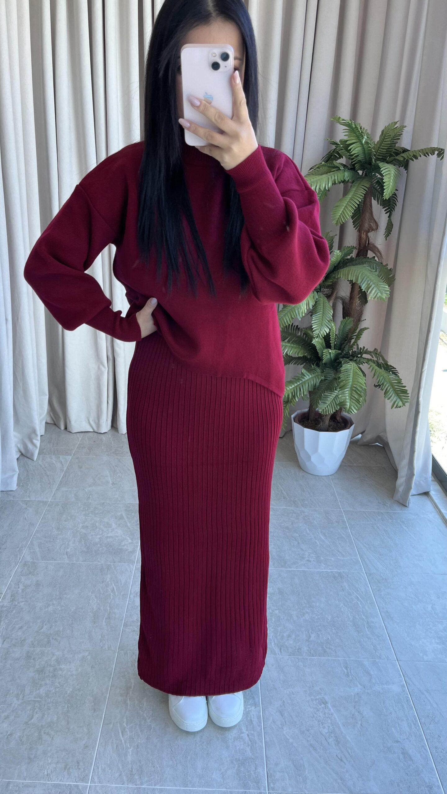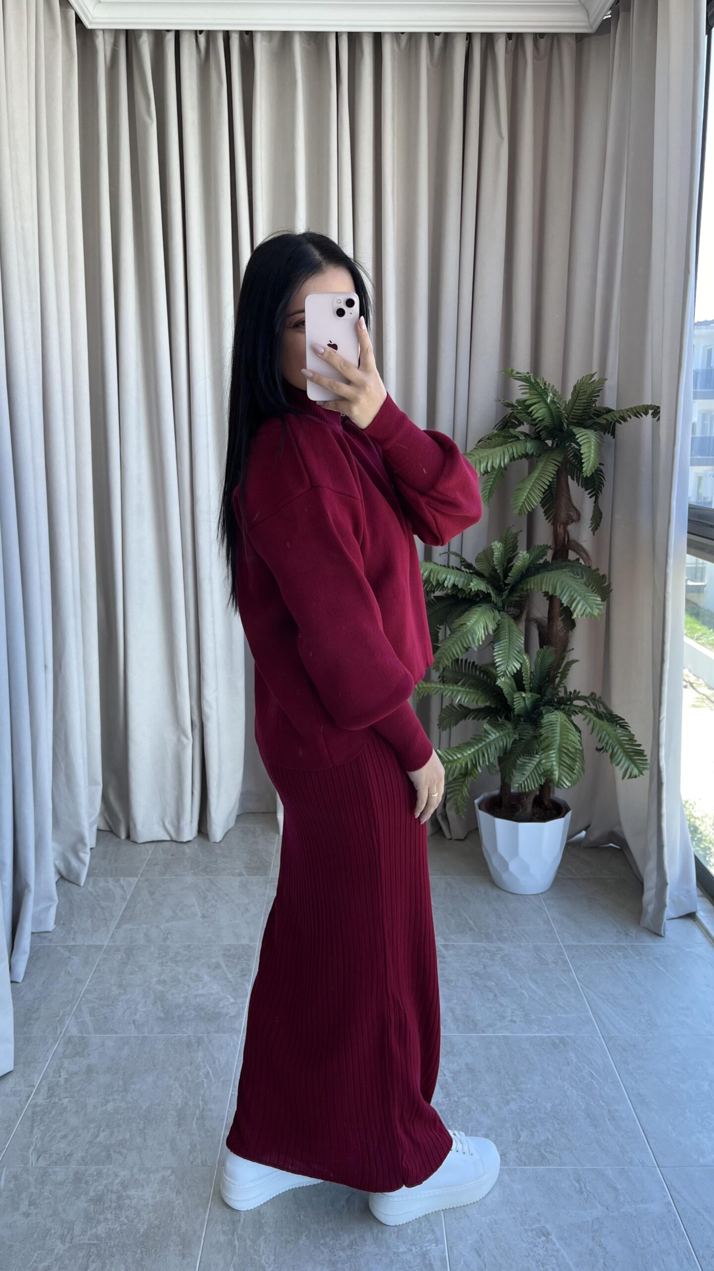 Luya Bordo Triko Elbise Kazak -180 Takım