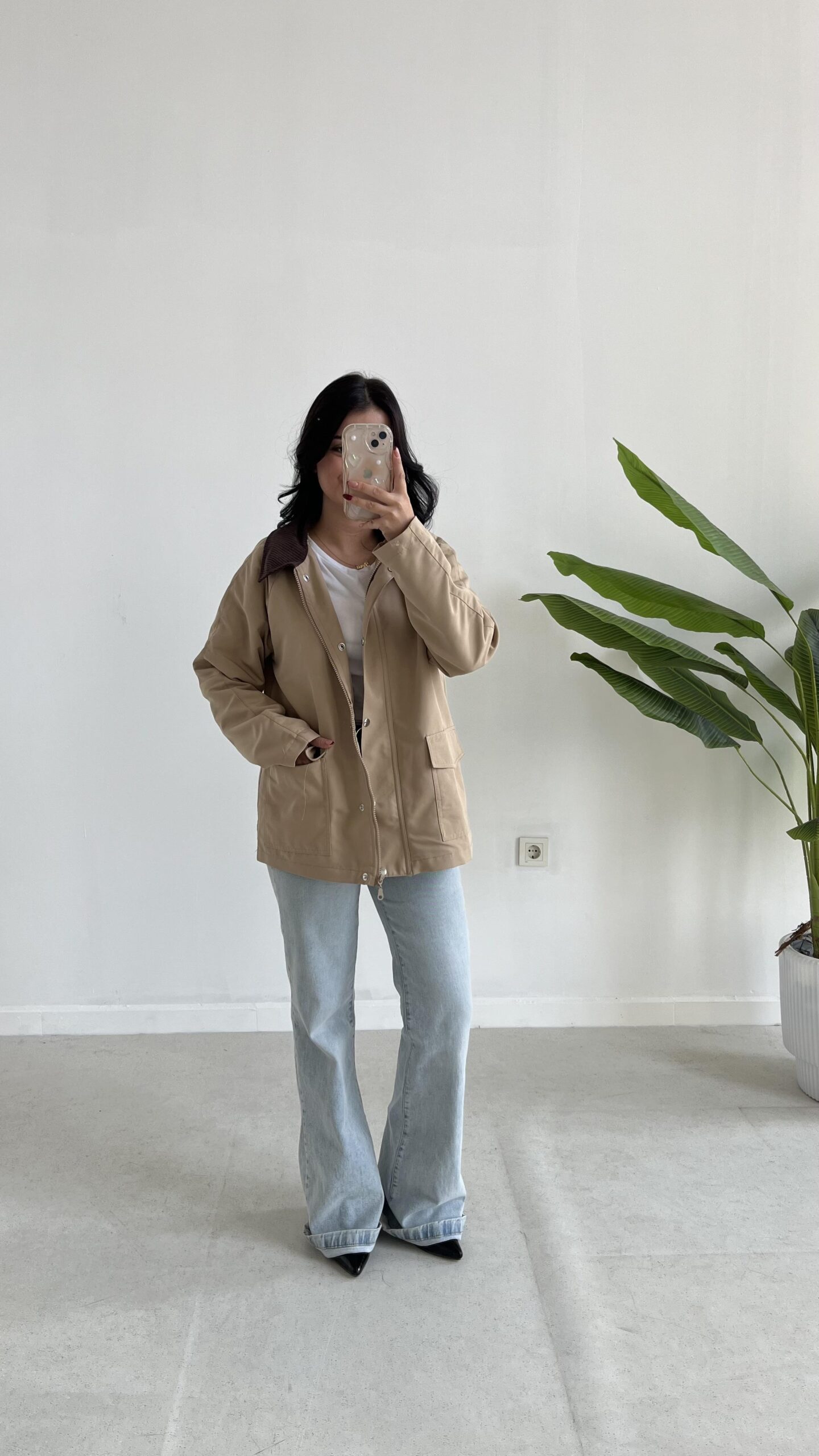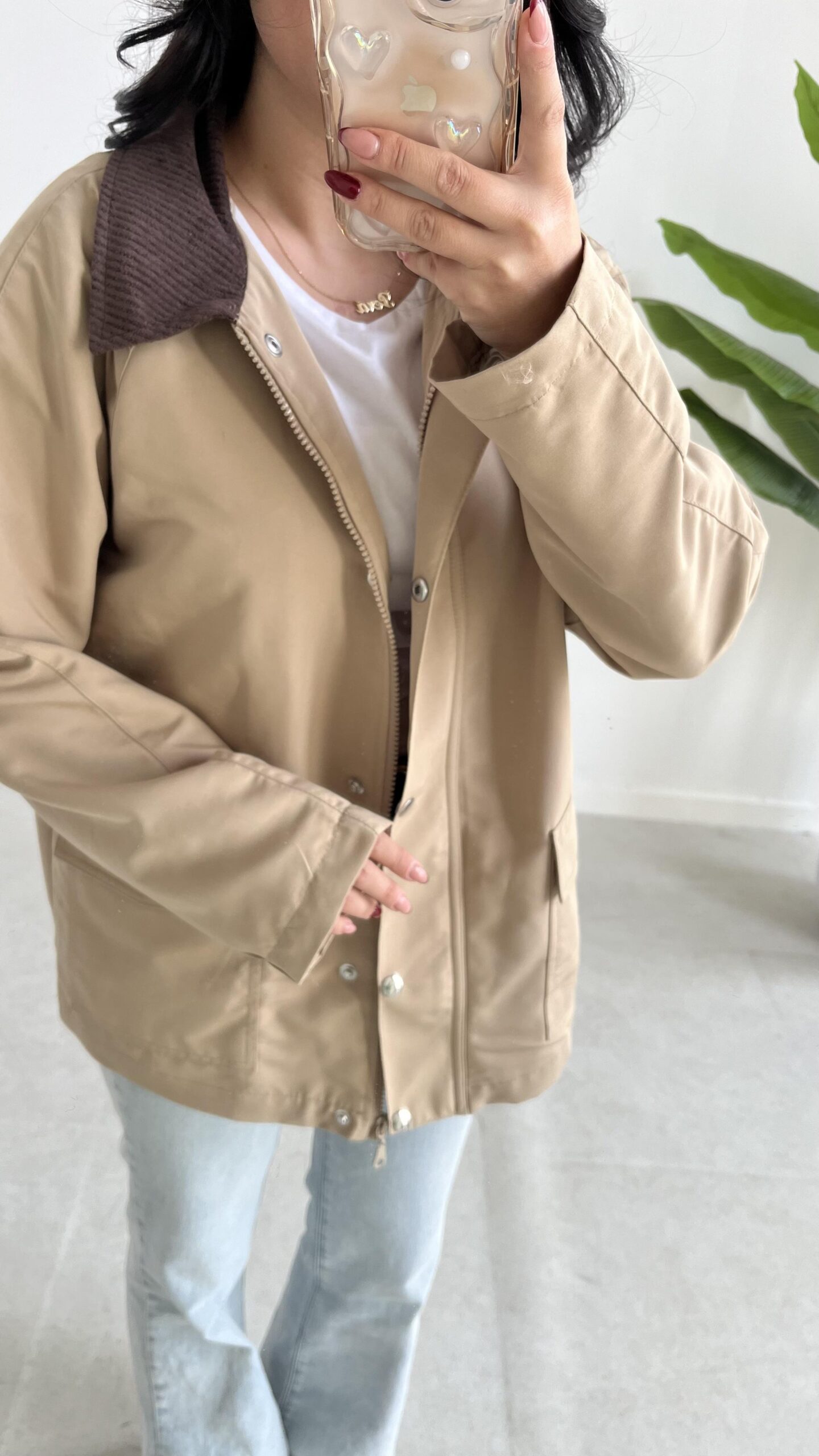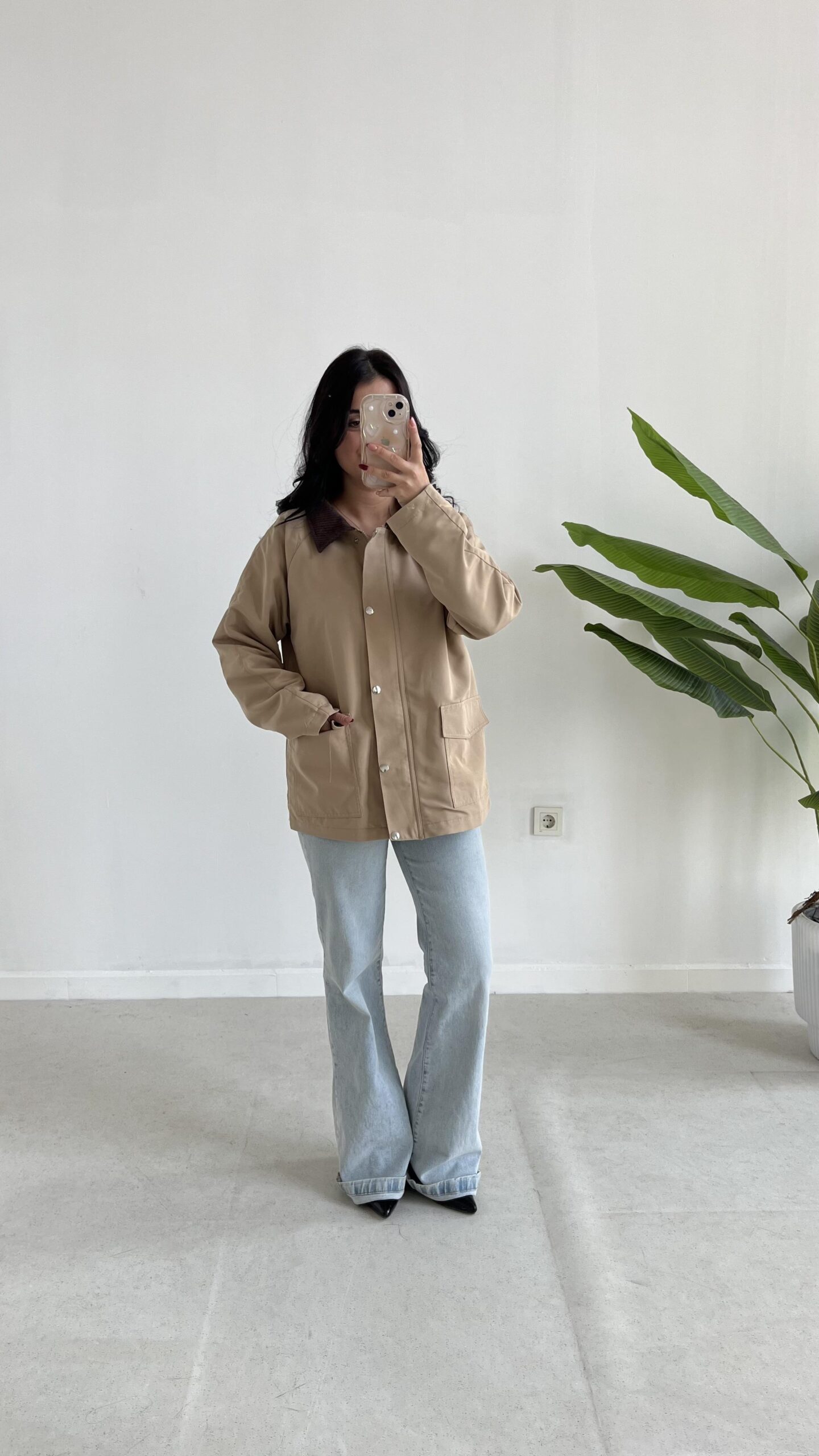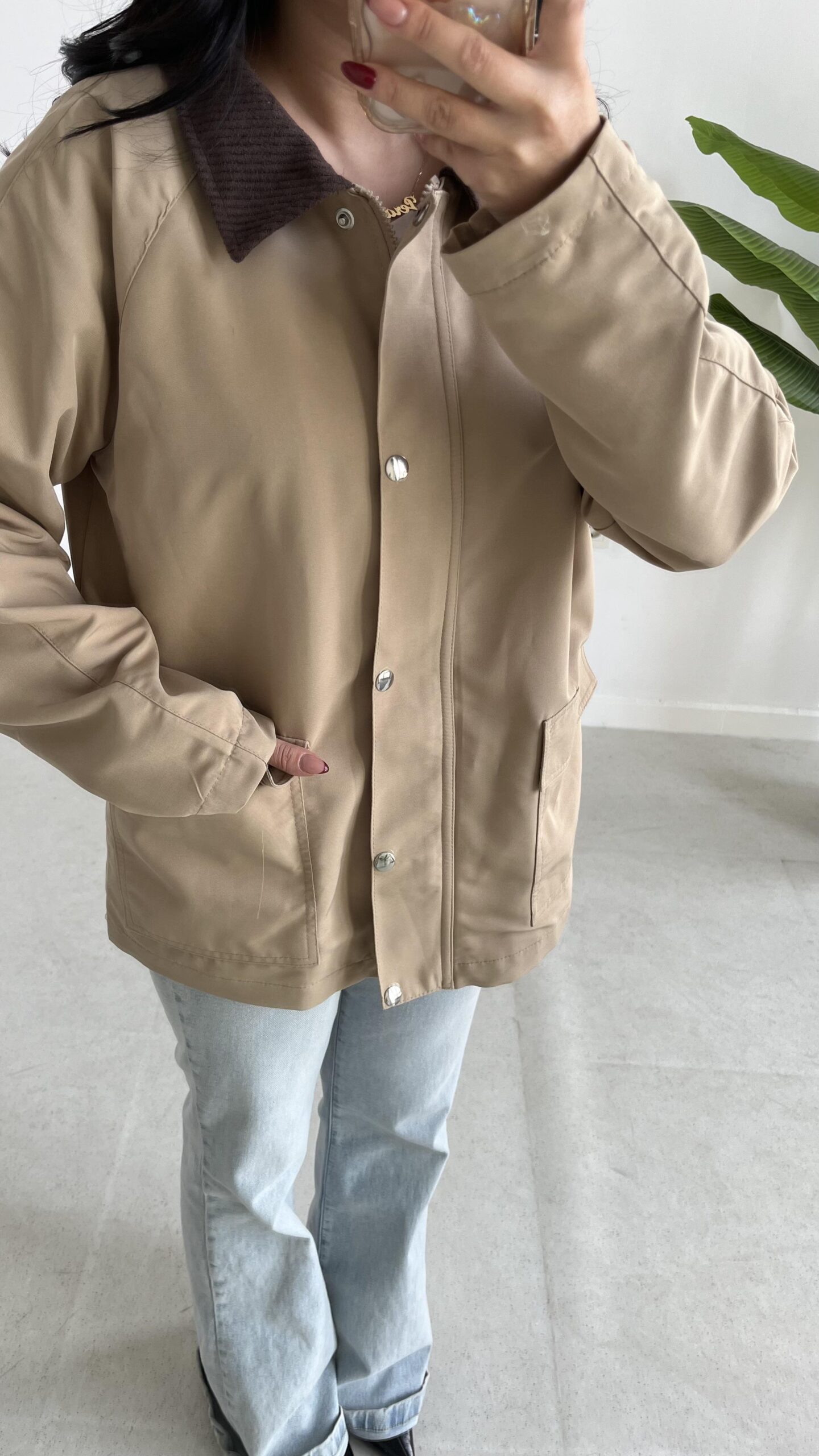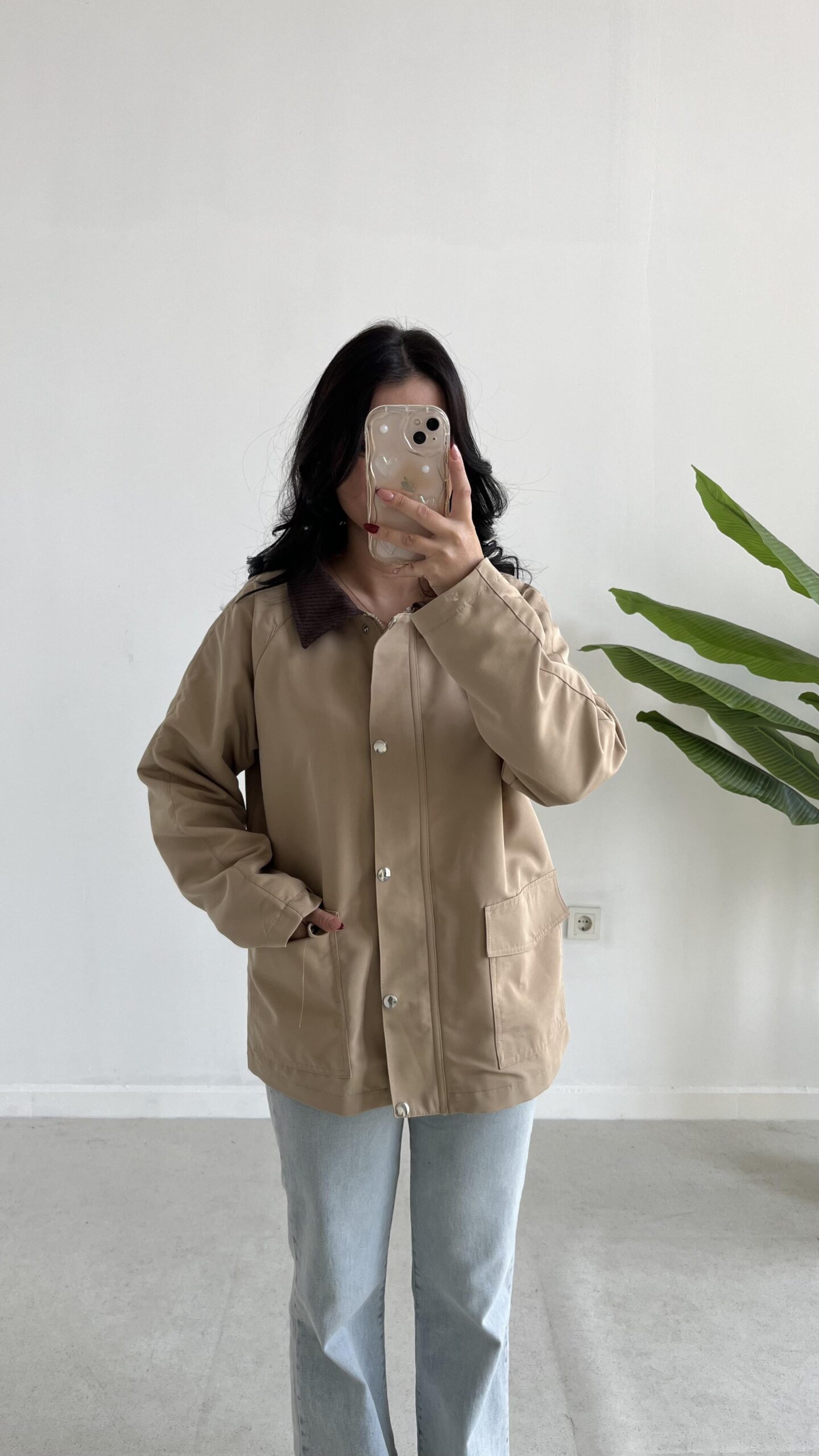 Ortis Kadife Yaka Detaylı Oversize Ceket – Sütlü Kahve