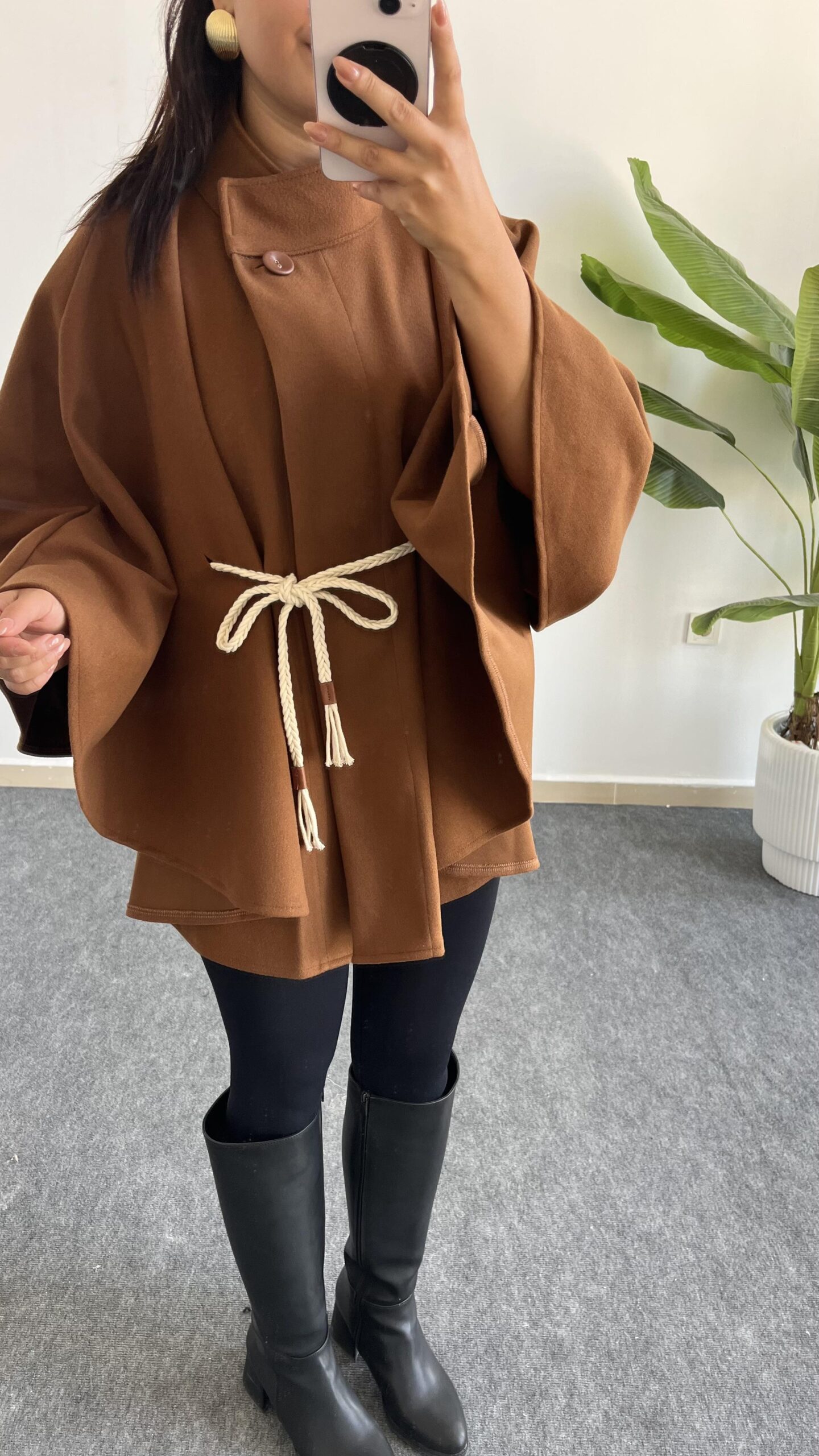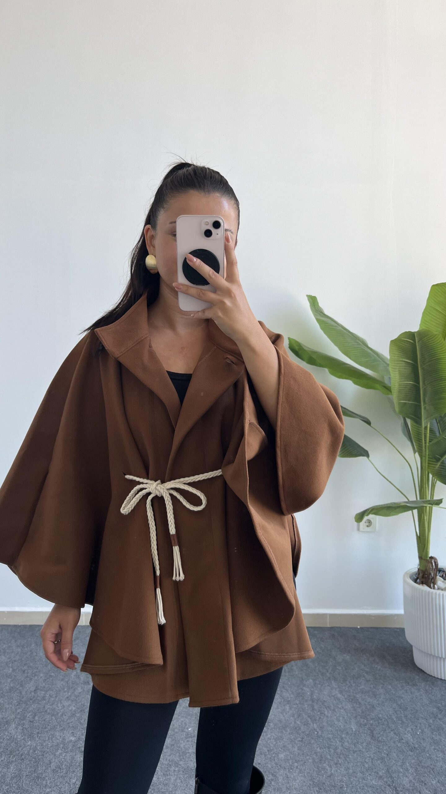 Sandela Kemer Kuşaklı Kaşe Pelerin – Kahve