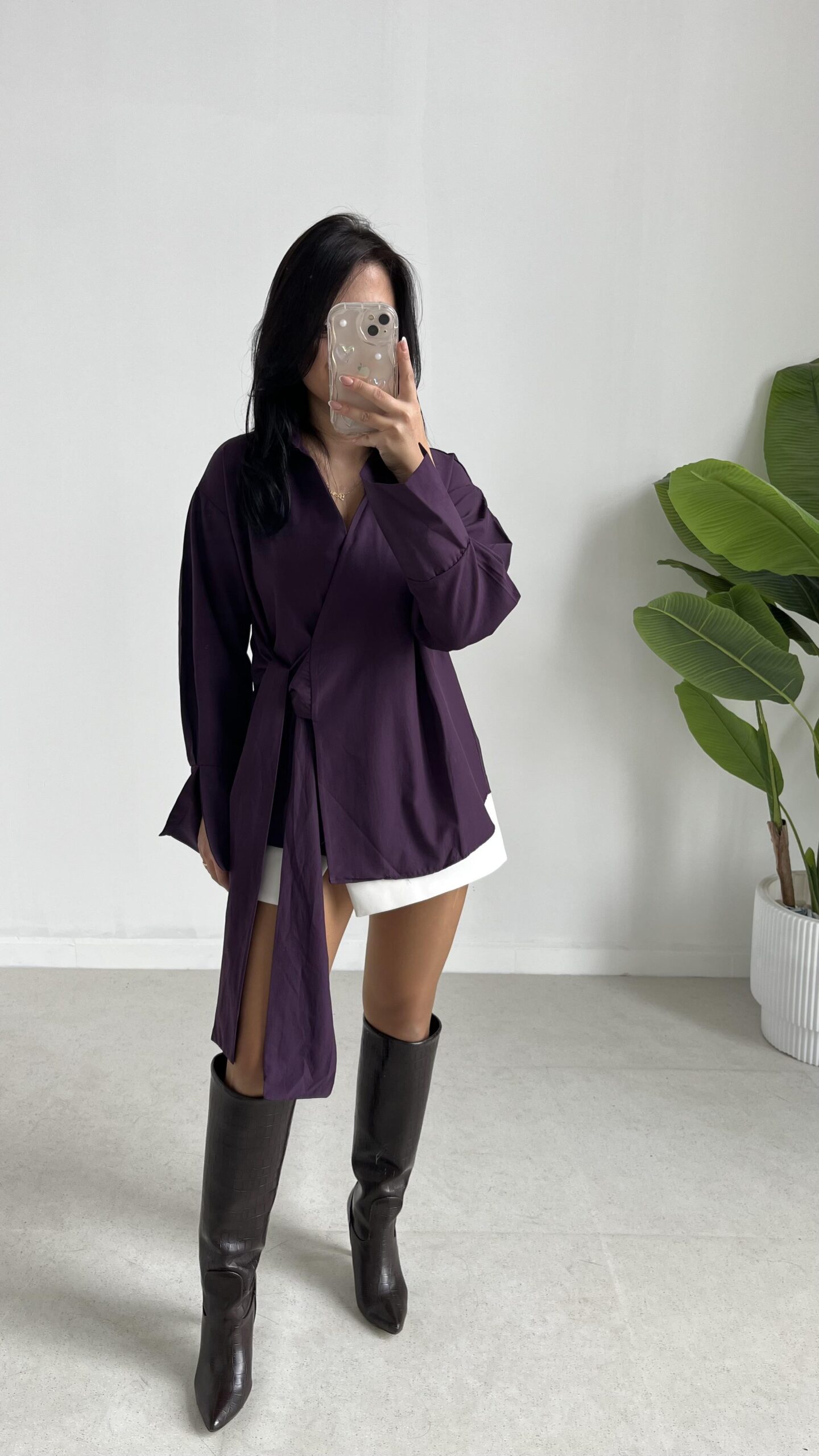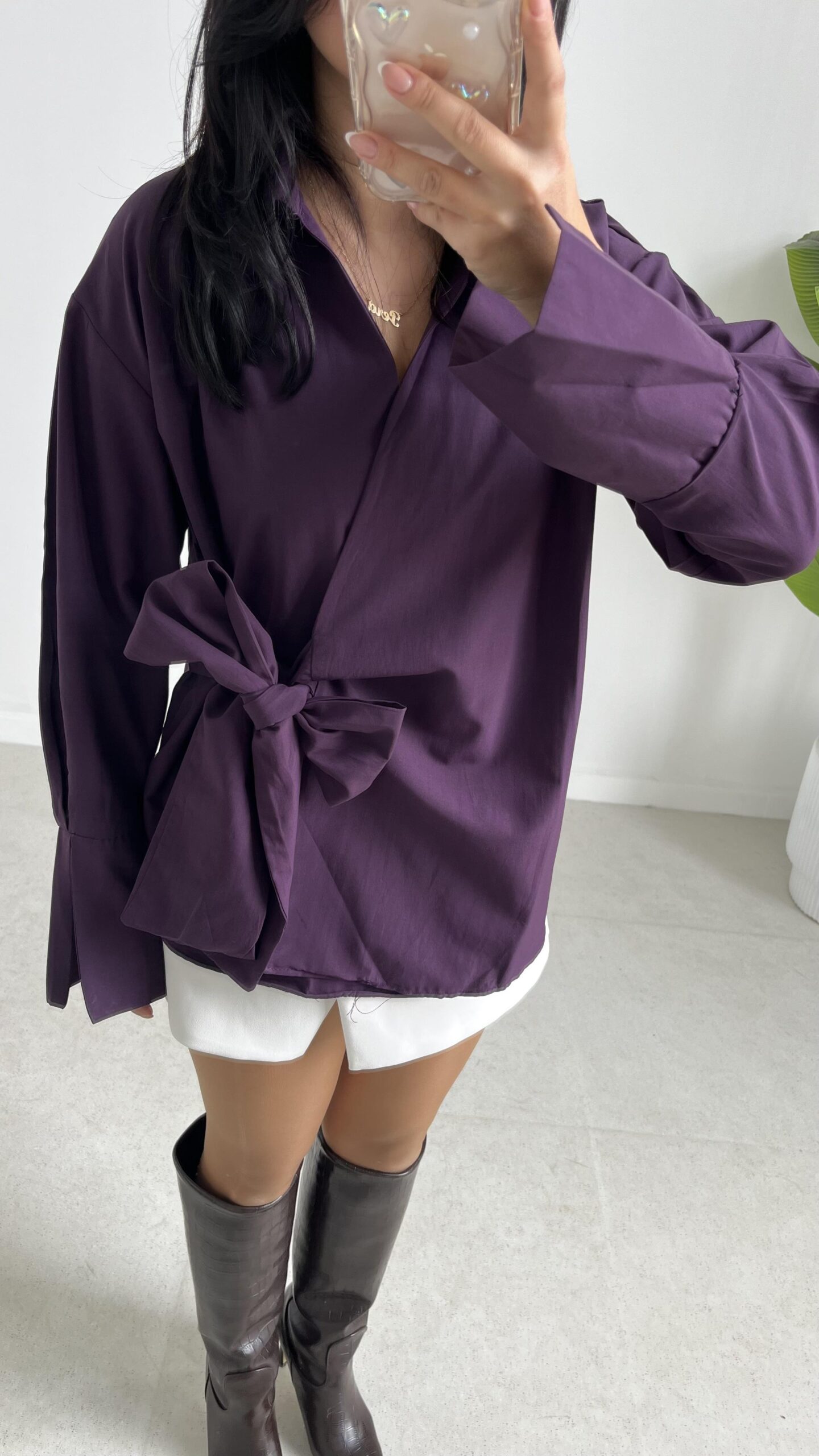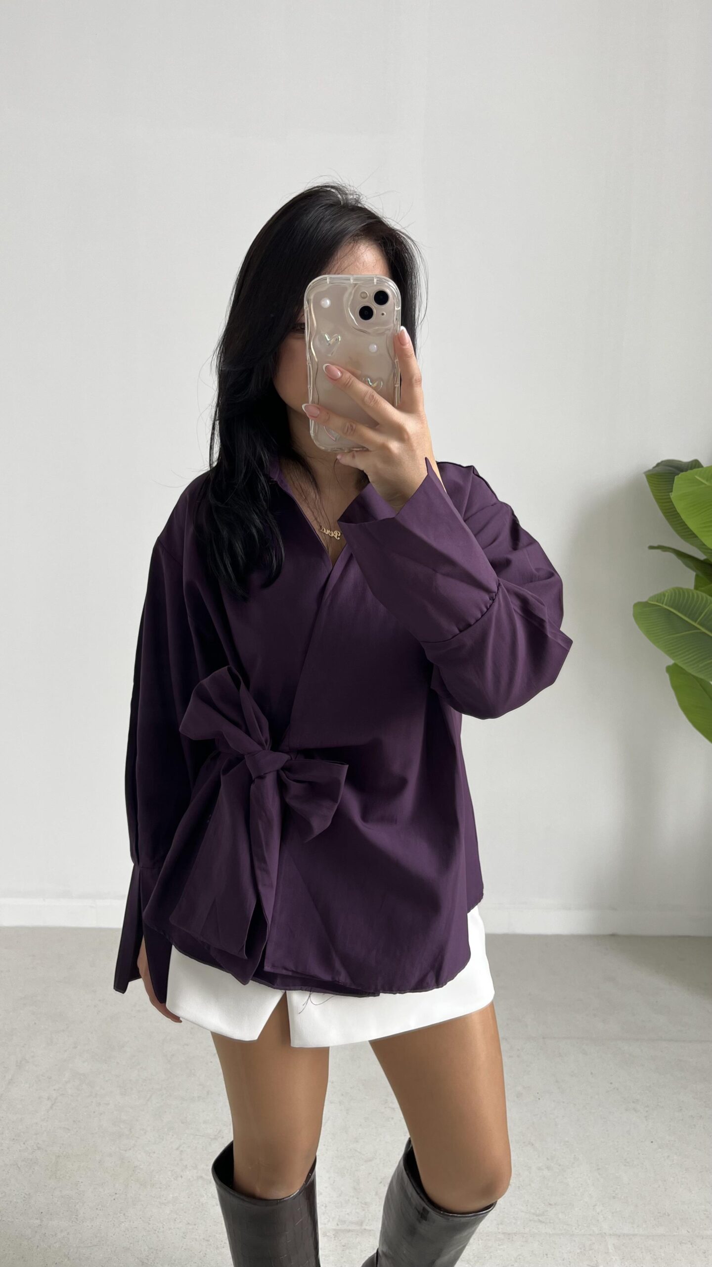Velera Bağlamalı Gömlek – Mor
