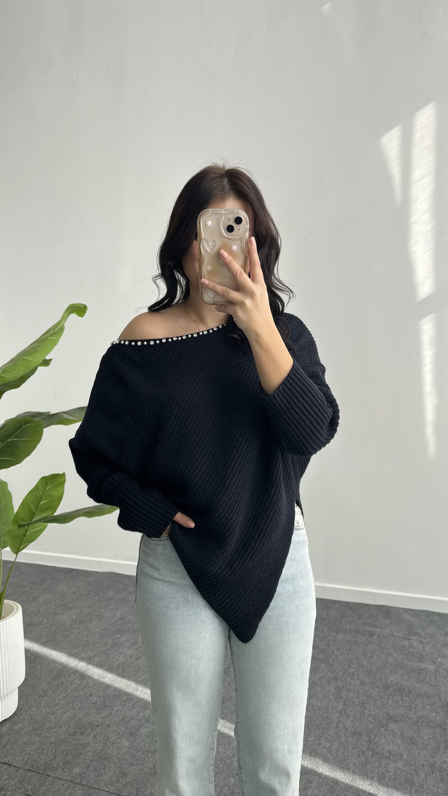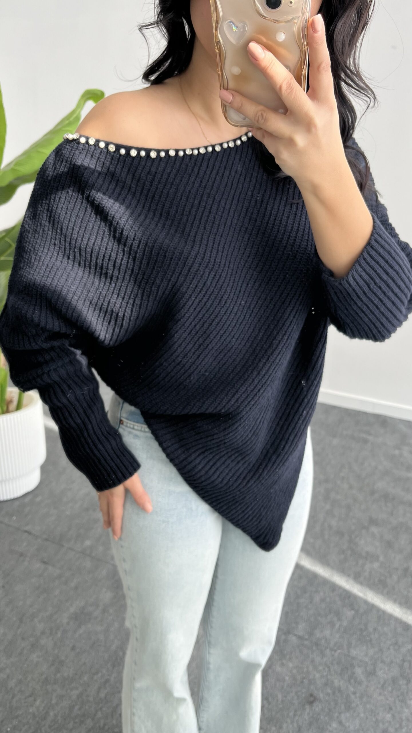 “Lisa Yakası Taşlı Asimetrik Triko Bluz – Lacivert” için yorum yapan ilk kişi siz olun