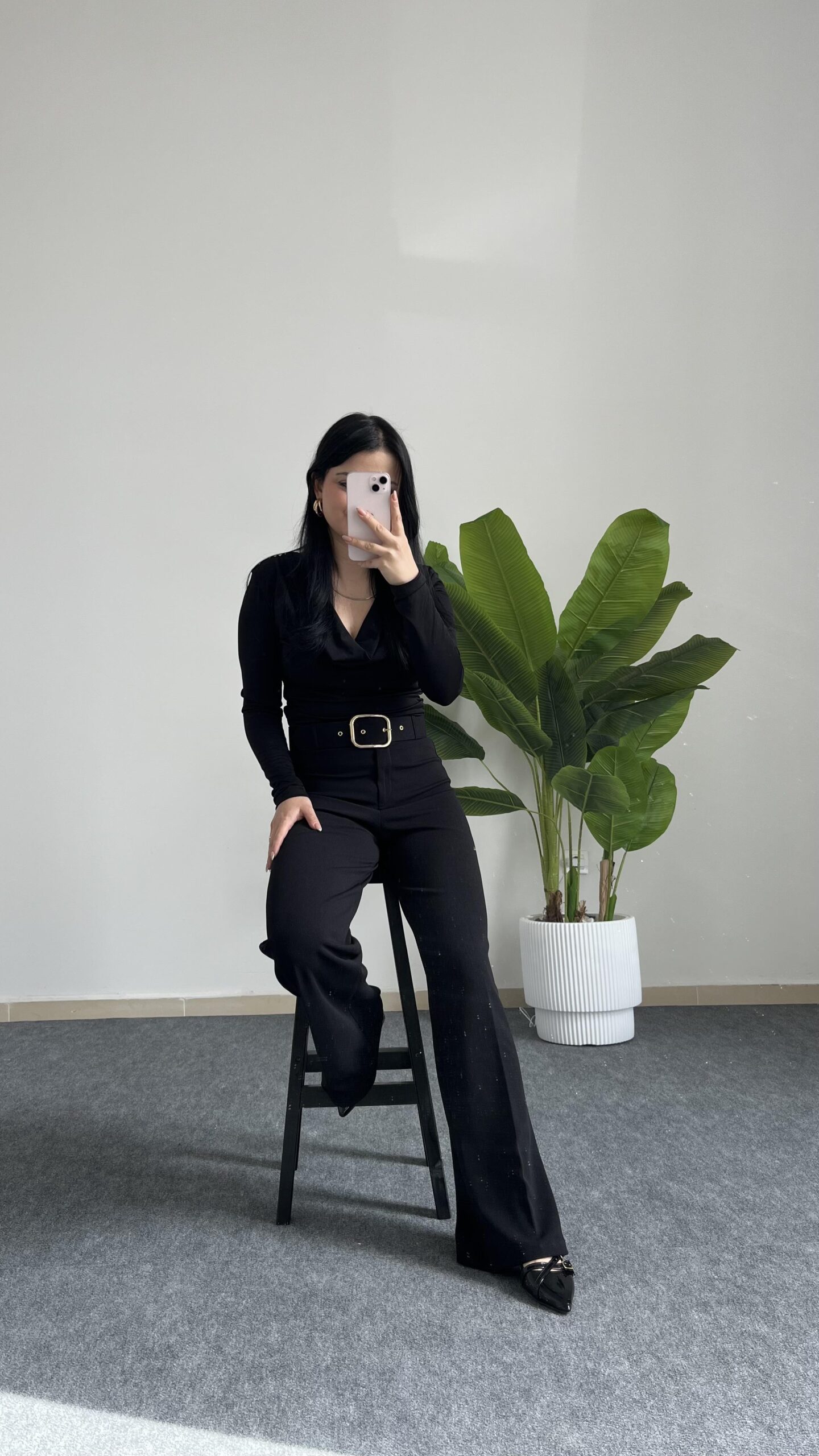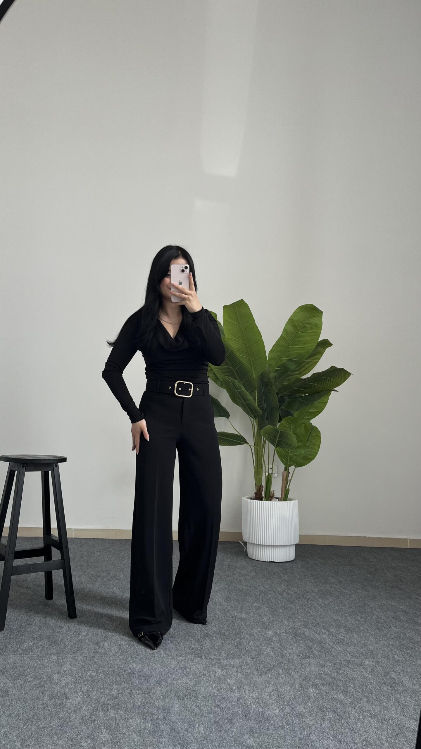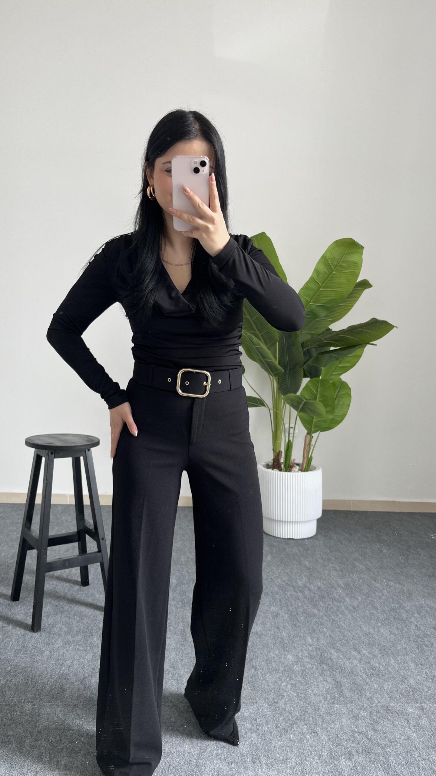 Caroline Kemerli Crep Pantolon – Siyah