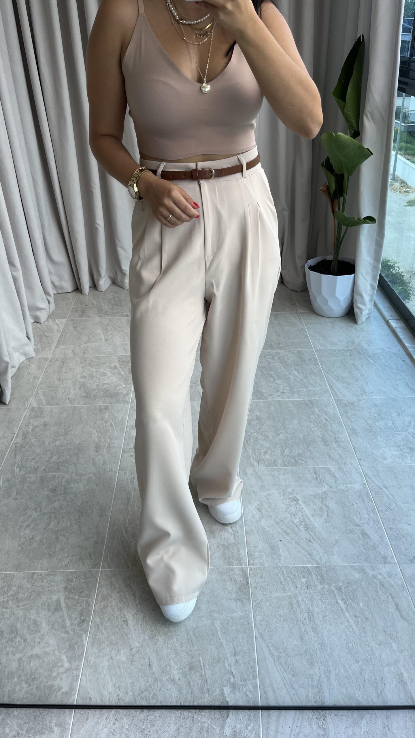 Melina Cırtlı Palazzo Pantolon – Taş