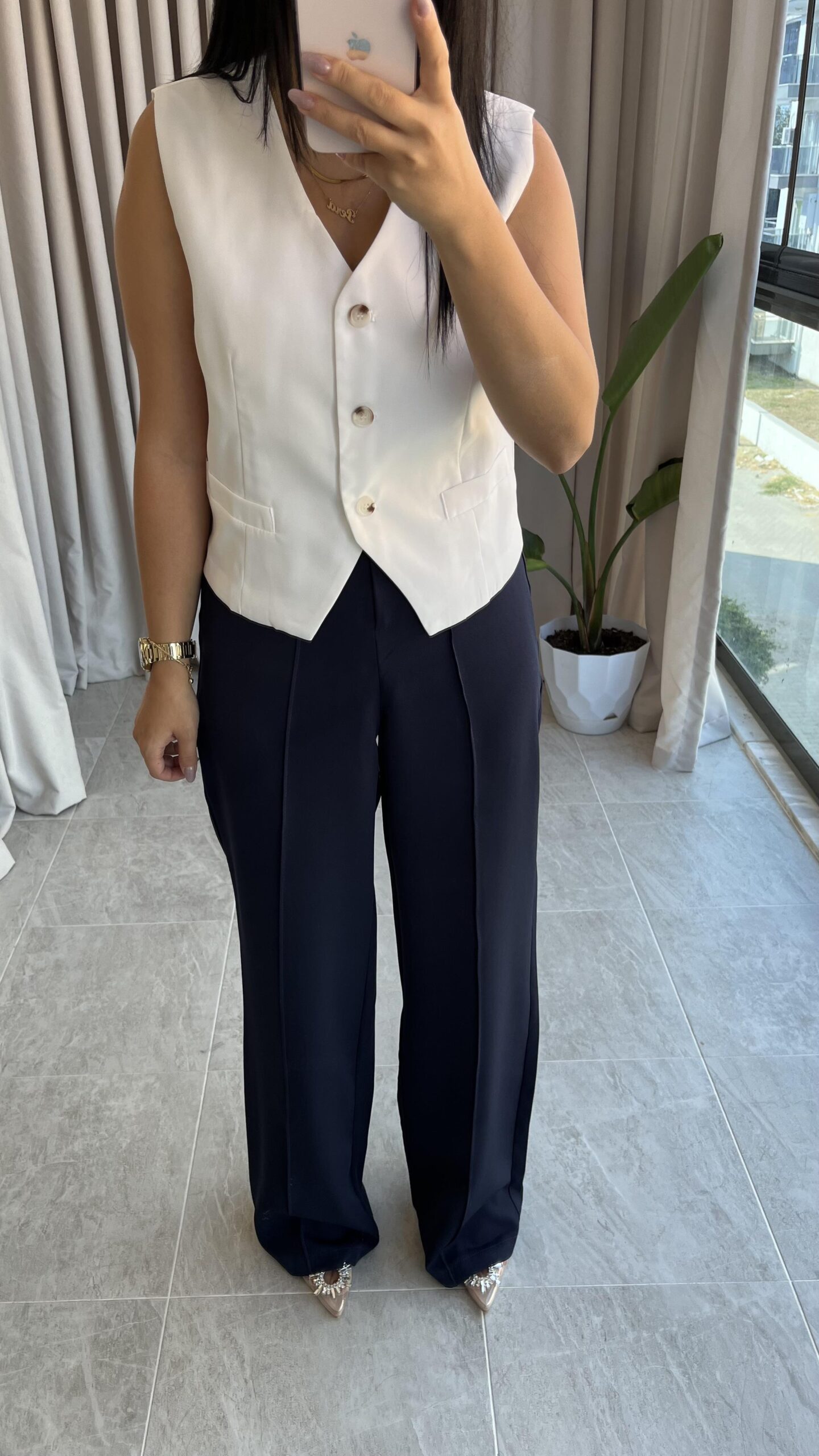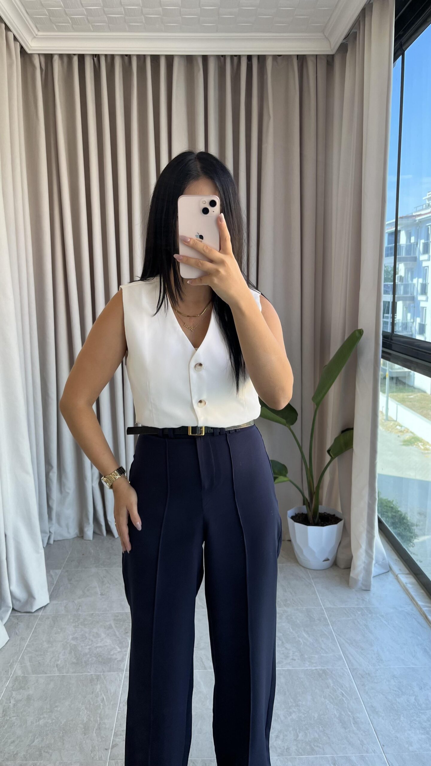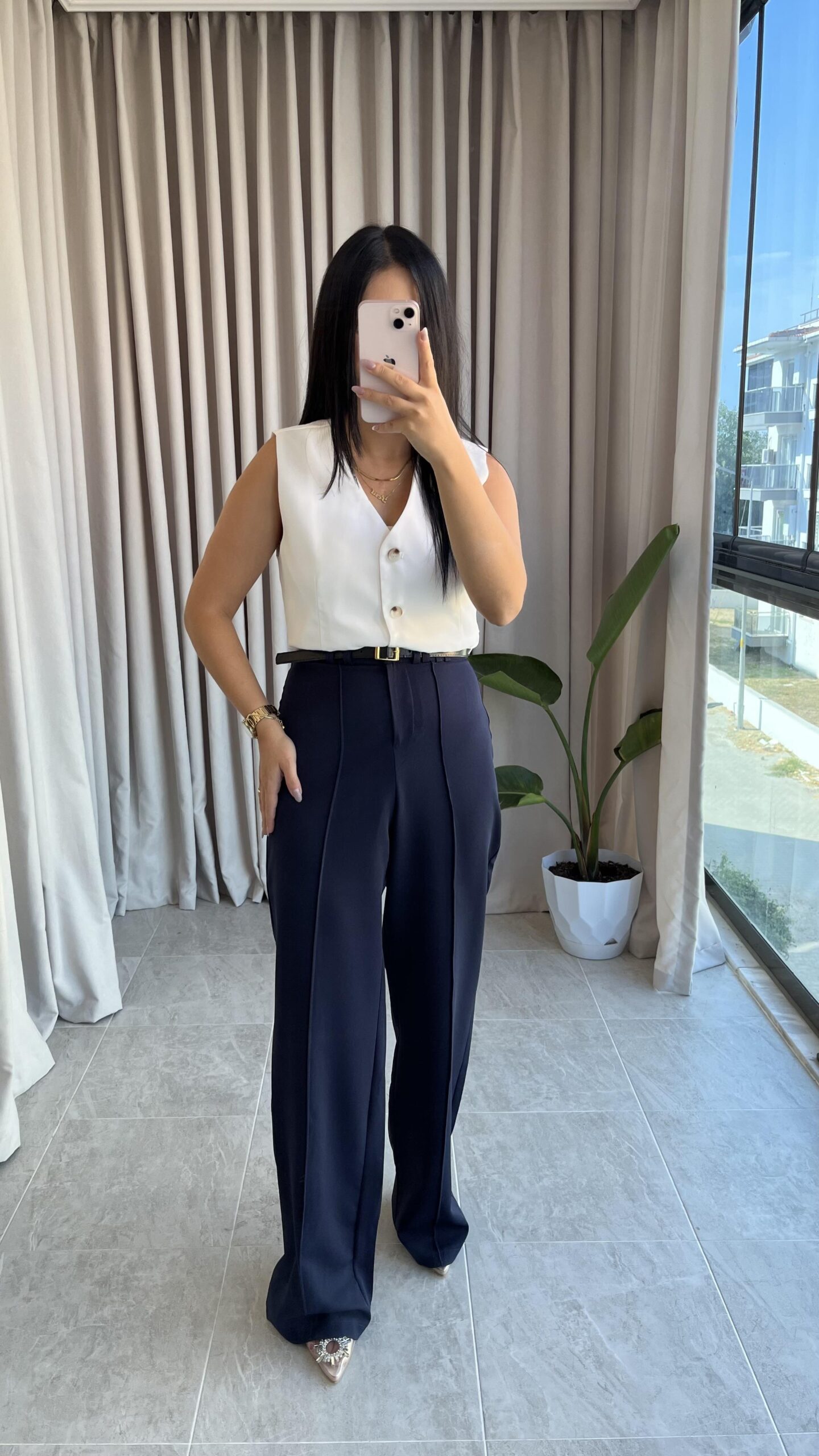 Lacivert Kemerli Çimalı Palazzo Pantolon