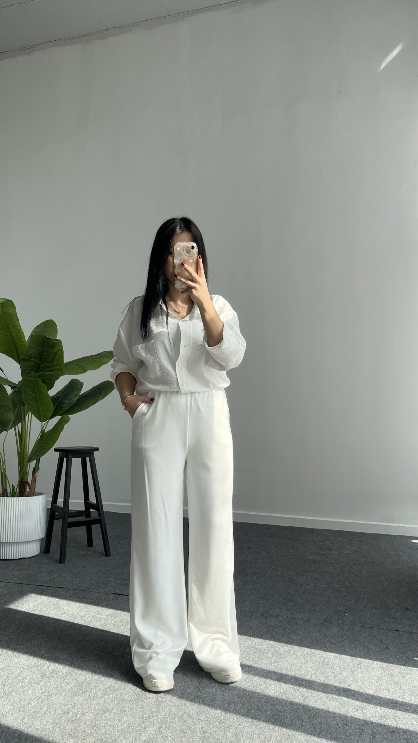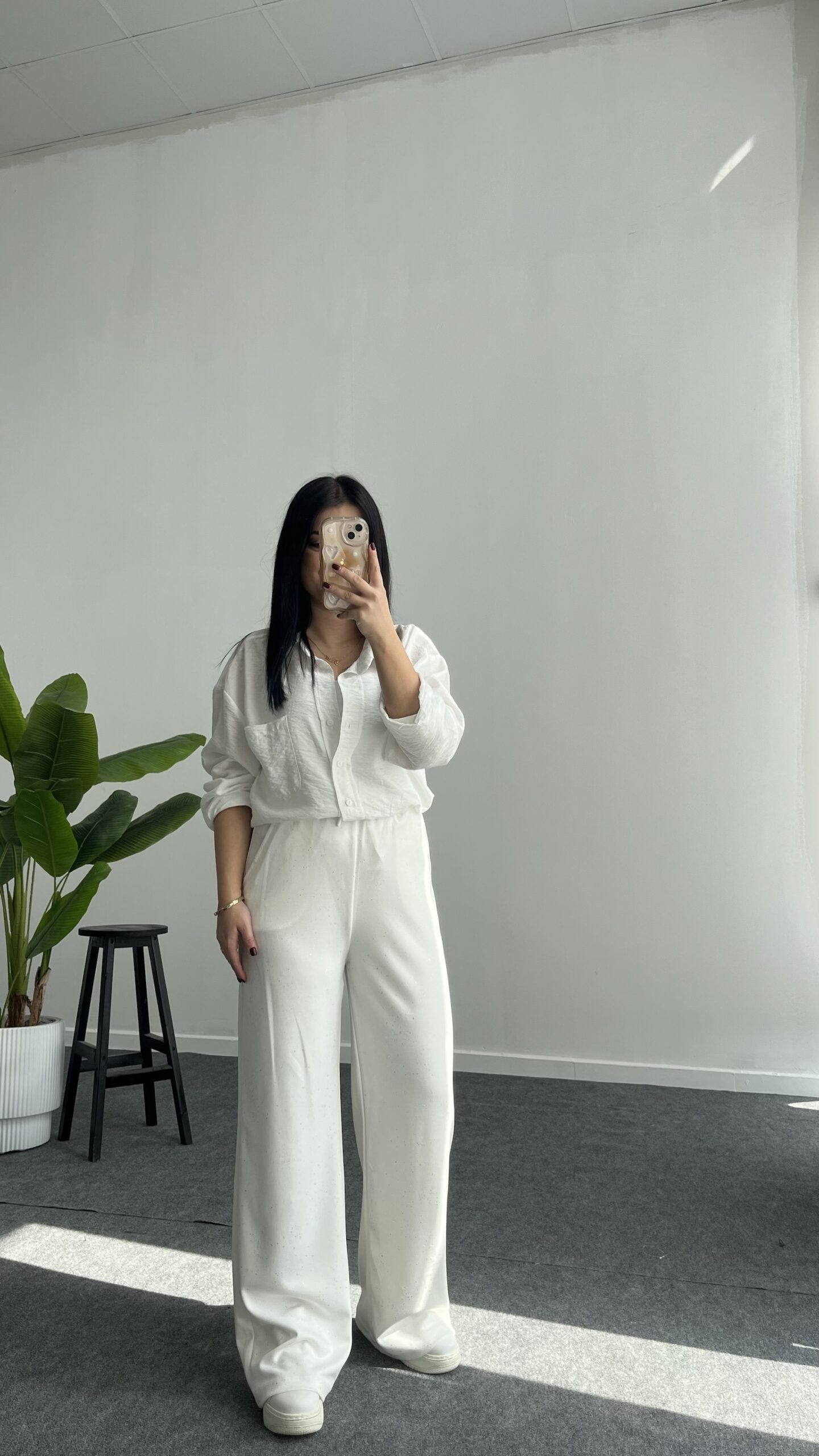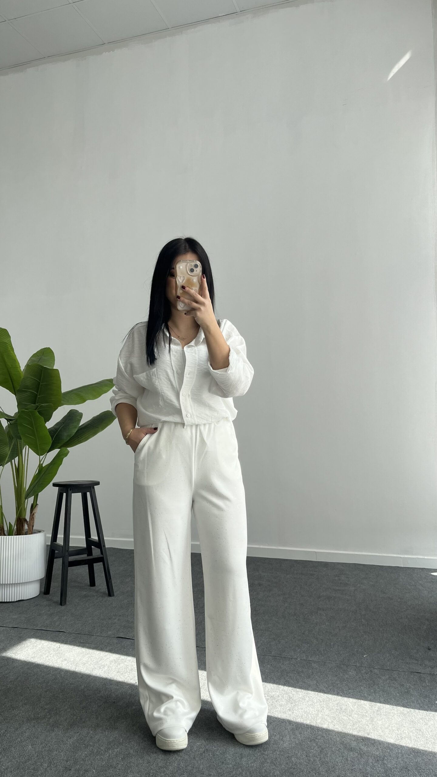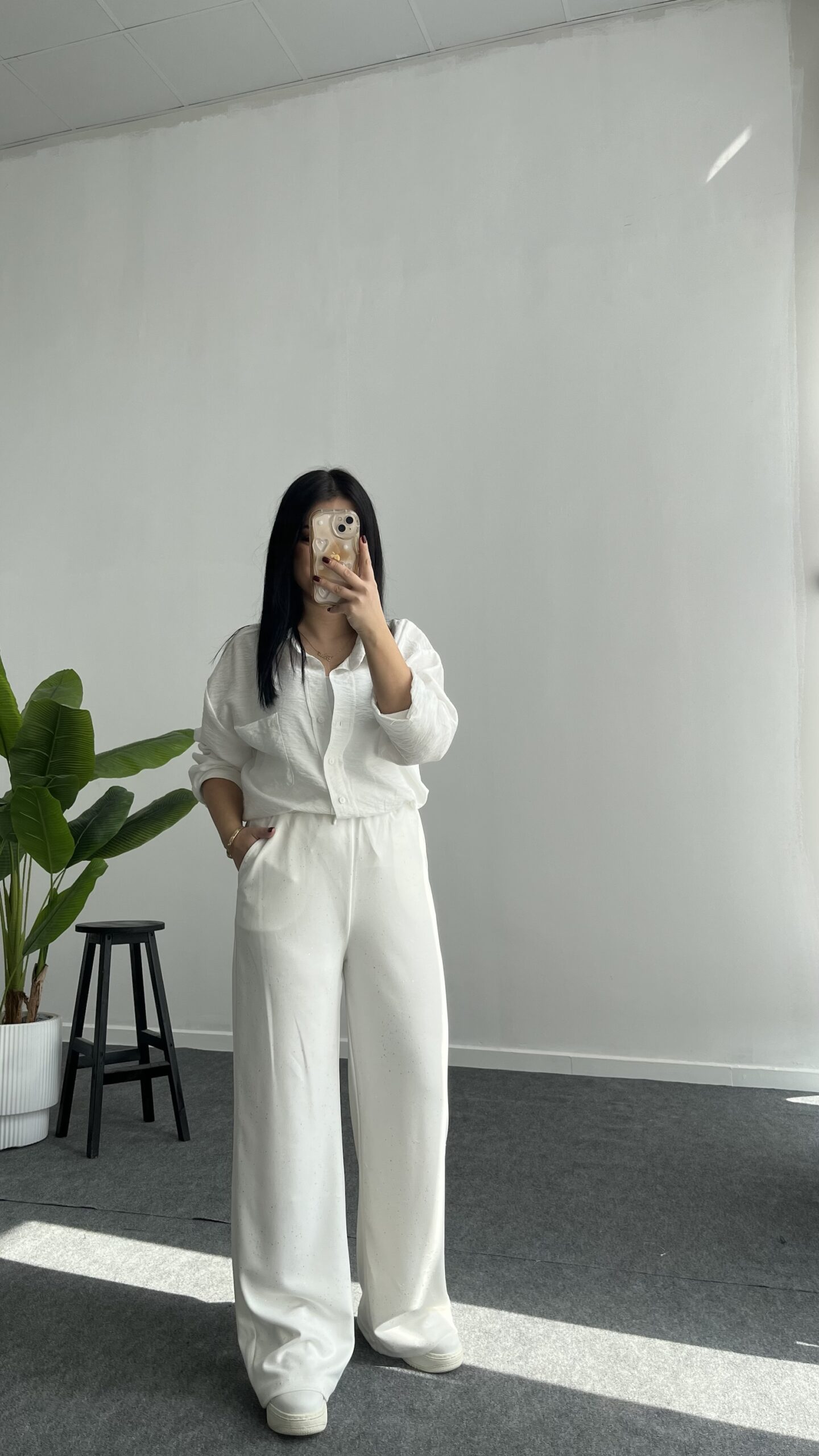 Pina Önü Simli Modal Pantolon – Beyaz