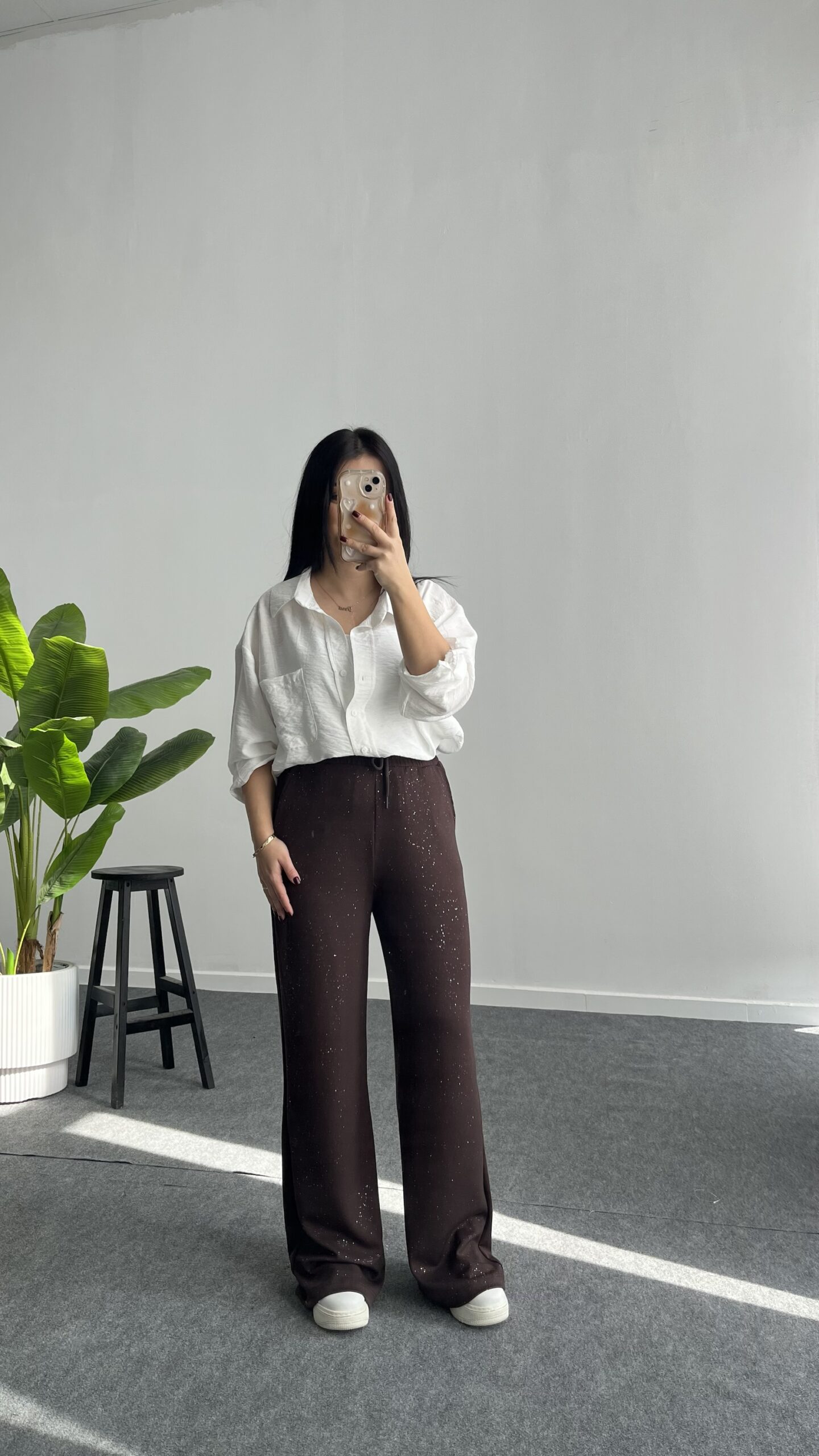 Pina Önü Simli Modal Pantolon – Kahve