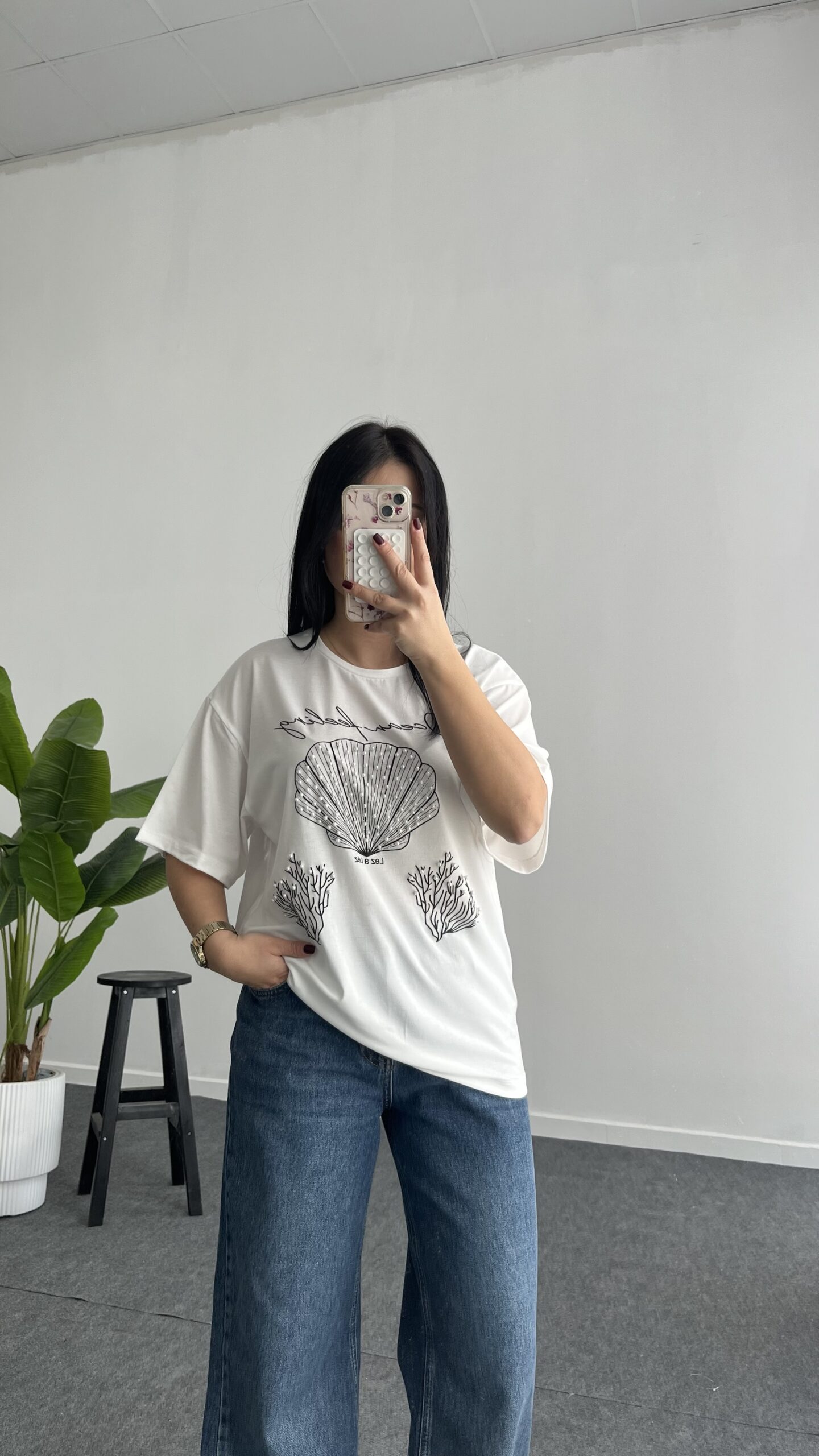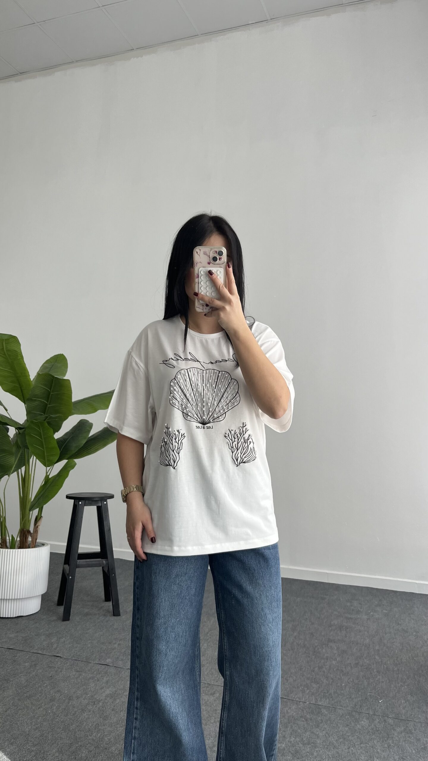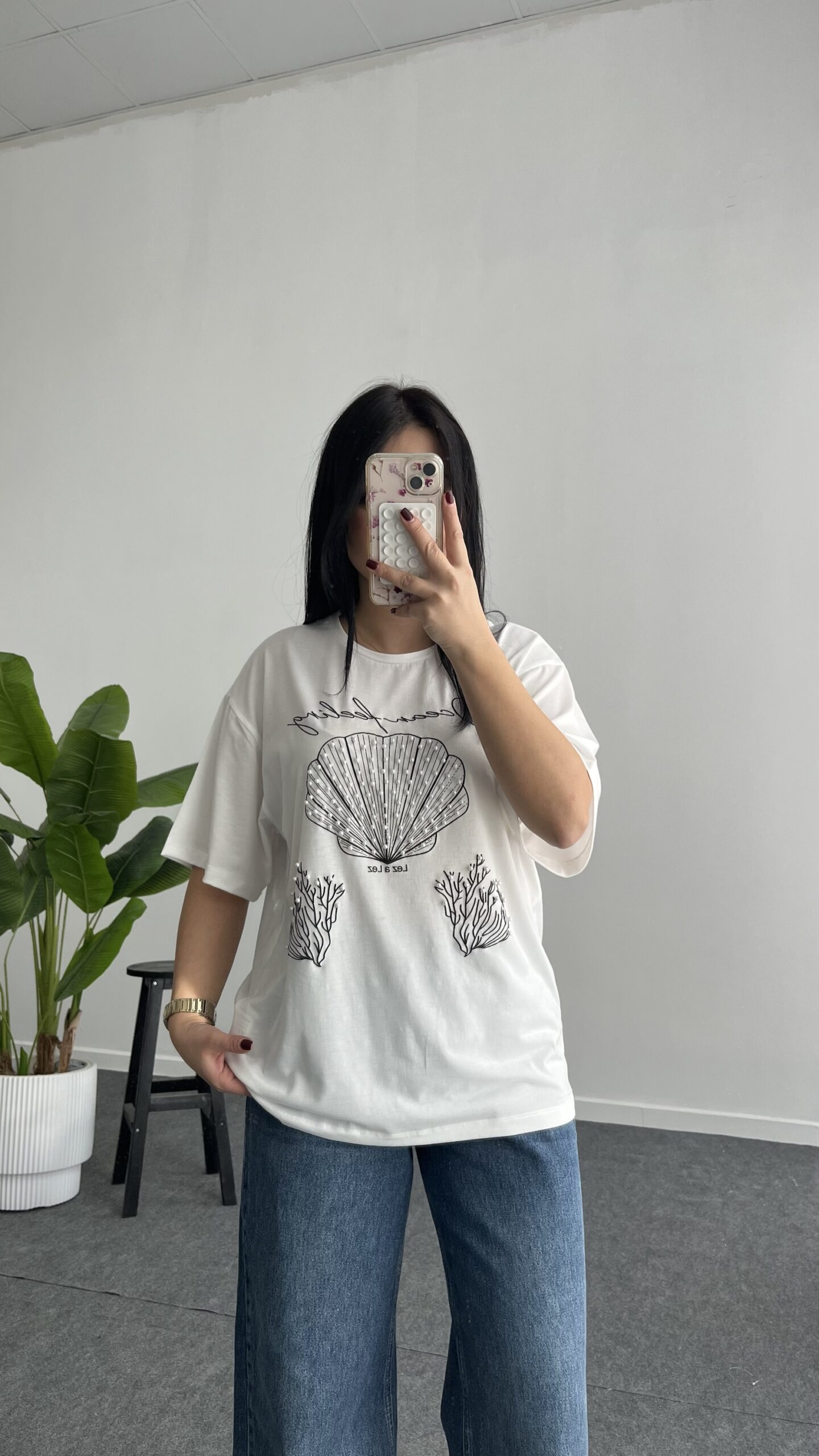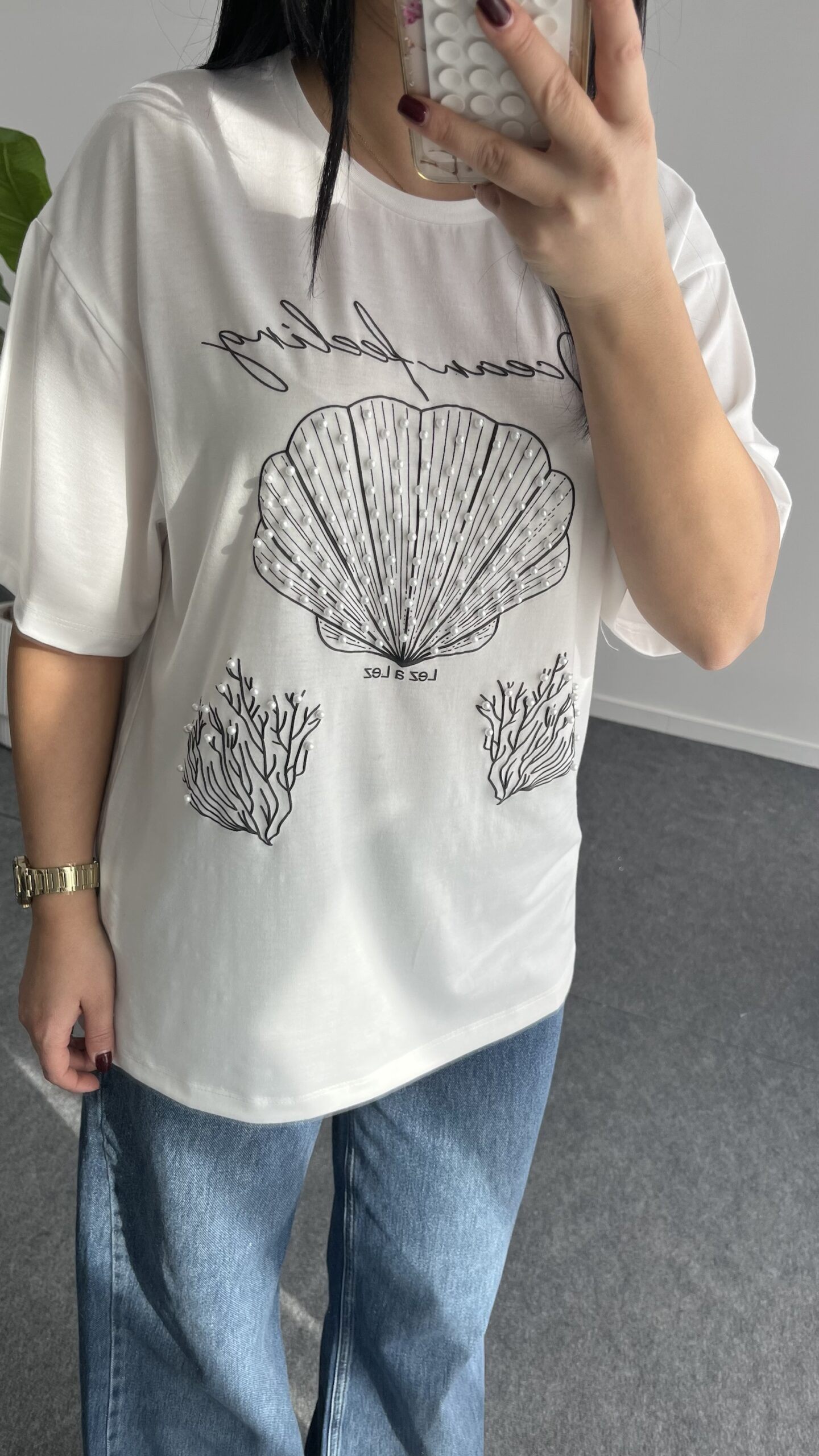 İnci Detaylı Tişört – Siyah