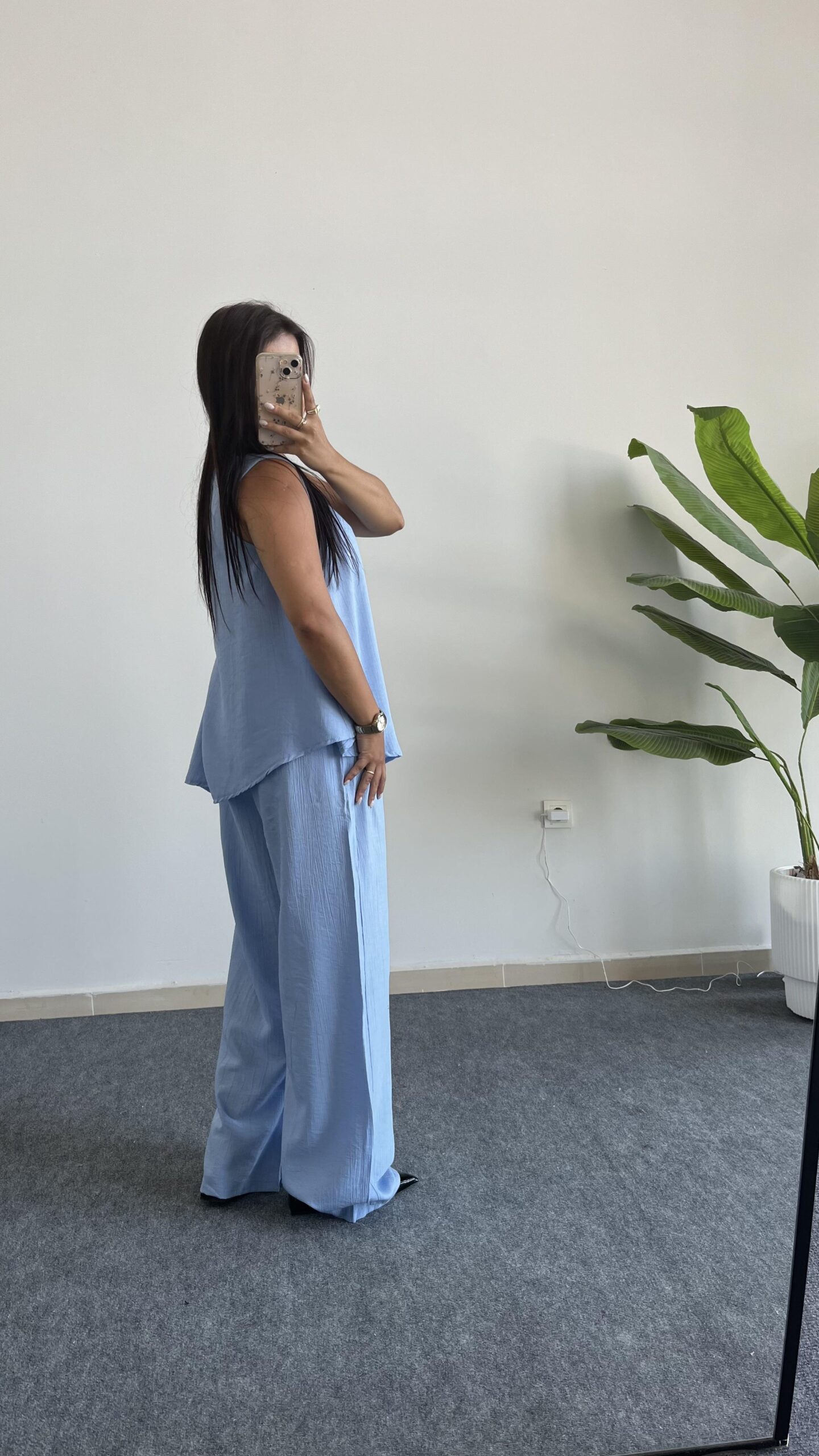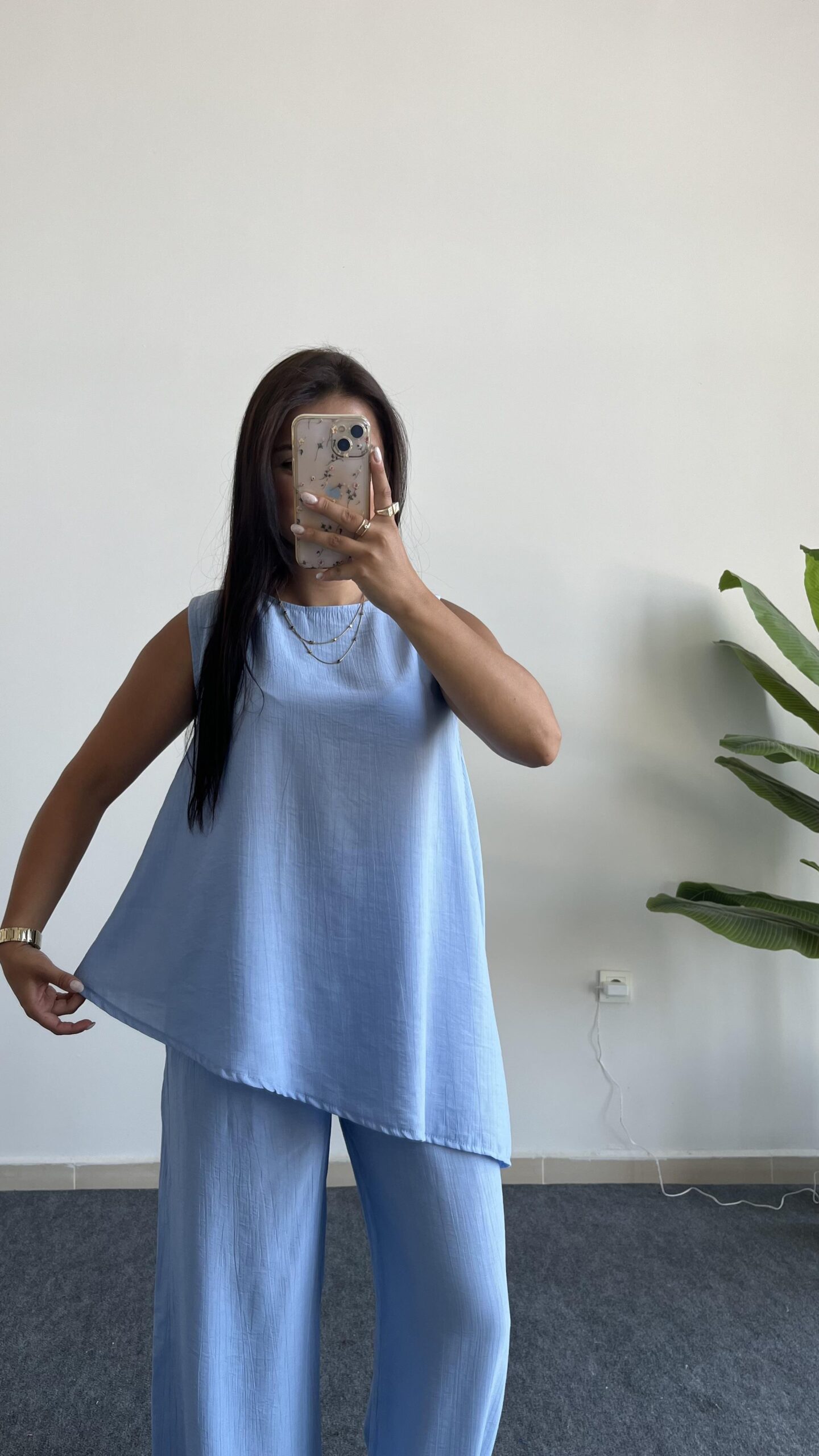Asimetrik Kesim Bluz Pantolon Takım – Bebe Mavi