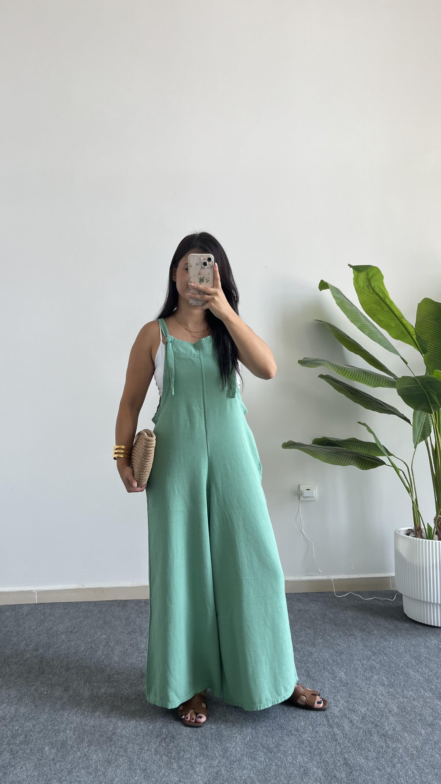 Mint Yeşili Keten Tulum