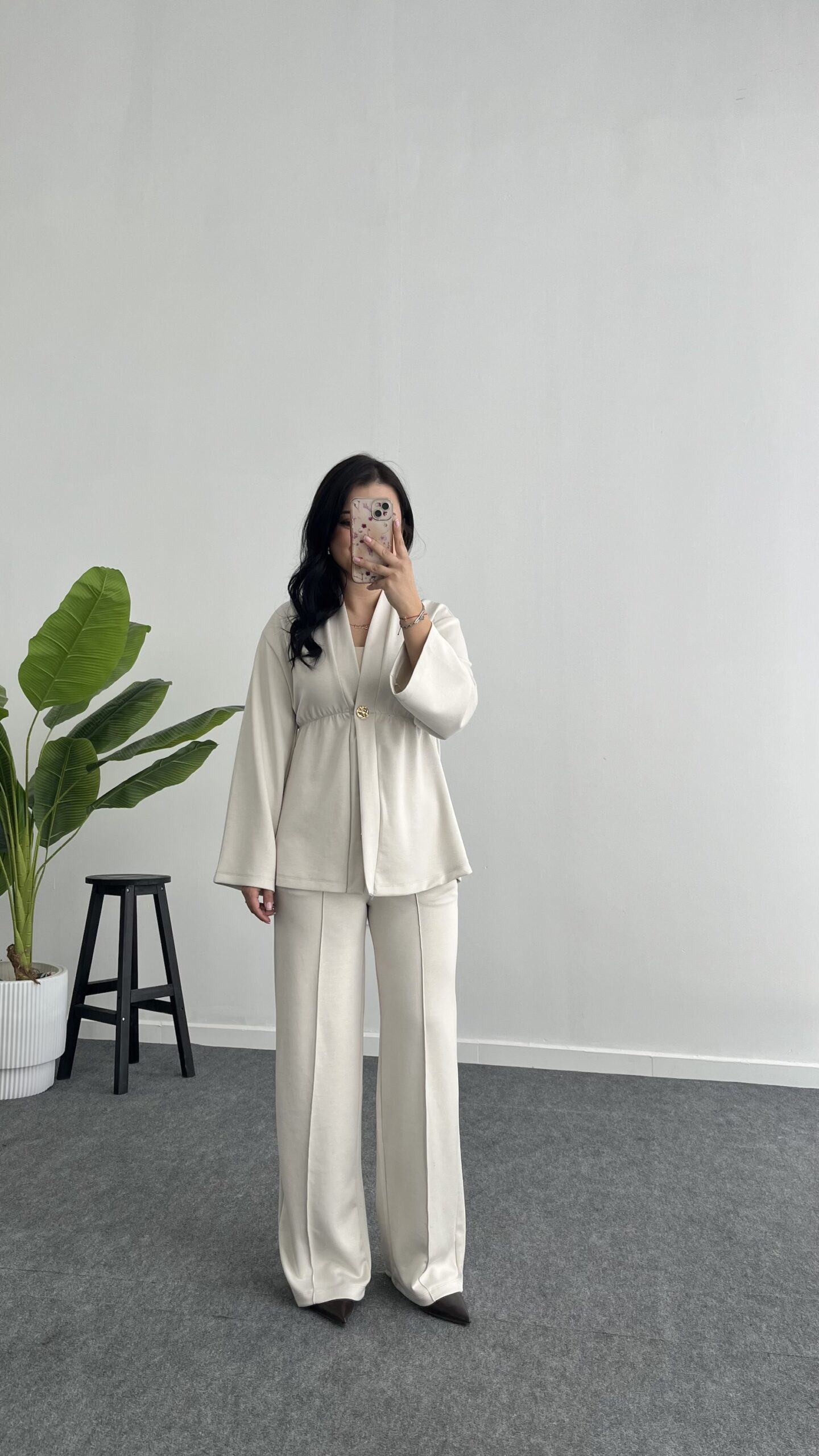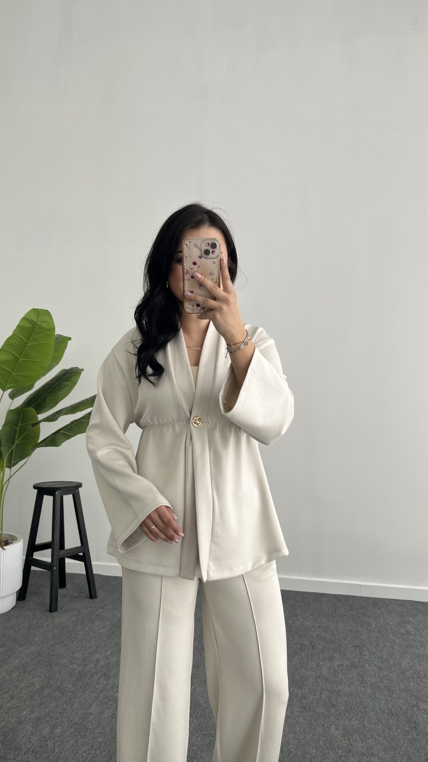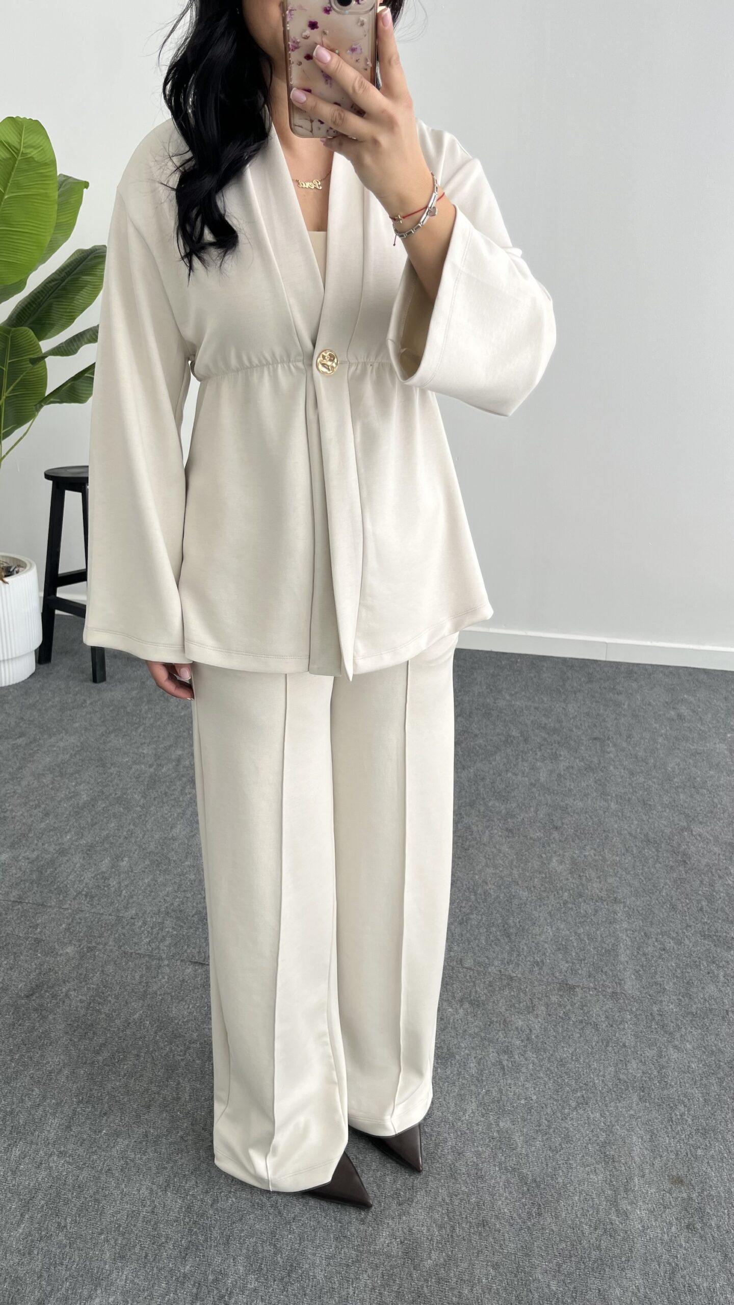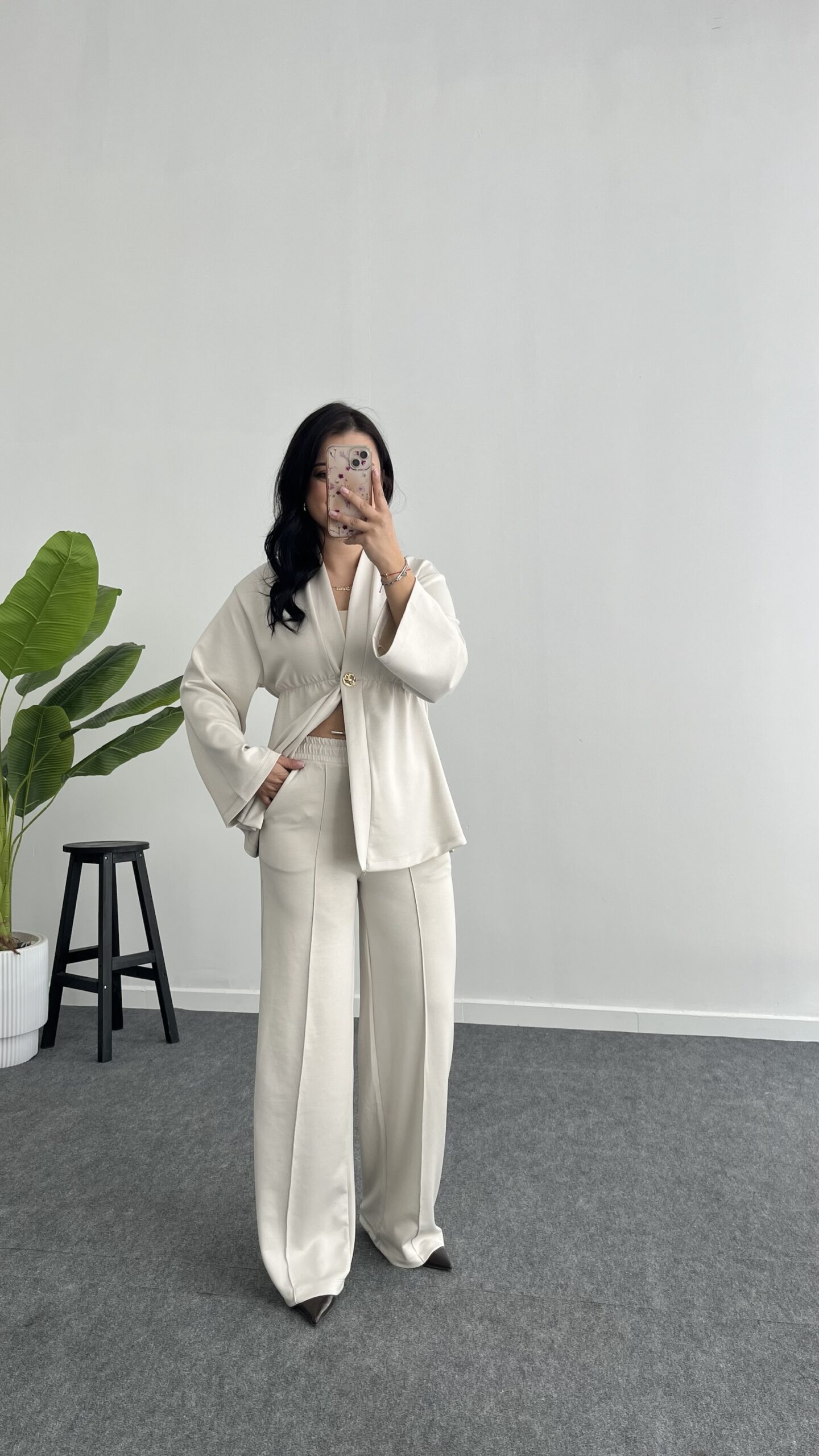 Mora Aksesuarlı Modal Kimono Takım – Bej